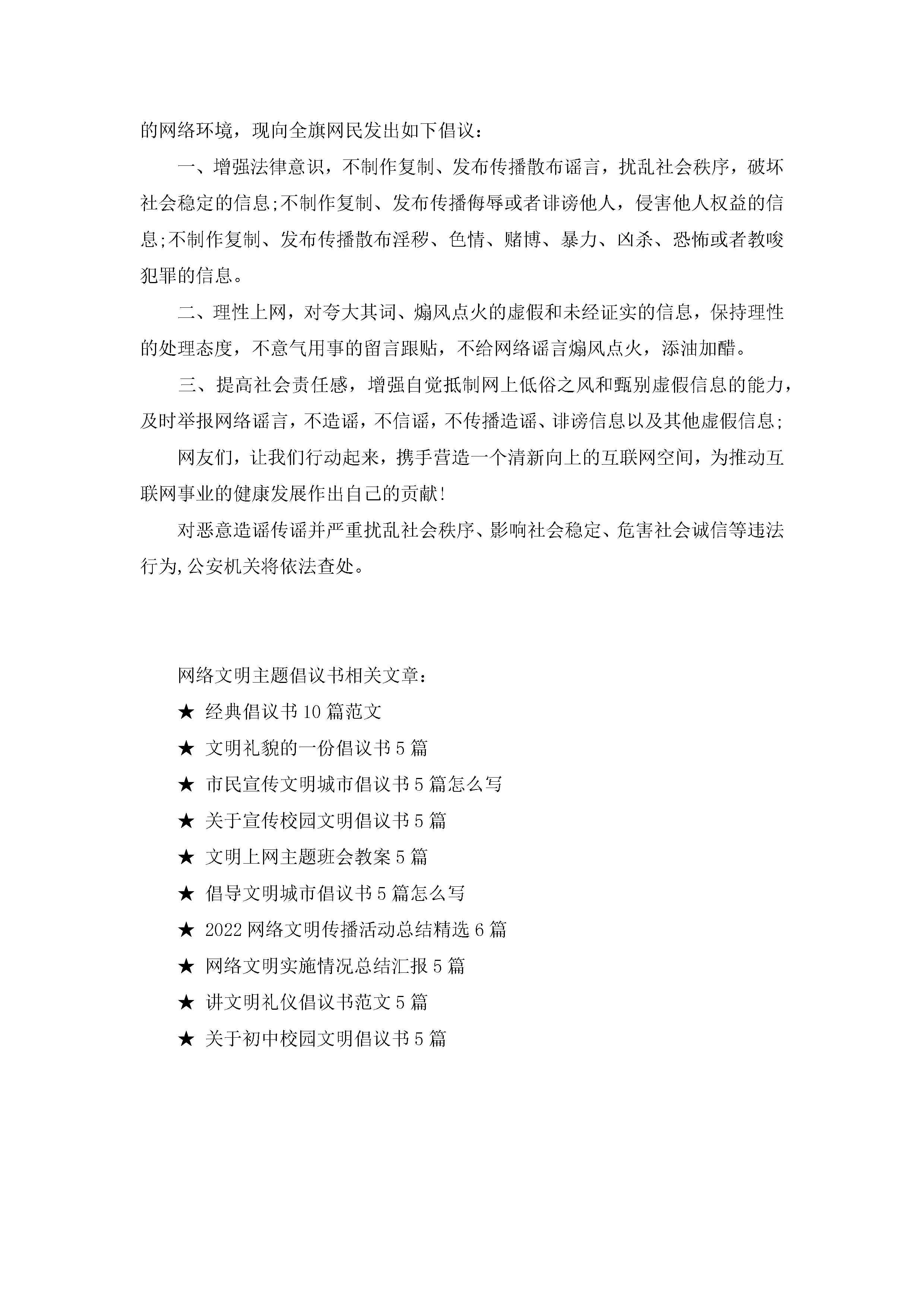 网络文明主题倡议书5篇jugei3月22日 16:28发布关注193 网络文明主题倡议书5篇此内容为付费资源,请付费后查看¥10.9 单篇文档限时特惠¥15个人会员开通企业会员开通立即下载无需登陆!可直接快捷下载单个模板付费资源© 版权声明THE ENDWord模板# 实用文档# 实用模板# 信函模板# 倡议书 如有问题,可点击最底部“联系我们”联系客服 分享QQ空间微博QQ好友海报分享复制链接收藏