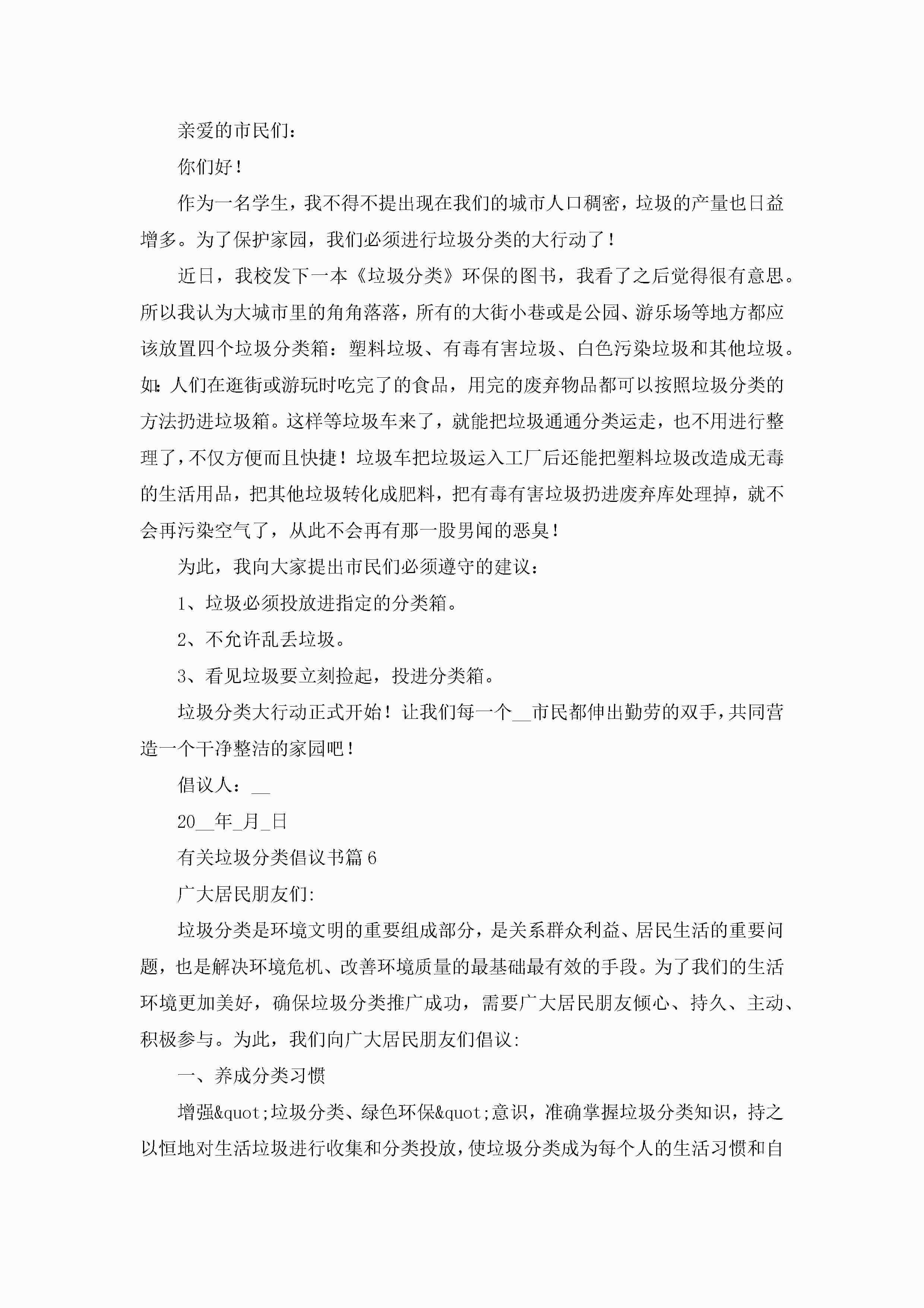 有关垃圾分类倡议书(精选10篇)jugei3月22日 16:28发布关注270 有关垃圾分类倡议书(精选10篇)此内容为付费资源,请付费后查看¥10.9 单篇文档限时特惠¥15个人会员开通企业会员开通立即下载无需登陆!可直接快捷下载单个模板付费资源© 版权声明THE ENDWord模板# 实用文档# 实用模板# 信函模板# 倡议书 如有问题,可点击最底部“联系我们”联系客服 分享QQ空间微博QQ好友海报分享复制链接收藏