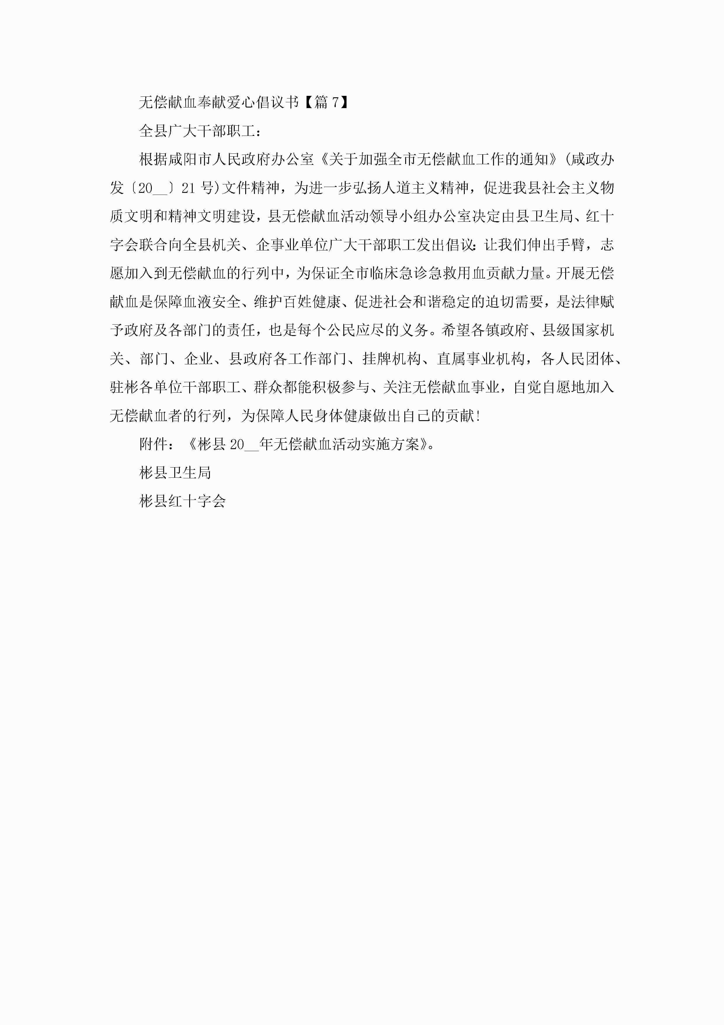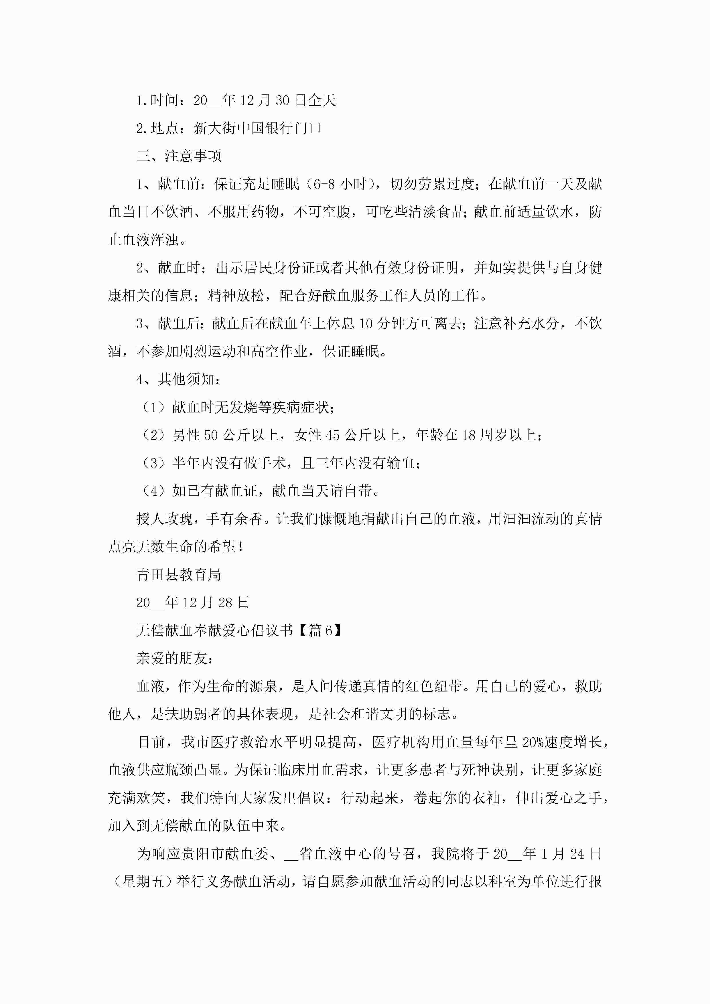2023无偿献血奉献爱心倡议书(精选7篇)jugei3月22日 16:28发布关注197 2023无偿献血奉献爱心倡议书(精选7篇)此内容为付费资源,请付费后查看¥10.9 单篇文档限时特惠¥15个人会员开通企业会员开通立即下载无需登陆!可直接快捷下载单个模板付费资源© 版权声明THE ENDWord模板# 实用文档# 实用模板# 信函模板# 倡议书 如有问题,可点击最底部“联系我们”联系客服 分享QQ空间微博QQ好友海报分享复制链接收藏