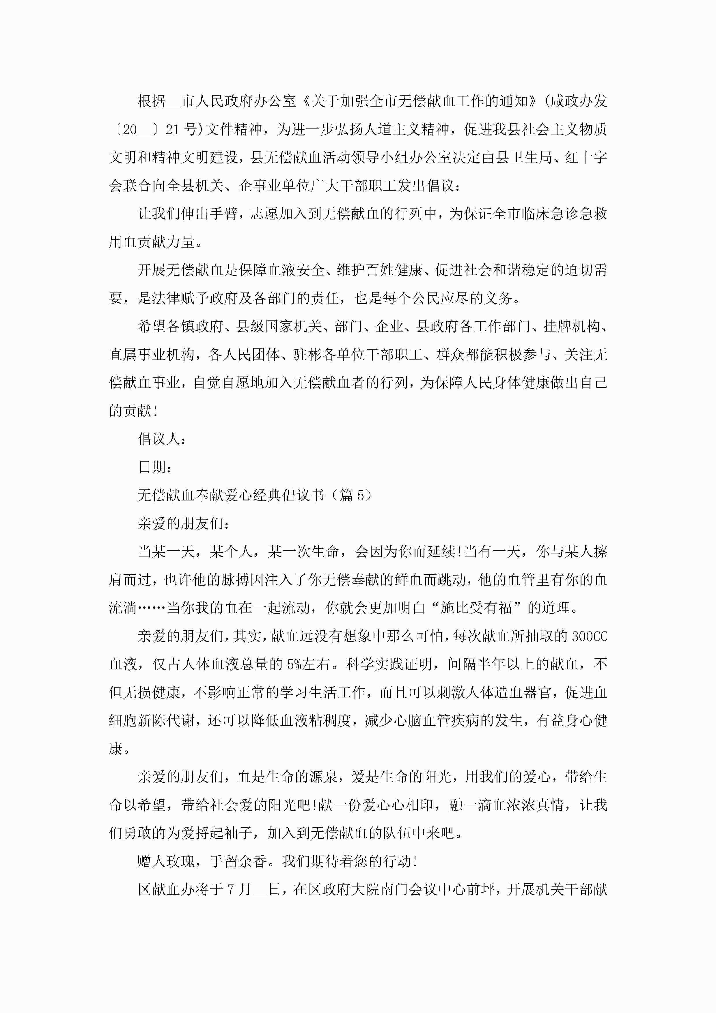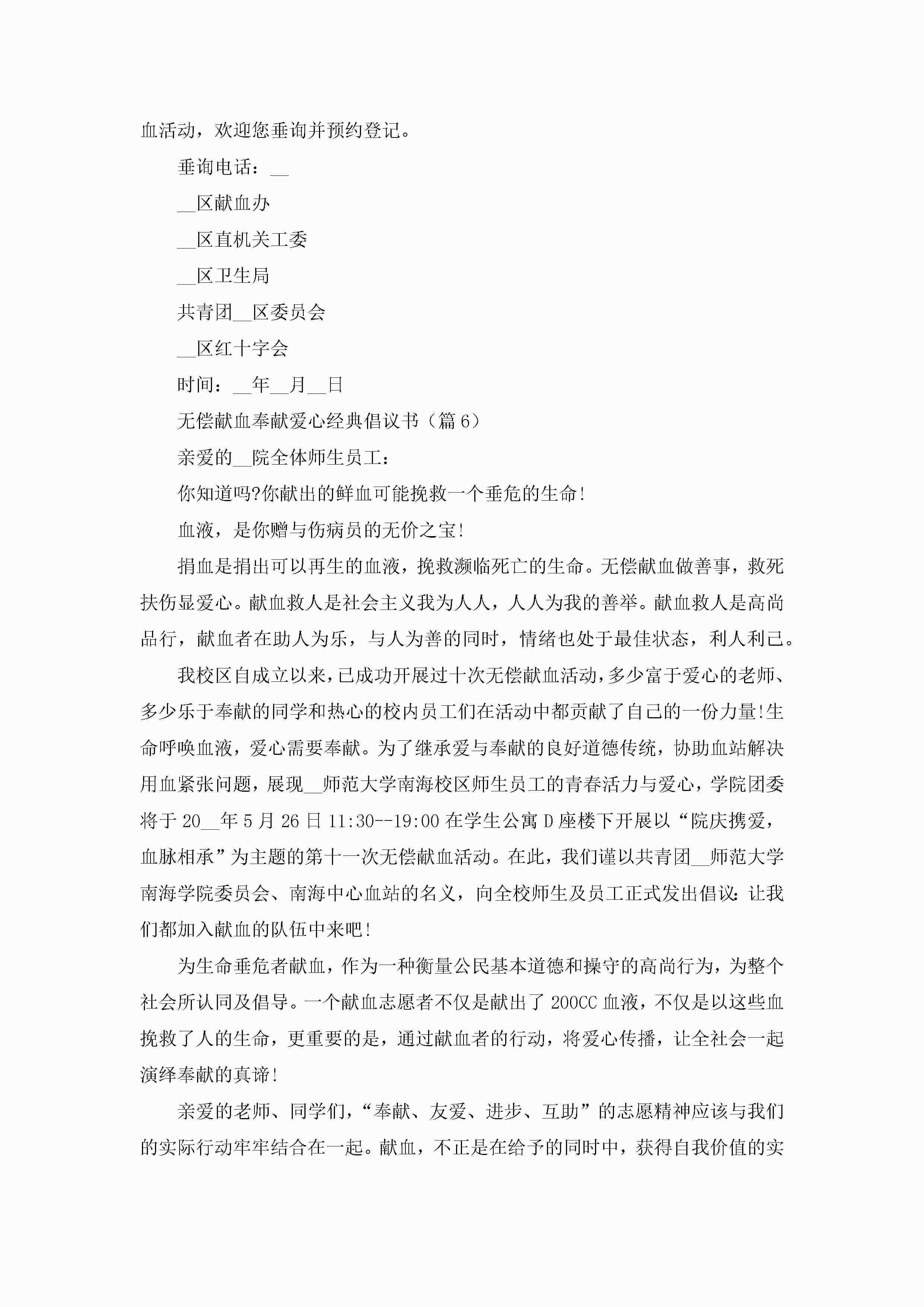 2023年无偿献血奉献爱心经典倡议书(7篇)jugei3月22日 16:28发布关注189 2023年无偿献血奉献爱心经典倡议书(7篇)此内容为付费资源,请付费后查看¥10.9 单篇文档限时特惠¥15个人会员开通企业会员开通立即下载无需登陆!可直接快捷下载单个模板付费资源© 版权声明THE ENDWord模板# 实用文档# 实用模板# 信函模板# 倡议书 如有问题,可点击最底部“联系我们”联系客服 分享QQ空间微博QQ好友海报分享复制链接收藏