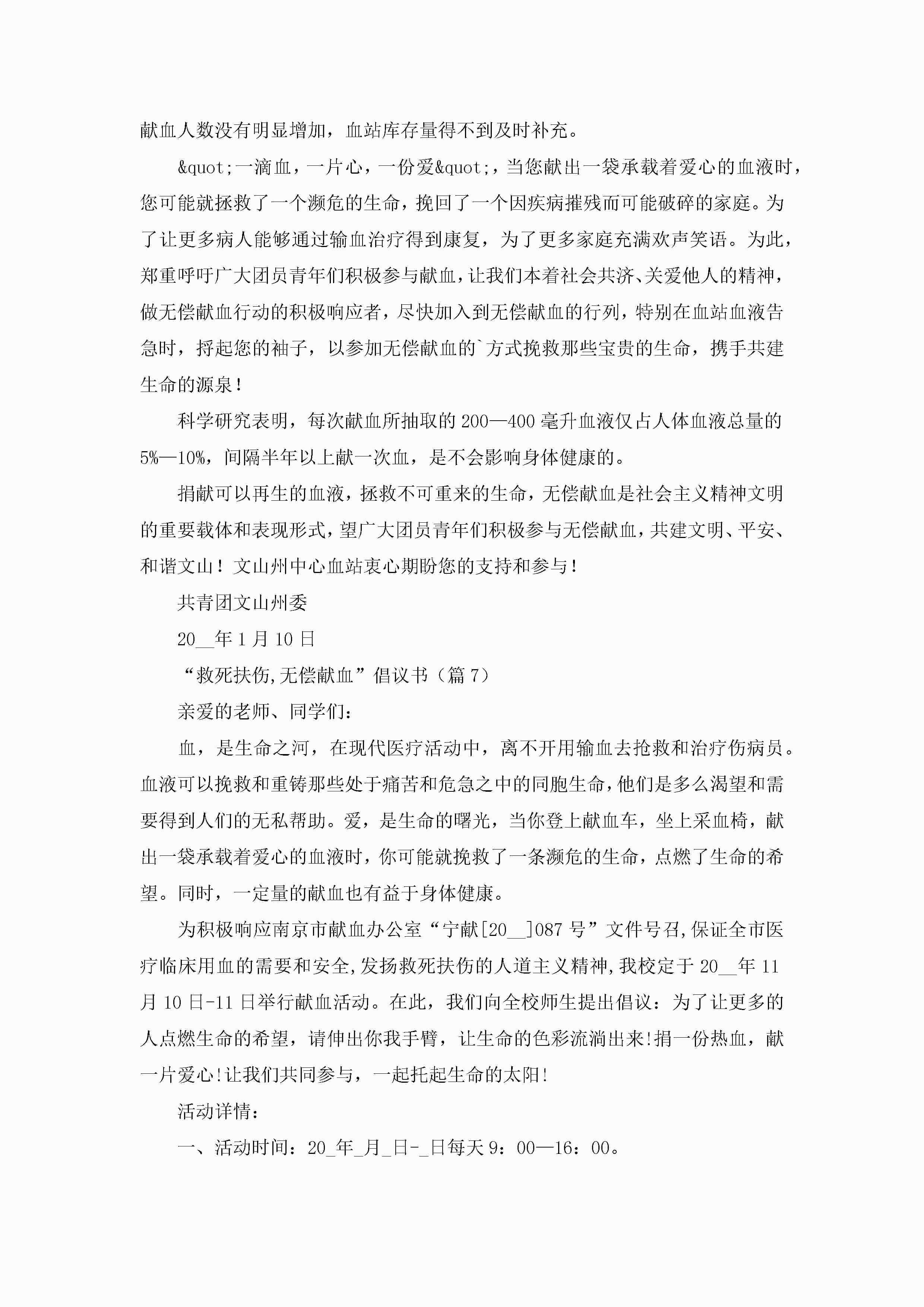 2023“救死扶伤,无偿献血”倡议书精选7篇jugei3月22日 16:28发布关注314 2023“救死扶伤,无偿献血”倡议书精选7篇此内容为付费资源,请付费后查看¥10.9 单篇文档限时特惠¥15个人会员开通企业会员开通立即下载无需登陆!可直接快捷下载单个模板付费资源© 版权声明THE ENDWord模板# 实用文档# 实用模板# 信函模板# 倡议书 如有问题,可点击最底部“联系我们”联系客服 分享QQ空间微博QQ好友海报分享复制链接收藏