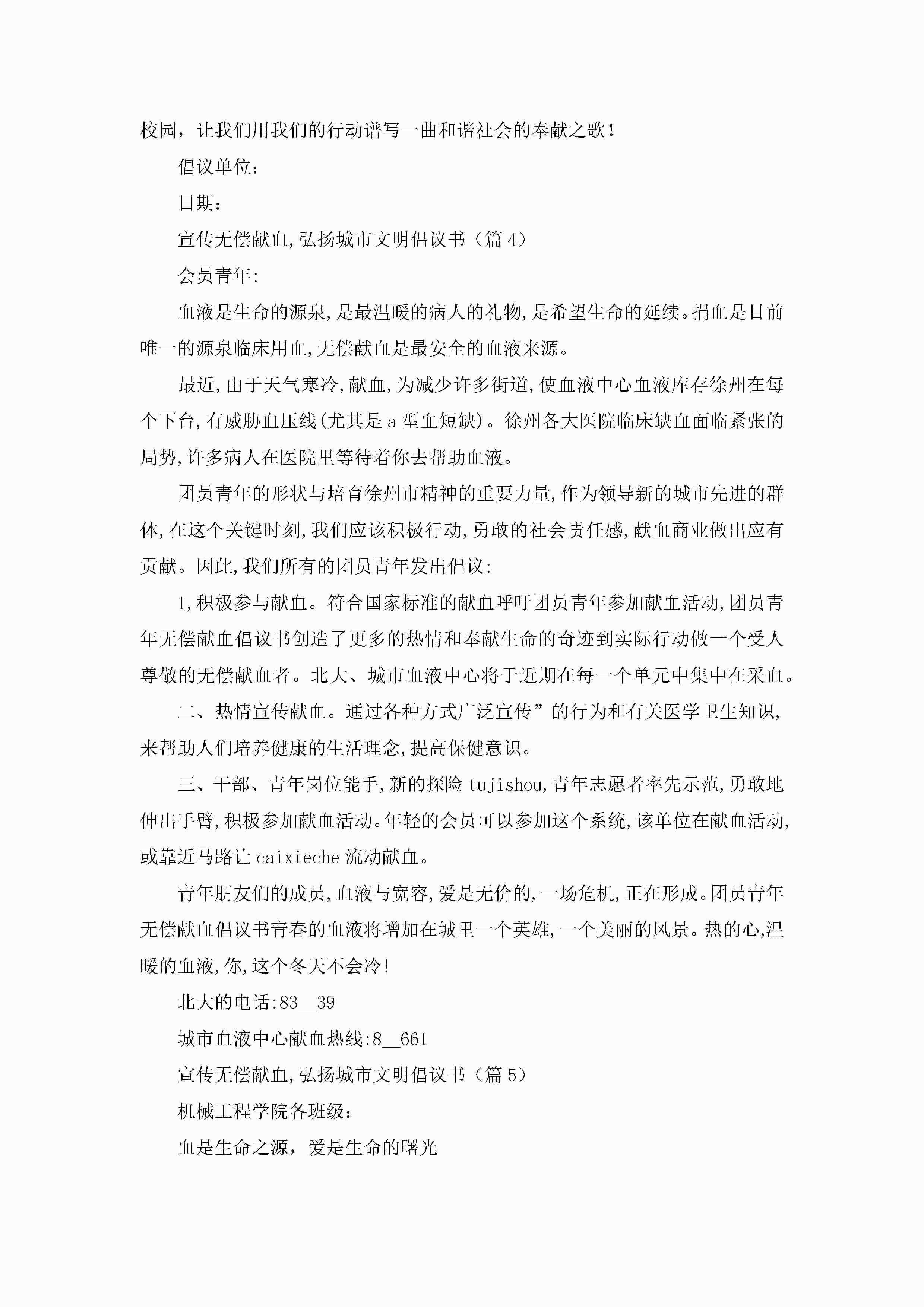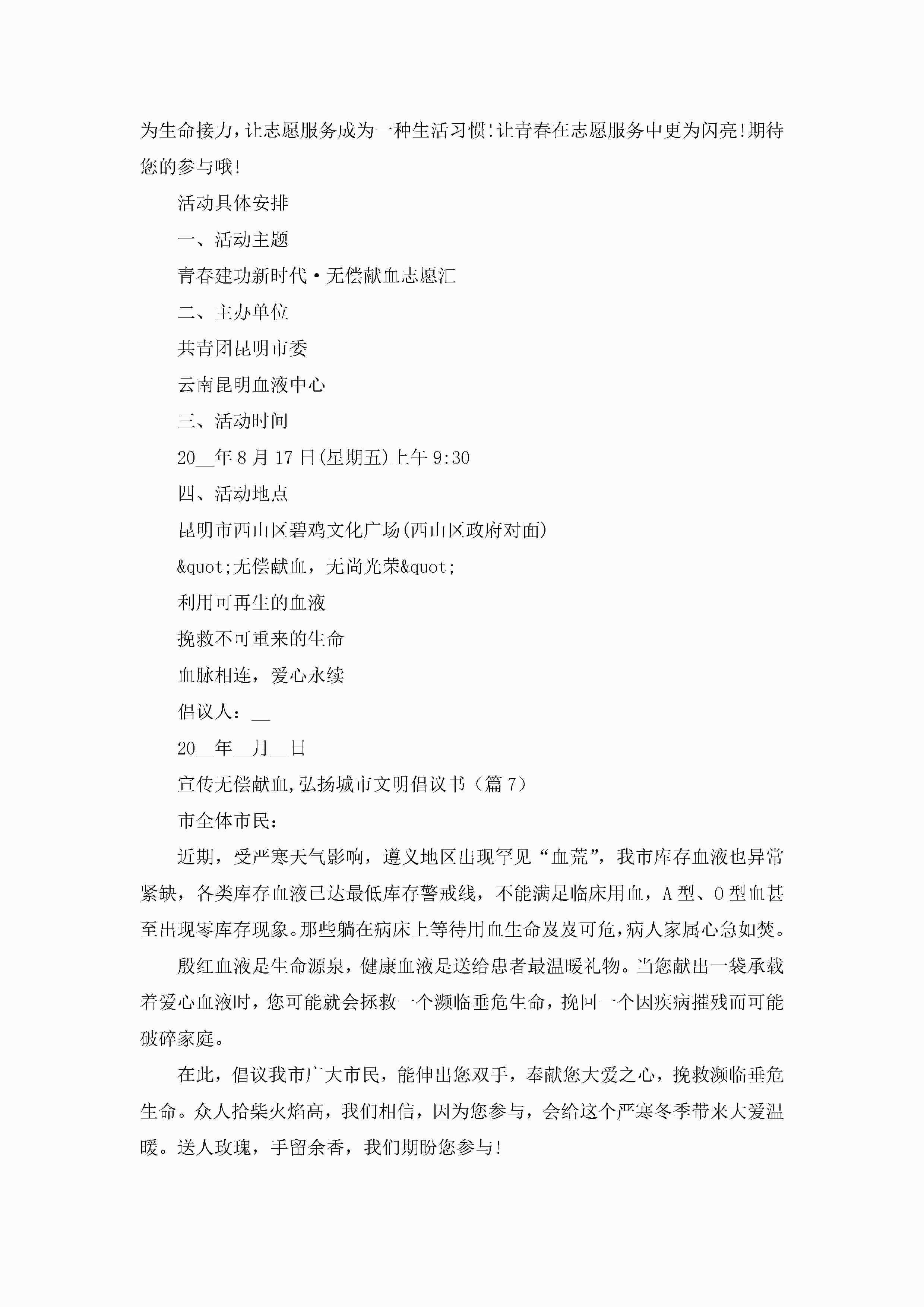 宣传无偿献血,弘扬城市文明倡议书(7篇)2023年jugei3月22日 16:28发布关注205 宣传无偿献血,弘扬城市文明倡议书(7篇)2023年此内容为付费资源,请付费后查看¥10.9 单篇文档限时特惠¥15个人会员开通企业会员开通立即下载无需登陆!可直接快捷下载单个模板付费资源© 版权声明THE ENDWord模板# 实用文档# 实用模板# 信函模板# 倡议书 如有问题,可点击最底部“联系我们”联系客服 分享QQ空间微博QQ好友海报分享复制链接收藏