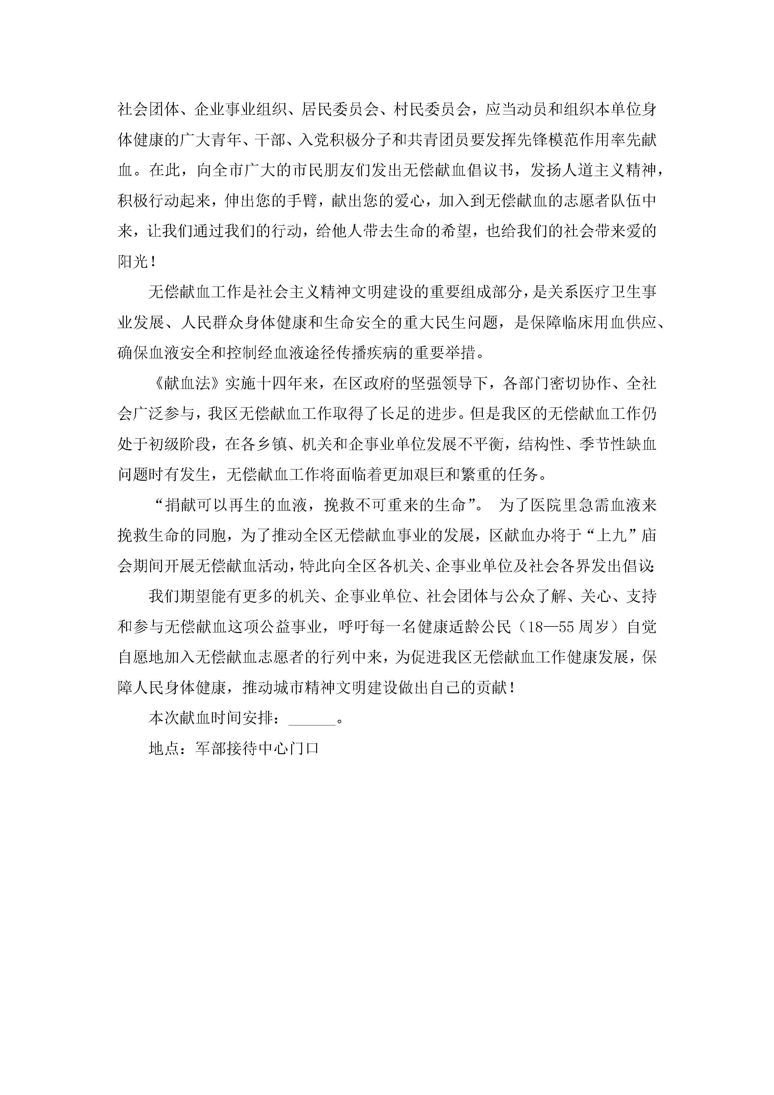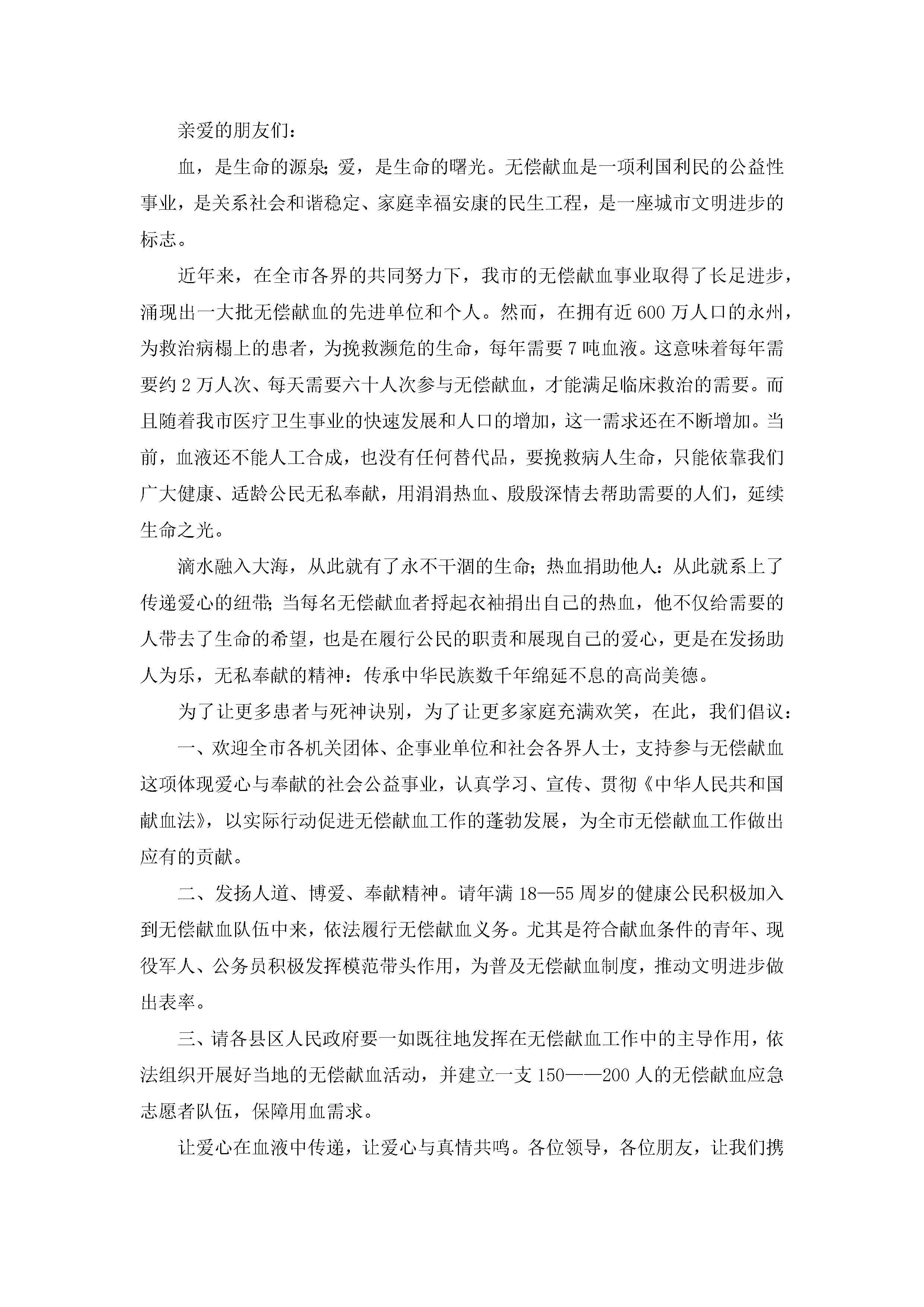 2023年呼吁市民无偿献血的倡议书(最新7篇)jugei3月22日 16:28发布关注400 2023年呼吁市民无偿献血的倡议书(最新7篇)此内容为付费资源,请付费后查看¥10.9 单篇文档限时特惠¥15个人会员开通企业会员开通立即下载无需登陆!可直接快捷下载单个模板付费资源© 版权声明THE ENDWord模板# 实用文档# 实用模板# 信函模板# 倡议书 如有问题,可点击最底部“联系我们”联系客服 分享QQ空间微博QQ好友海报分享复制链接收藏
