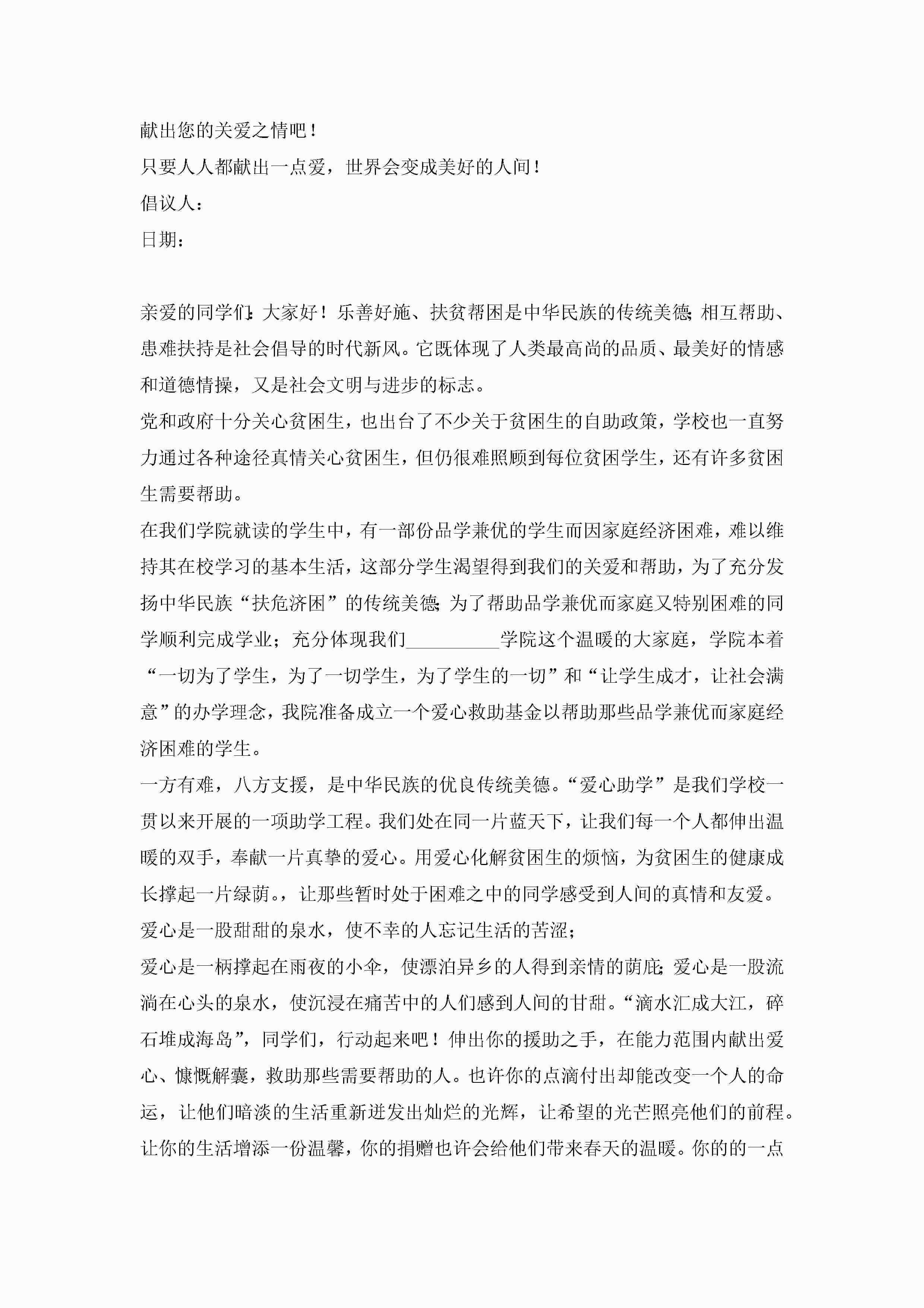 爱心捐款经典倡议书大全(精选7篇)jugei3月22日 16:28发布关注198 爱心捐款经典倡议书大全(精选7篇)此内容为付费资源,请付费后查看¥10.9 单篇文档限时特惠¥15个人会员开通企业会员开通立即下载无需登陆!可直接快捷下载单个模板付费资源© 版权声明THE ENDWord模板# 实用文档# 实用模板# 信函模板# 倡议书 如有问题,可点击最底部“联系我们”联系客服 分享QQ空间微博QQ好友海报分享复制链接收藏
