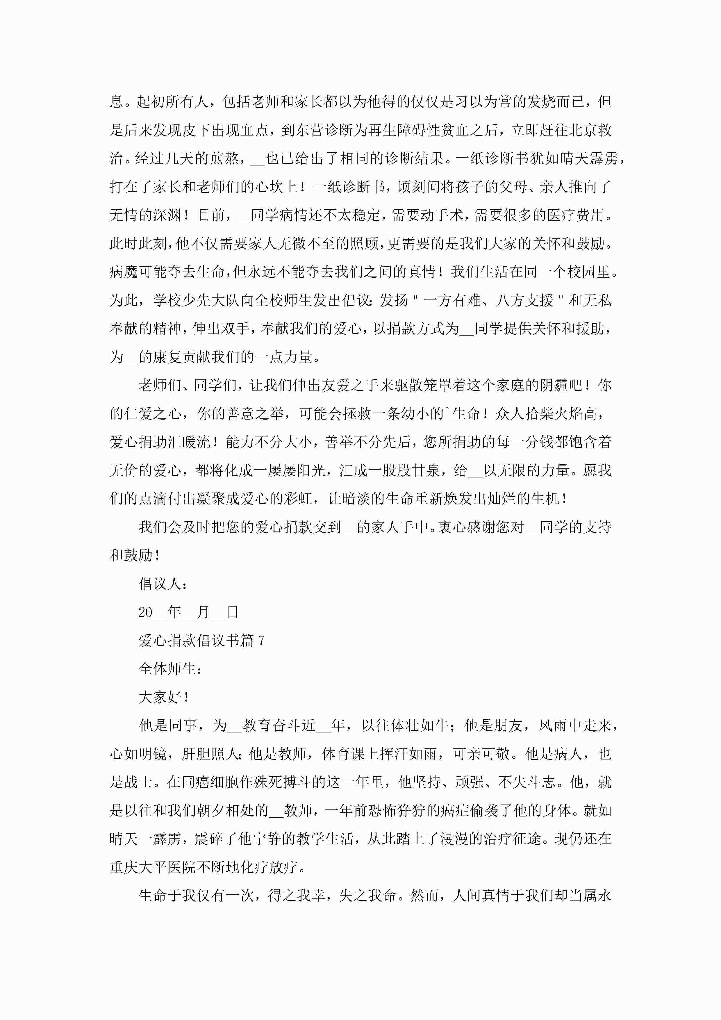 爱心捐款倡议书(精选7篇)jugei3月22日 16:28发布关注415 爱心捐款倡议书(精选7篇)此内容为付费资源,请付费后查看¥10.9 单篇文档限时特惠¥15个人会员开通企业会员开通立即下载无需登陆!可直接快捷下载单个模板付费资源© 版权声明THE ENDWord模板# 实用文档# 实用模板# 信函模板# 倡议书 如有问题,可点击最底部“联系我们”联系客服 分享QQ空间微博QQ好友海报分享复制链接收藏