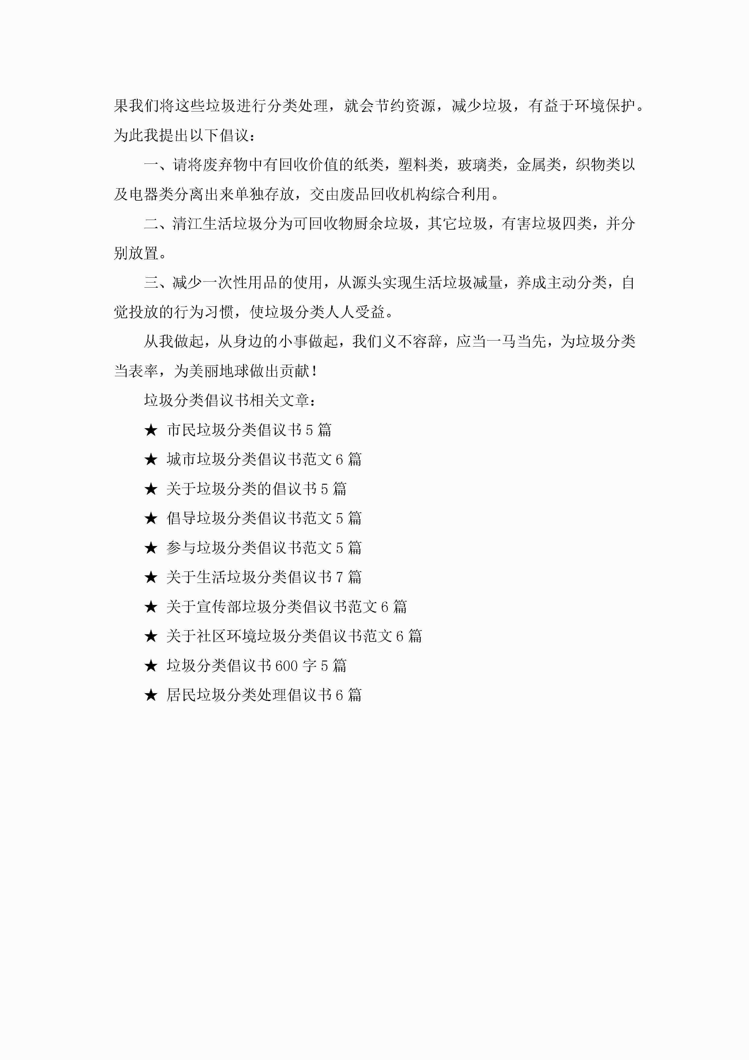 垃圾分类倡议书最新6篇jugei3月22日 16:28发布关注241 垃圾分类倡议书最新6篇此内容为付费资源,请付费后查看¥10.9 单篇文档限时特惠¥15个人会员开通企业会员开通立即下载无需登陆!可直接快捷下载单个模板付费资源© 版权声明THE ENDWord模板# 实用文档# 实用模板# 信函模板# 倡议书 如有问题,可点击最底部“联系我们”联系客服 分享QQ空间微博QQ好友海报分享复制链接收藏