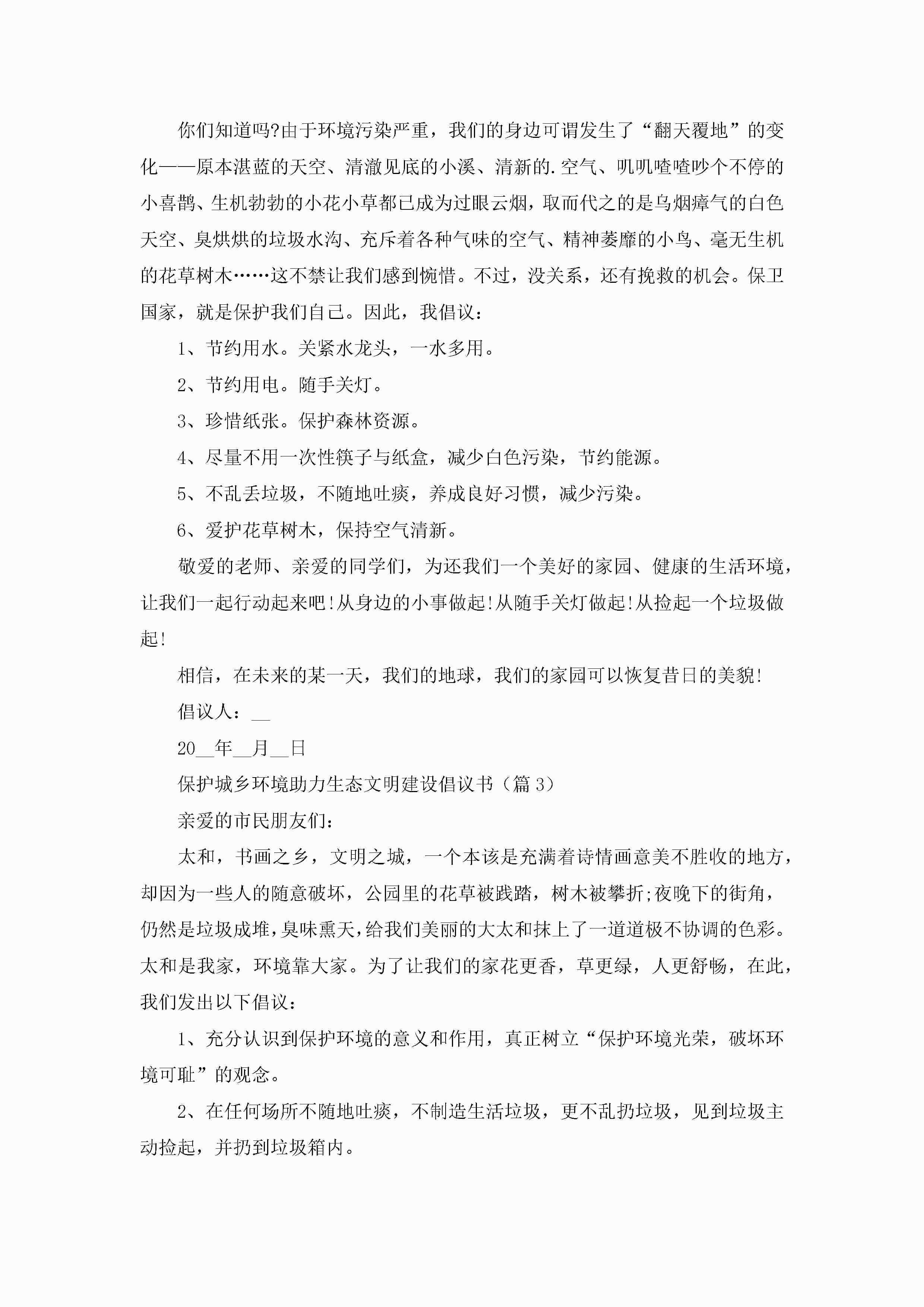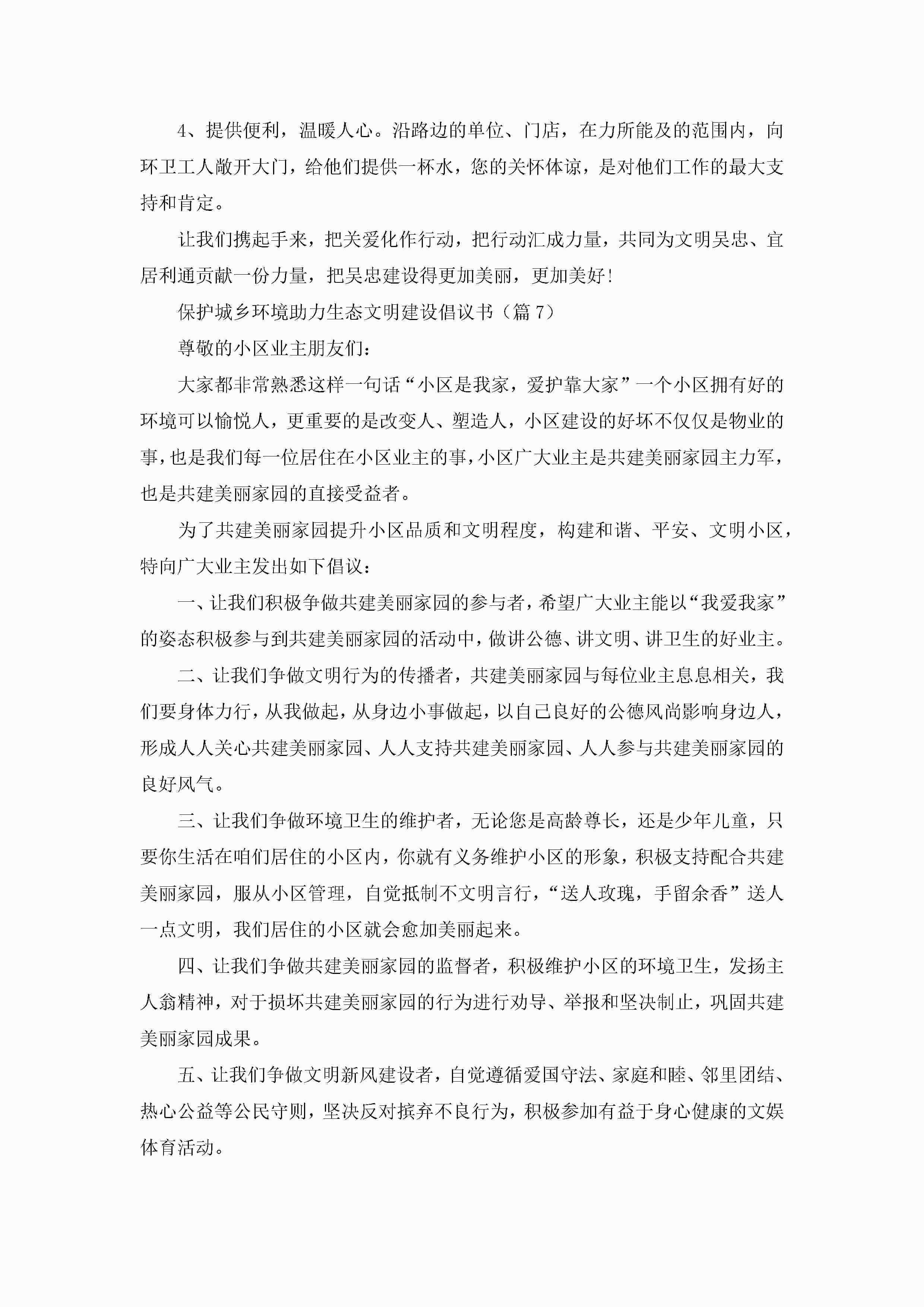 保护城乡环境助力生态文明建设倡议书7篇jugei3月22日 16:28发布关注195 保护城乡环境助力生态文明建设倡议书7篇此内容为付费资源,请付费后查看¥10.9 单篇文档限时特惠¥15个人会员开通企业会员开通立即下载无需登陆!可直接快捷下载单个模板付费资源© 版权声明THE ENDWord模板# 实用文档# 实用模板# 信函模板# 倡议书 如有问题,可点击最底部“联系我们”联系客服 分享QQ空间微博QQ好友海报分享复制链接收藏