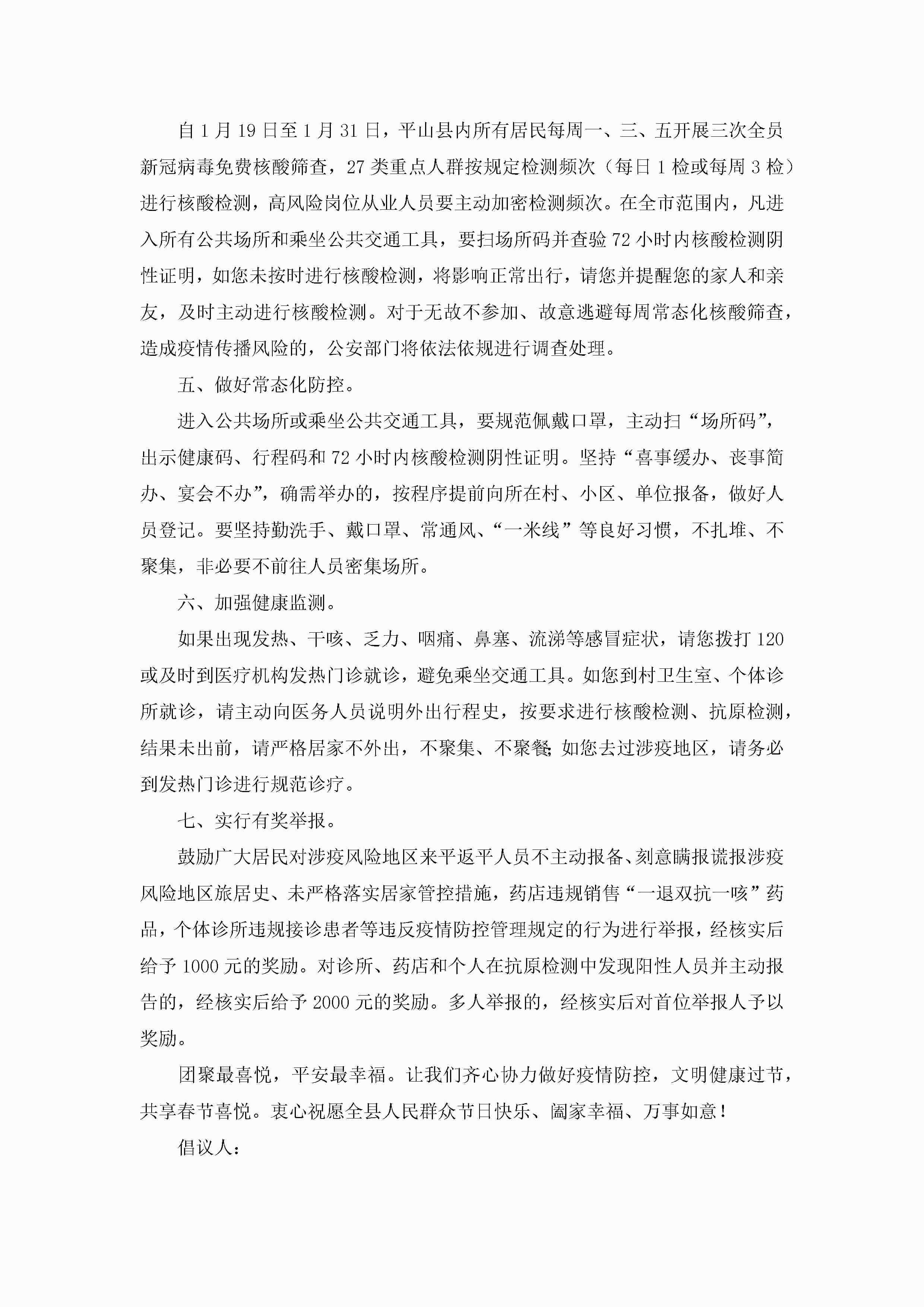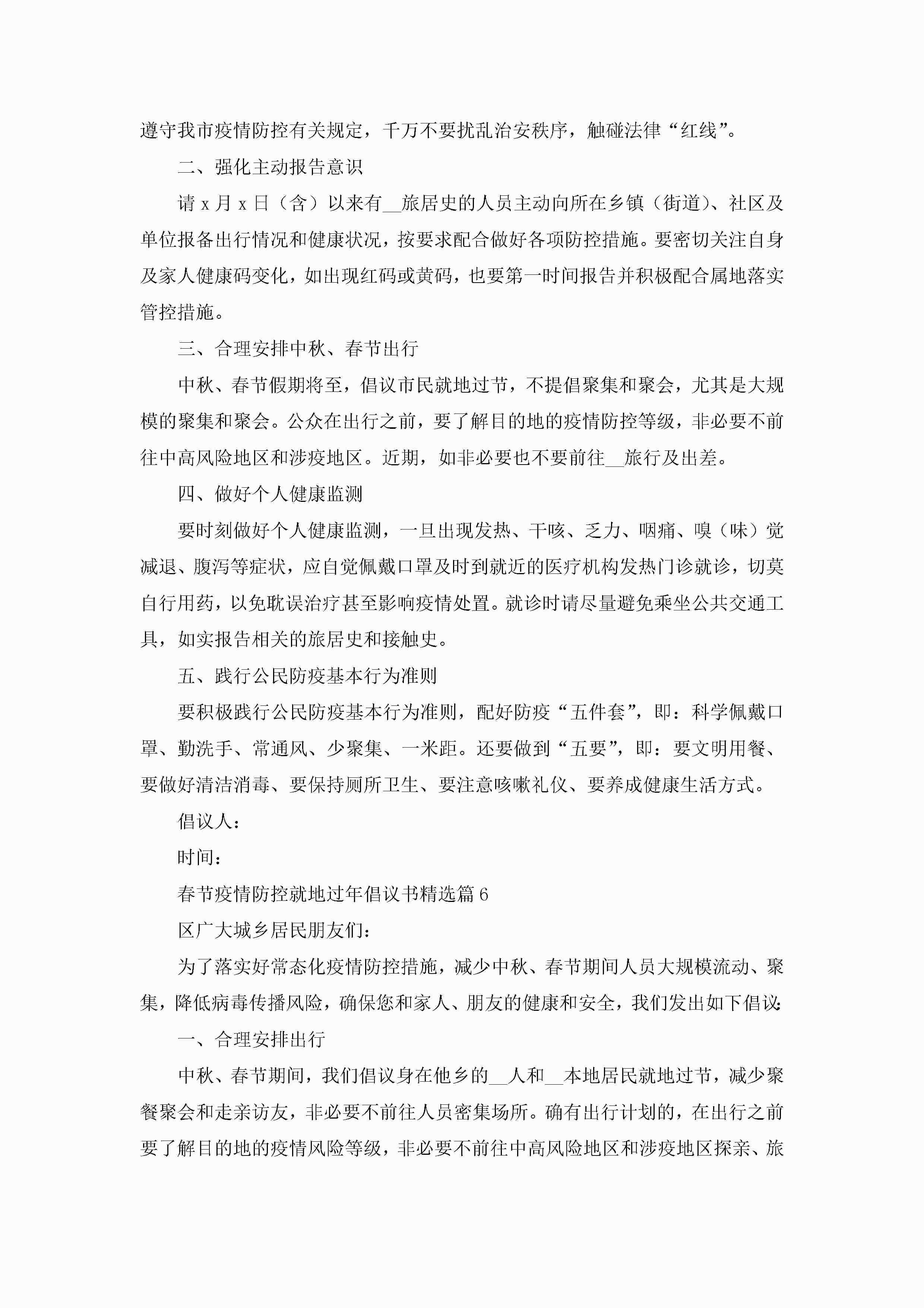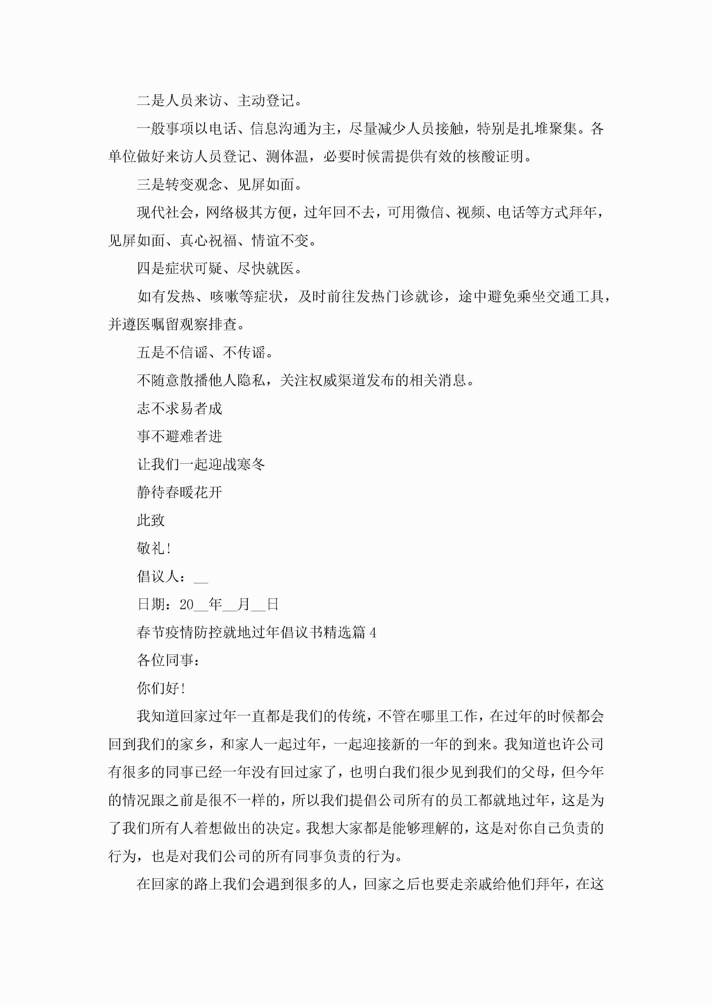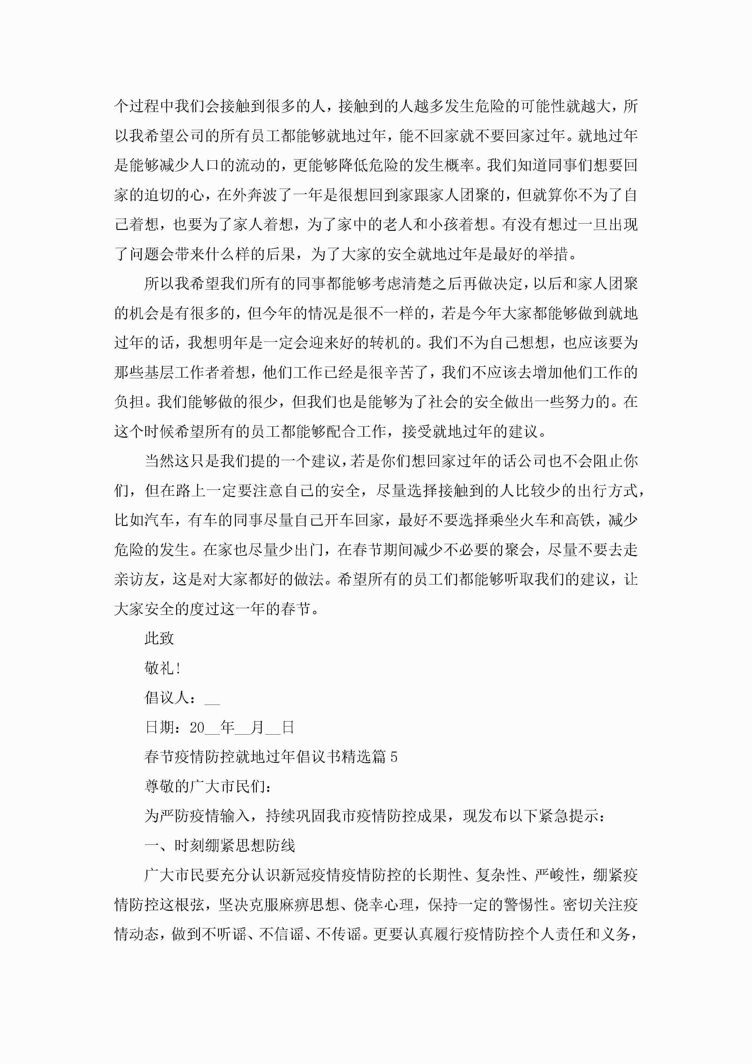 春节疫情防控就地过年倡议书(最新7篇)2023jugei3月22日 16:28发布关注188 春节疫情防控就地过年倡议书(最新7篇)2023此内容为付费资源,请付费后查看¥10.9 单篇文档限时特惠¥15个人会员开通企业会员开通立即下载无需登陆!可直接快捷下载单个模板付费资源© 版权声明THE ENDWord模板# 实用文档# 实用模板# 信函模板# 倡议书 如有问题,可点击最底部“联系我们”联系客服 分享QQ空间微博QQ好友海报分享复制链接收藏
