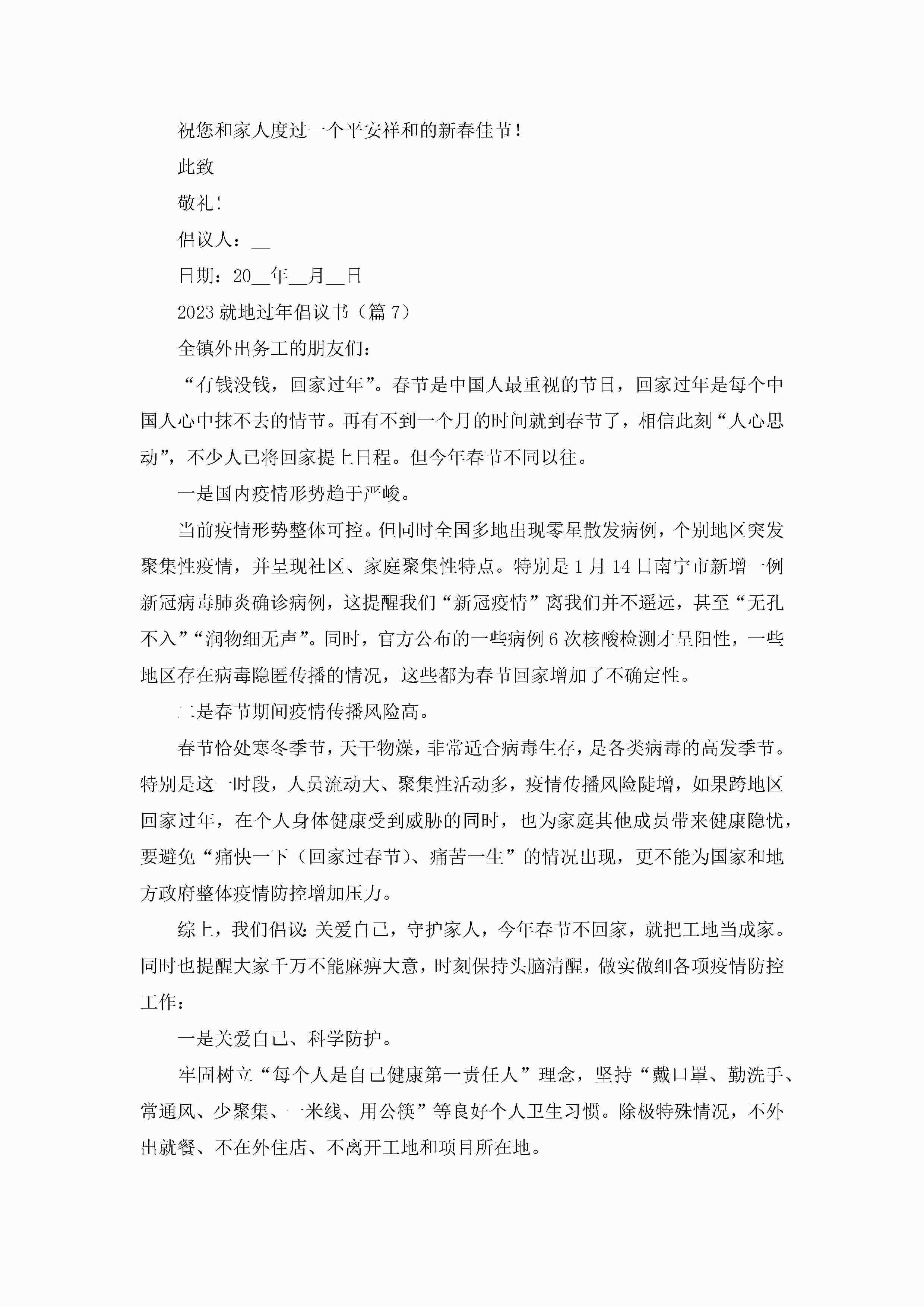 2023就地过年倡议书(通用7篇)jugei3月22日 16:28发布关注186 2023就地过年倡议书(通用7篇)此内容为付费资源,请付费后查看¥10.9 单篇文档限时特惠¥15个人会员开通企业会员开通立即下载无需登陆!可直接快捷下载单个模板付费资源© 版权声明THE ENDWord模板# 实用文档# 实用模板# 信函模板# 倡议书 如有问题,可点击最底部“联系我们”联系客服 分享QQ空间微博QQ好友海报分享复制链接收藏
