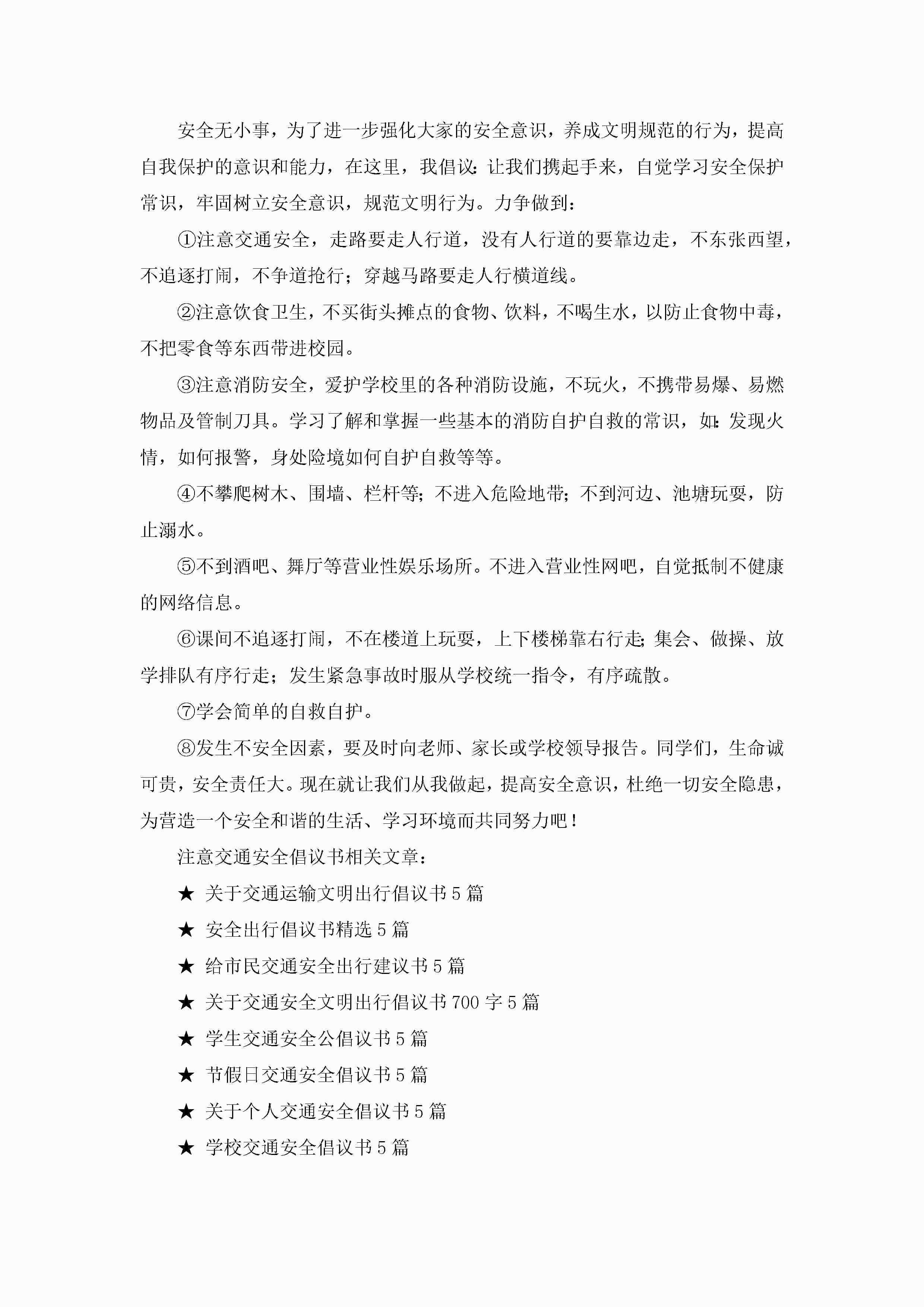 注意交通安全倡议书最新6篇jugei3月22日 16:28发布关注196 注意交通安全倡议书最新6篇此内容为付费资源,请付费后查看¥10.9 单篇文档限时特惠¥15个人会员开通企业会员开通立即下载无需登陆!可直接快捷下载单个模板付费资源© 版权声明THE ENDWord模板# 实用文档# 实用模板# 信函模板# 倡议书 如有问题,可点击最底部“联系我们”联系客服 分享QQ空间微博QQ好友海报分享复制链接收藏