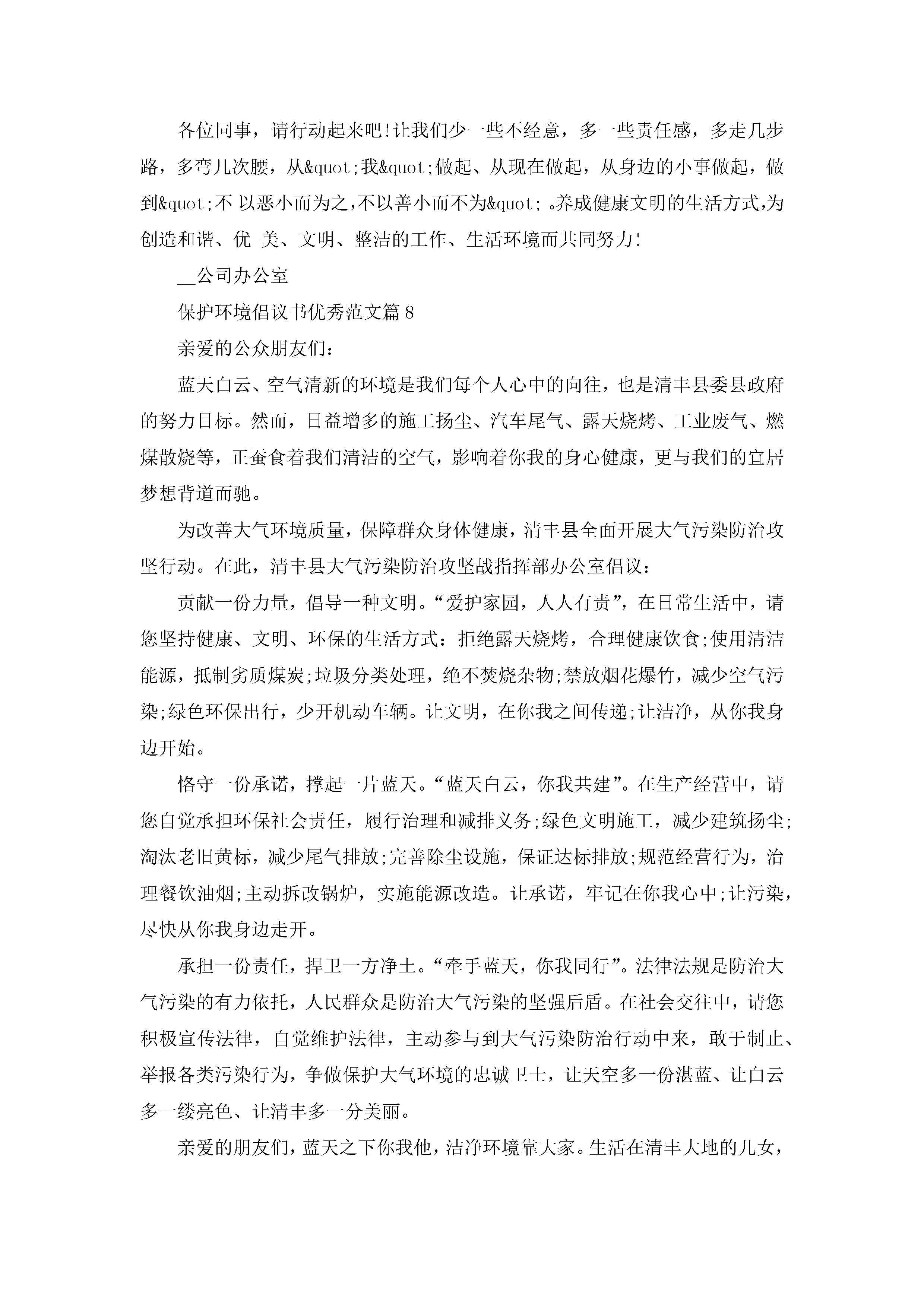 保护环境倡议书优秀范文大全(精选10篇)jugei3月22日 16:28发布关注303 保护环境倡议书优秀范文大全(精选10篇)此内容为付费资源,请付费后查看¥10.9 单篇文档限时特惠¥15个人会员开通企业会员开通立即下载无需登陆!可直接快捷下载单个模板付费资源© 版权声明THE ENDWord模板# 实用文档# 实用模板# 信函模板# 倡议书 如有问题,可点击最底部“联系我们”联系客服 分享QQ空间微博QQ好友海报分享复制链接收藏