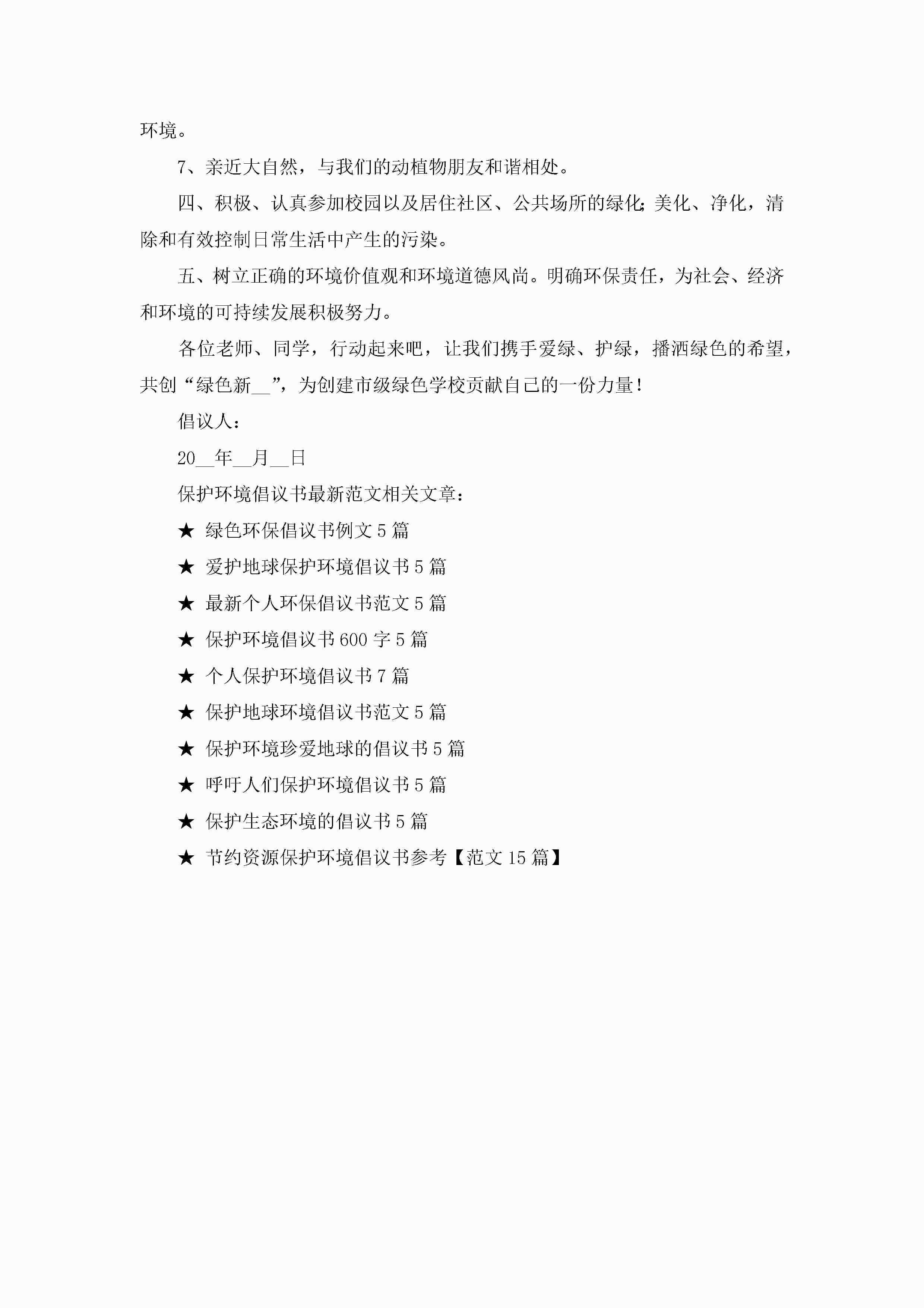 保护环境倡议书最新范文7篇jugei3月22日 16:29发布关注358 保护环境倡议书最新范文7篇此内容为付费资源,请付费后查看¥10.9 单篇文档限时特惠¥15个人会员开通企业会员开通立即下载无需登陆!可直接快捷下载单个模板付费资源© 版权声明THE ENDWord模板# 实用文档# 实用模板# 信函模板# 倡议书 如有问题,可点击最底部“联系我们”联系客服 分享QQ空间微博QQ好友海报分享复制链接收藏