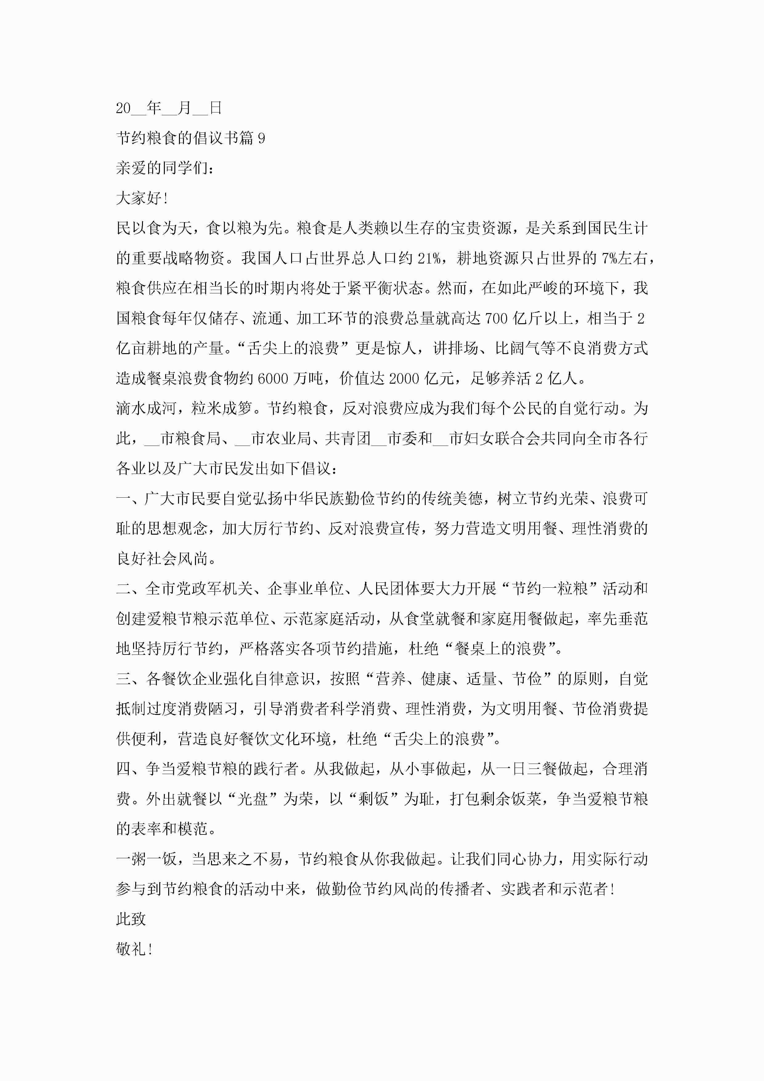 节约粮食的倡议书(精选10篇)jugei3月22日 16:29发布关注195 节约粮食的倡议书(精选10篇)此内容为付费资源,请付费后查看¥10.9 单篇文档限时特惠¥15个人会员开通企业会员开通立即下载无需登陆!可直接快捷下载单个模板付费资源© 版权声明THE ENDWord模板# 实用文档# 实用模板# 信函模板# 倡议书 如有问题,可点击最底部“联系我们”联系客服 分享QQ空间微博QQ好友海报分享复制链接收藏