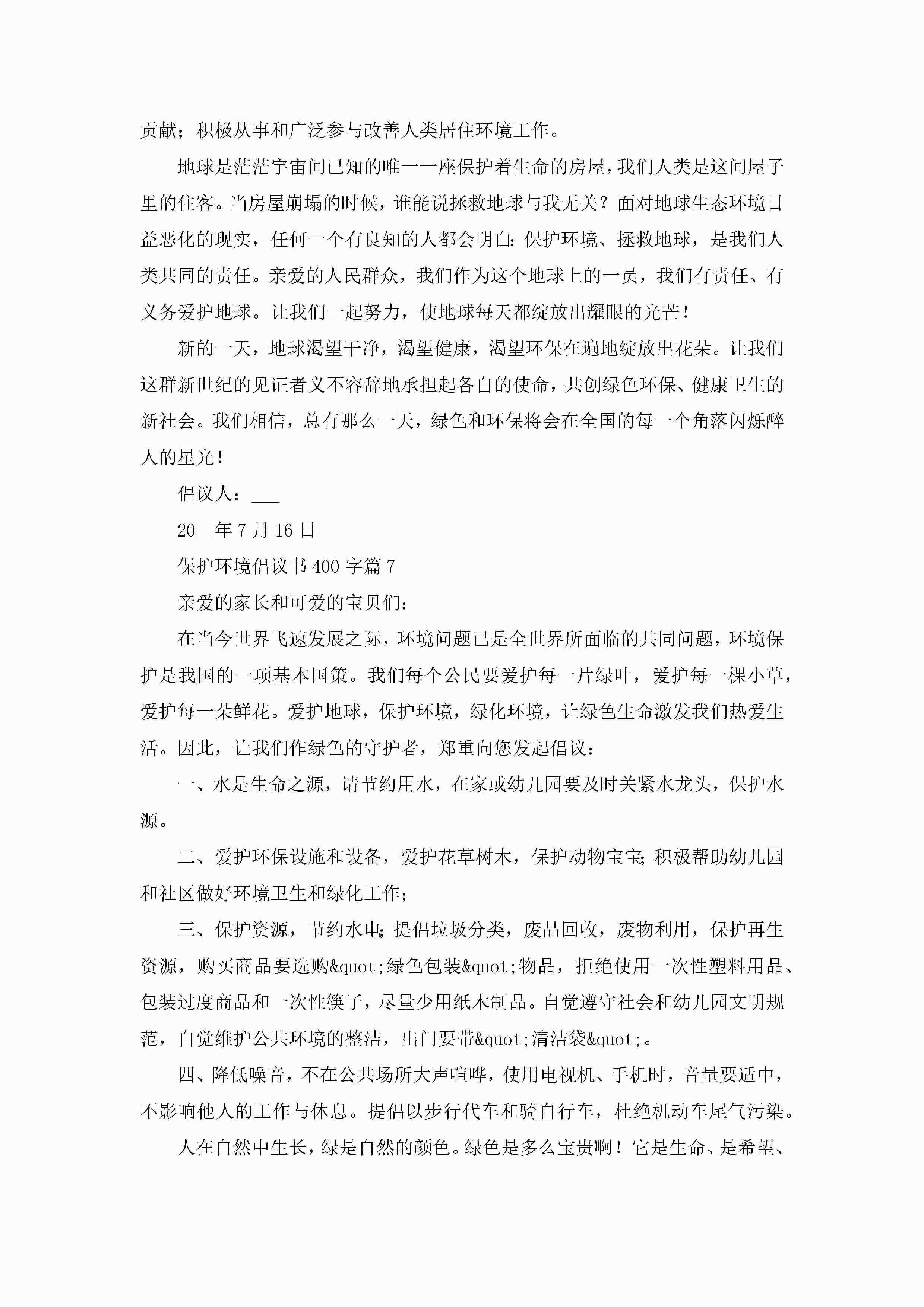 保护环境倡议书400字(精选10篇)jugei3月22日 16:29发布关注200 保护环境倡议书400字(精选10篇)此内容为付费资源,请付费后查看¥10.9 单篇文档限时特惠¥15个人会员开通企业会员开通立即下载无需登陆!可直接快捷下载单个模板付费资源© 版权声明THE ENDWord模板# 实用文档# 实用模板# 信函模板# 倡议书 如有问题,可点击最底部“联系我们”联系客服 分享QQ空间微博QQ好友海报分享复制链接收藏