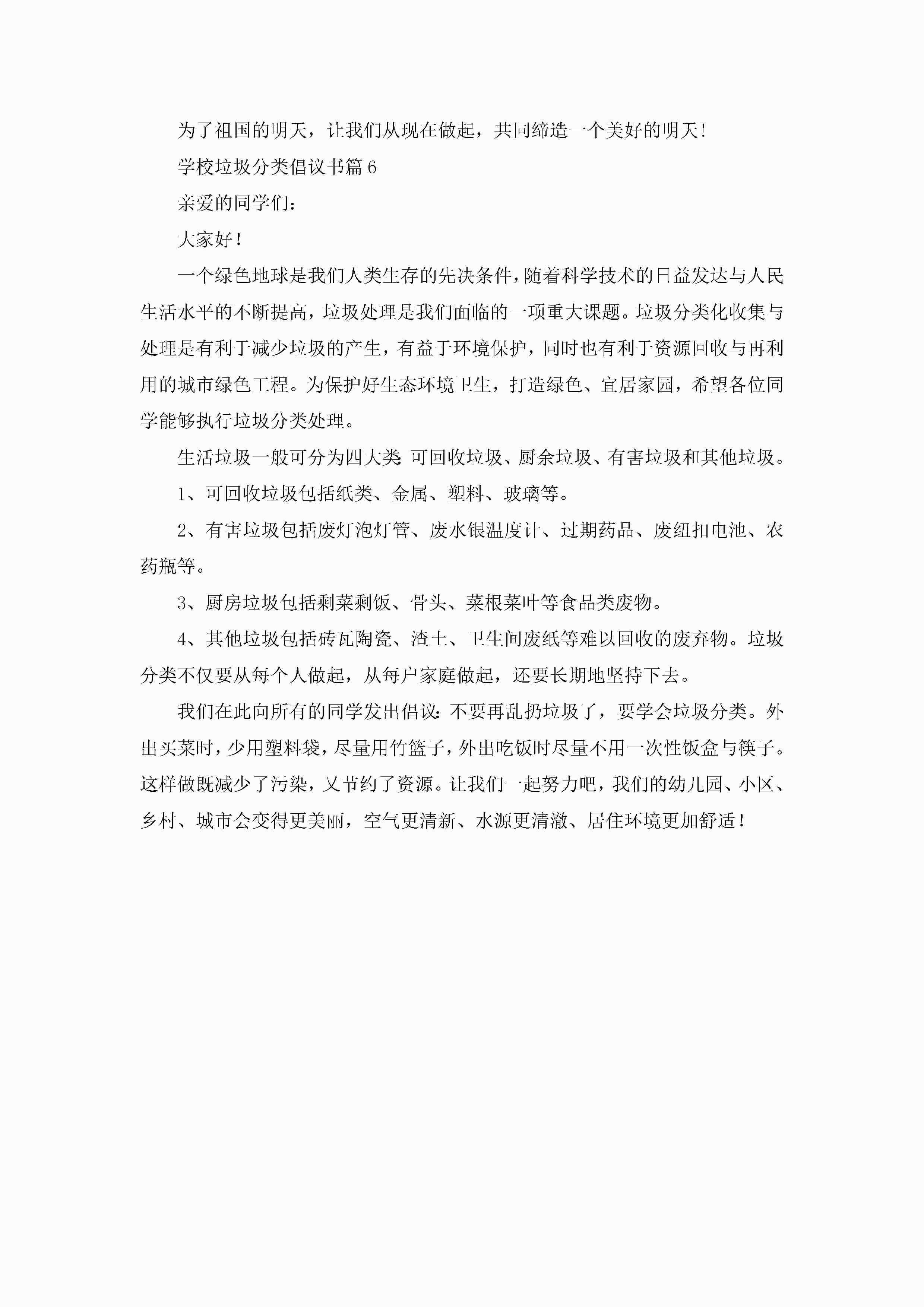 学校垃圾分类倡议书6篇jugei3月22日 16:29发布关注194 学校垃圾分类倡议书6篇此内容为付费资源,请付费后查看¥10.9 单篇文档限时特惠¥15个人会员开通企业会员开通立即下载无需登陆!可直接快捷下载单个模板付费资源© 版权声明THE ENDWord模板# 实用文档# 实用模板# 信函模板# 倡议书 如有问题,可点击最底部“联系我们”联系客服 分享QQ空间微博QQ好友海报分享复制链接收藏