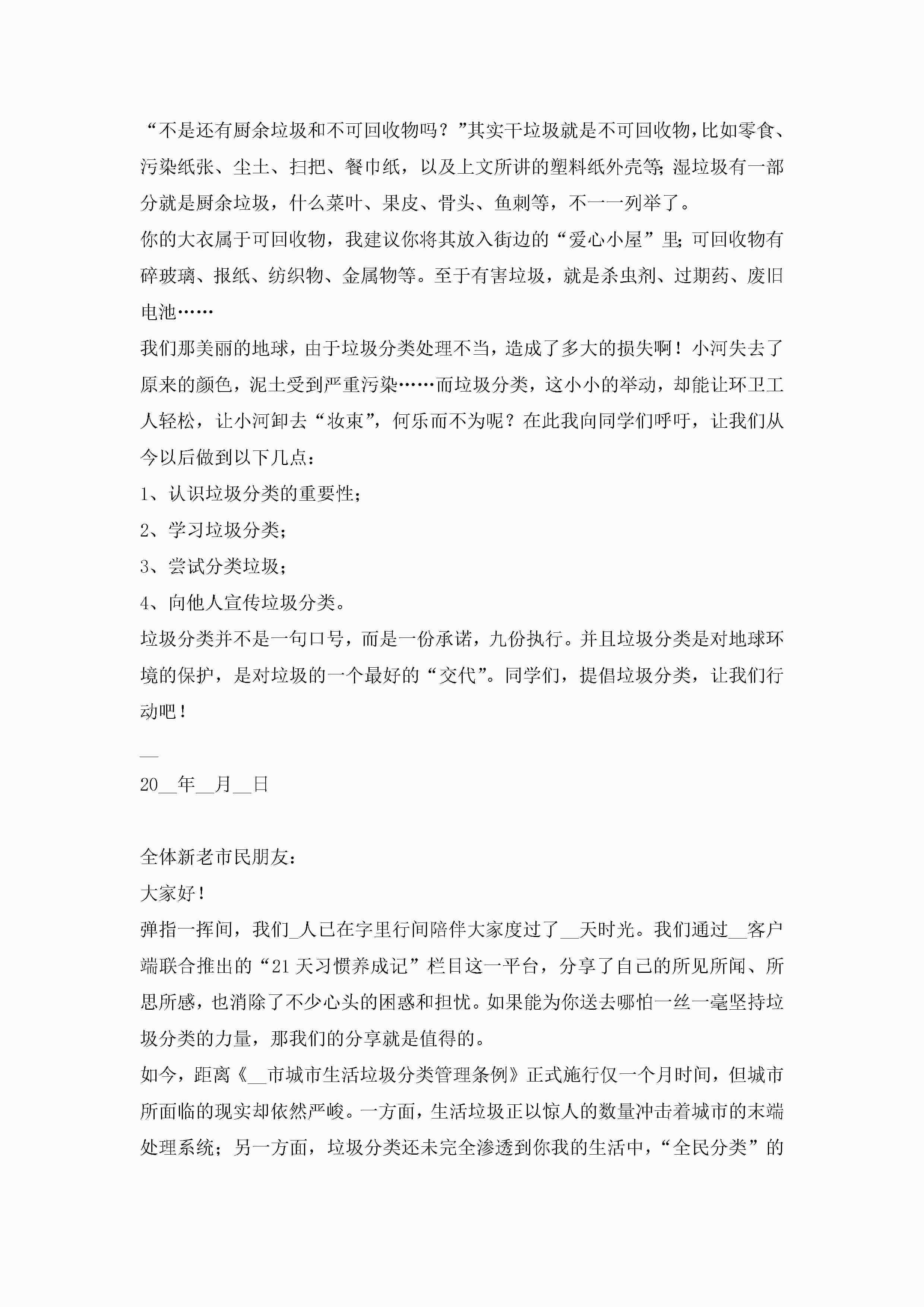关于垃圾分类倡议书(精选10篇)jugei3月22日 16:29发布关注194 关于垃圾分类倡议书(精选10篇)此内容为付费资源,请付费后查看¥10.9 单篇文档限时特惠¥15个人会员开通企业会员开通立即下载无需登陆!可直接快捷下载单个模板付费资源© 版权声明THE ENDWord模板# 实用文档# 实用模板# 信函模板# 倡议书 如有问题,可点击最底部“联系我们”联系客服 分享QQ空间微博QQ好友海报分享复制链接收藏