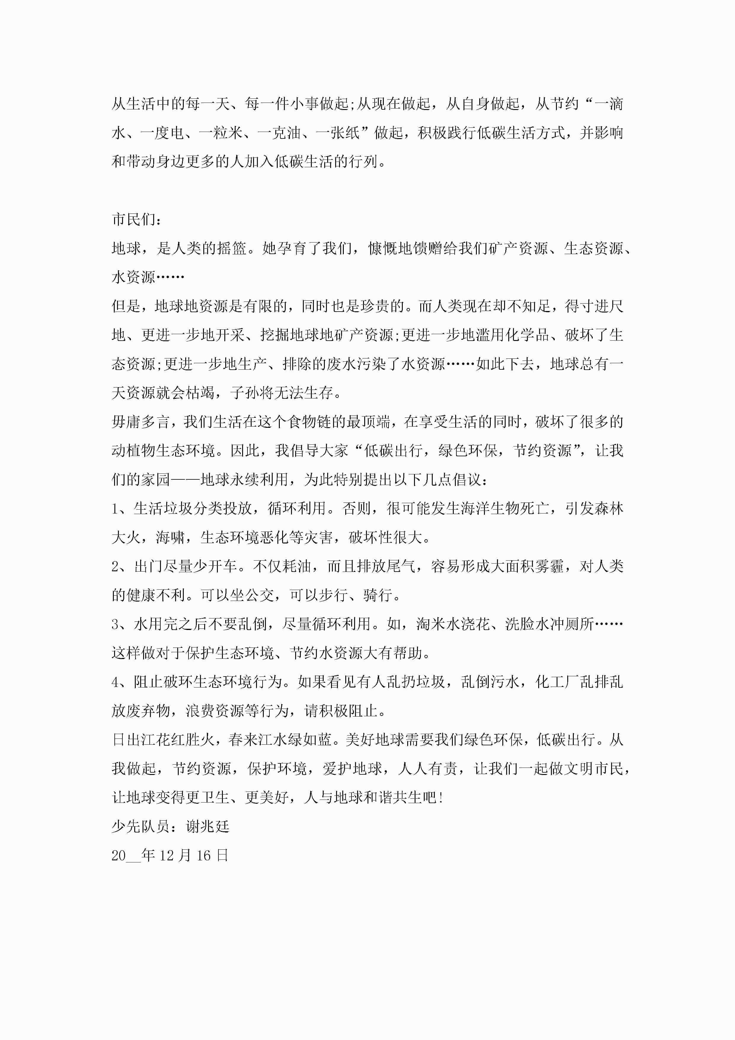 低碳环保倡议书400字(精选10篇)jugei3月22日 16:29发布关注343 低碳环保倡议书400字(精选10篇)此内容为付费资源,请付费后查看¥10.9 单篇文档限时特惠¥15个人会员开通企业会员开通立即下载无需登陆!可直接快捷下载单个模板付费资源© 版权声明THE ENDWord模板# 实用文档# 实用模板# 信函模板# 倡议书 如有问题,可点击最底部“联系我们”联系客服 分享QQ空间微博QQ好友海报分享复制链接收藏