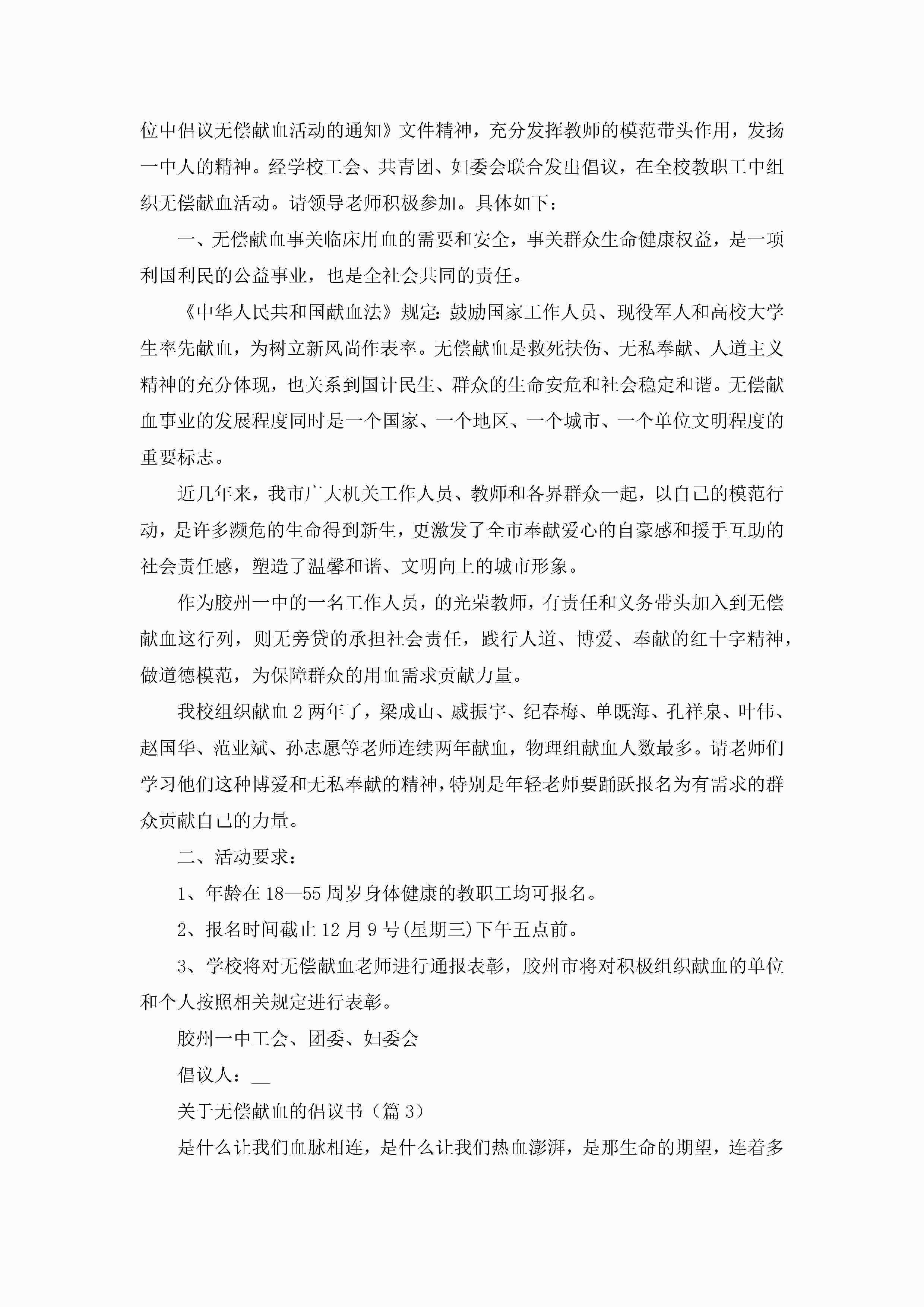 关于无偿献血的倡议书6篇jugei3月22日 16:29发布关注191 关于无偿献血的倡议书6篇此内容为付费资源,请付费后查看¥10.9 单篇文档限时特惠¥15个人会员开通企业会员开通立即下载无需登陆!可直接快捷下载单个模板付费资源© 版权声明THE ENDWord模板# 实用文档# 实用模板# 信函模板# 倡议书 如有问题,可点击最底部“联系我们”联系客服 分享QQ空间微博QQ好友海报分享复制链接收藏