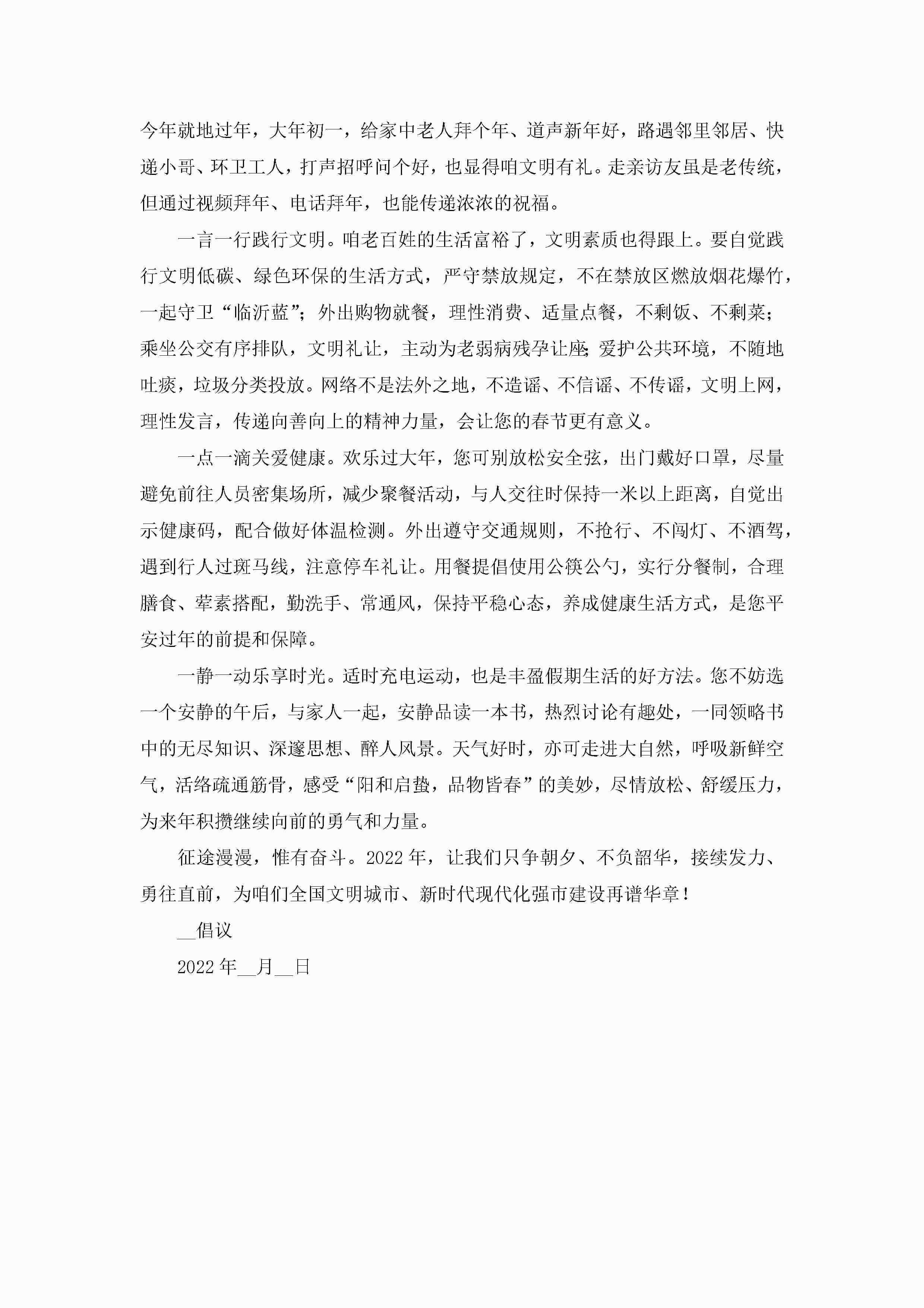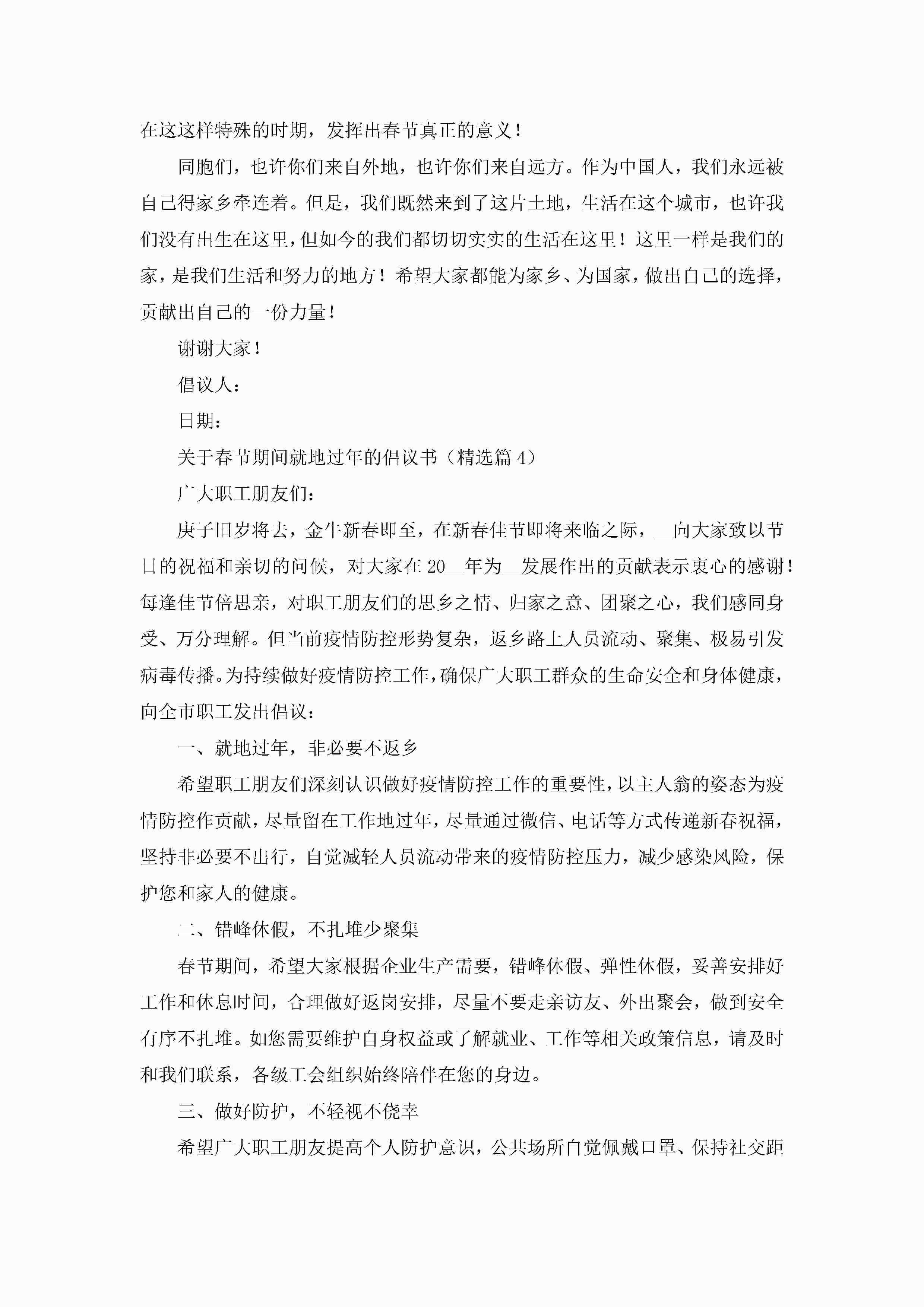 关于春节期间就地过年的倡议书(通用)jugei3月22日 16:29发布关注217 关于春节期间就地过年的倡议书(通用)此内容为付费资源,请付费后查看¥10.9 单篇文档限时特惠¥15个人会员开通企业会员开通立即下载无需登陆!可直接快捷下载单个模板付费资源© 版权声明THE ENDWord模板# 实用文档# 实用模板# 信函模板# 倡议书 如有问题,可点击最底部“联系我们”联系客服 分享QQ空间微博QQ好友海报分享复制链接收藏