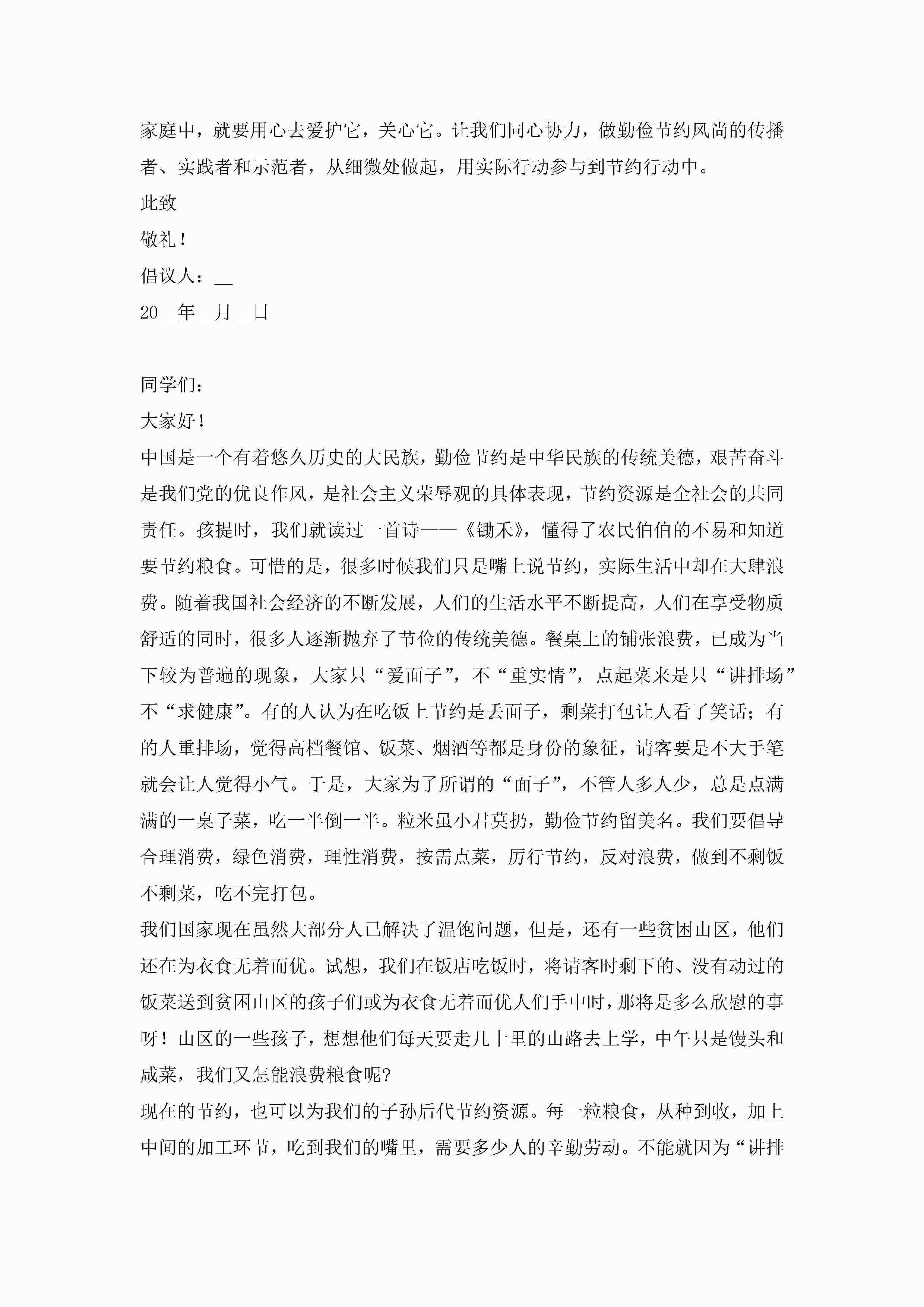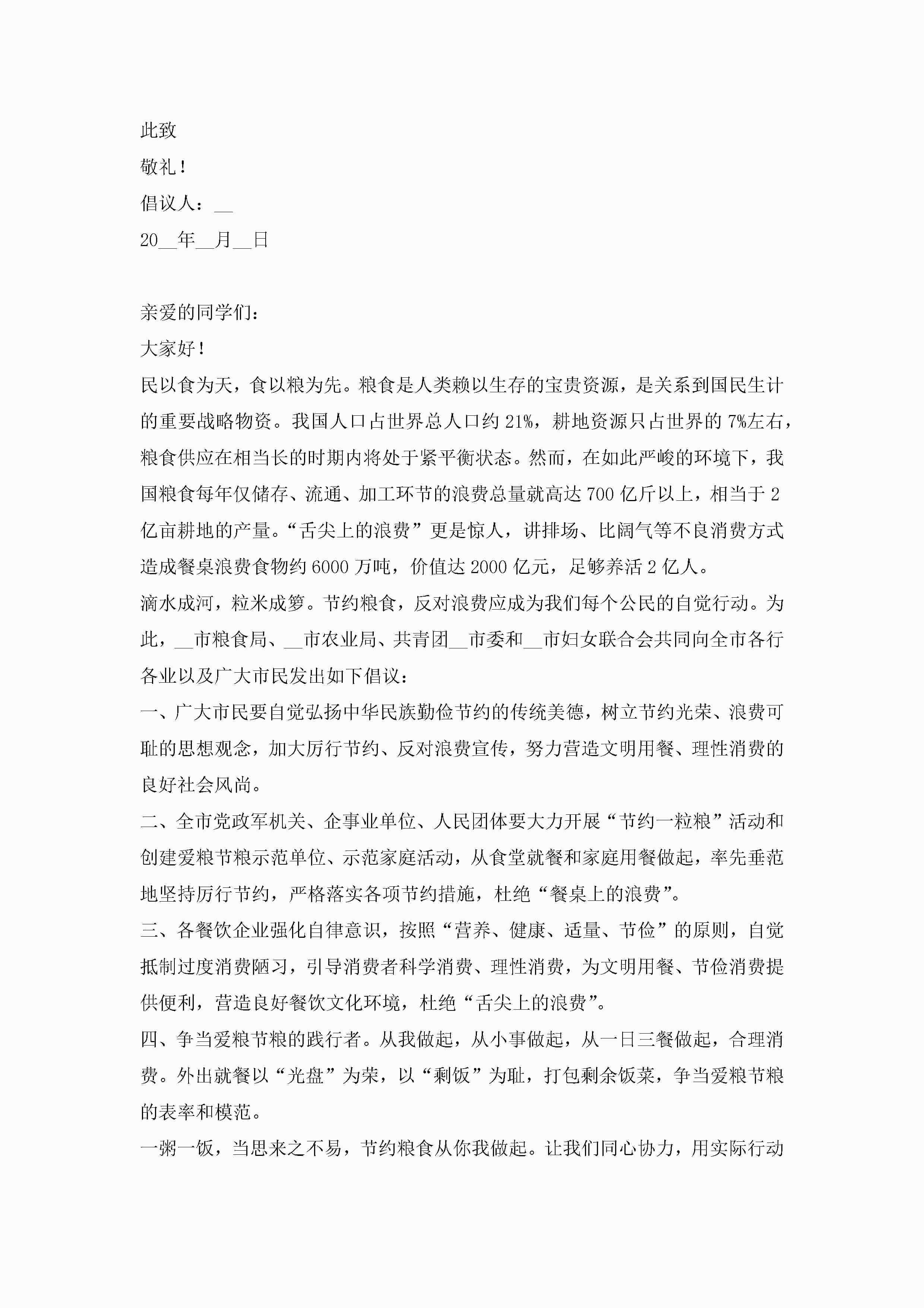 节约粮食主题倡议书范文7篇jugei3月22日 16:29发布关注201 节约粮食主题倡议书范文7篇此内容为付费资源,请付费后查看¥10.9 单篇文档限时特惠¥15个人会员开通企业会员开通立即下载无需登陆!可直接快捷下载单个模板付费资源© 版权声明THE ENDWord模板# 实用文档# 实用模板# 信函模板# 倡议书 如有问题,可点击最底部“联系我们”联系客服 分享QQ空间微博QQ好友海报分享复制链接收藏
