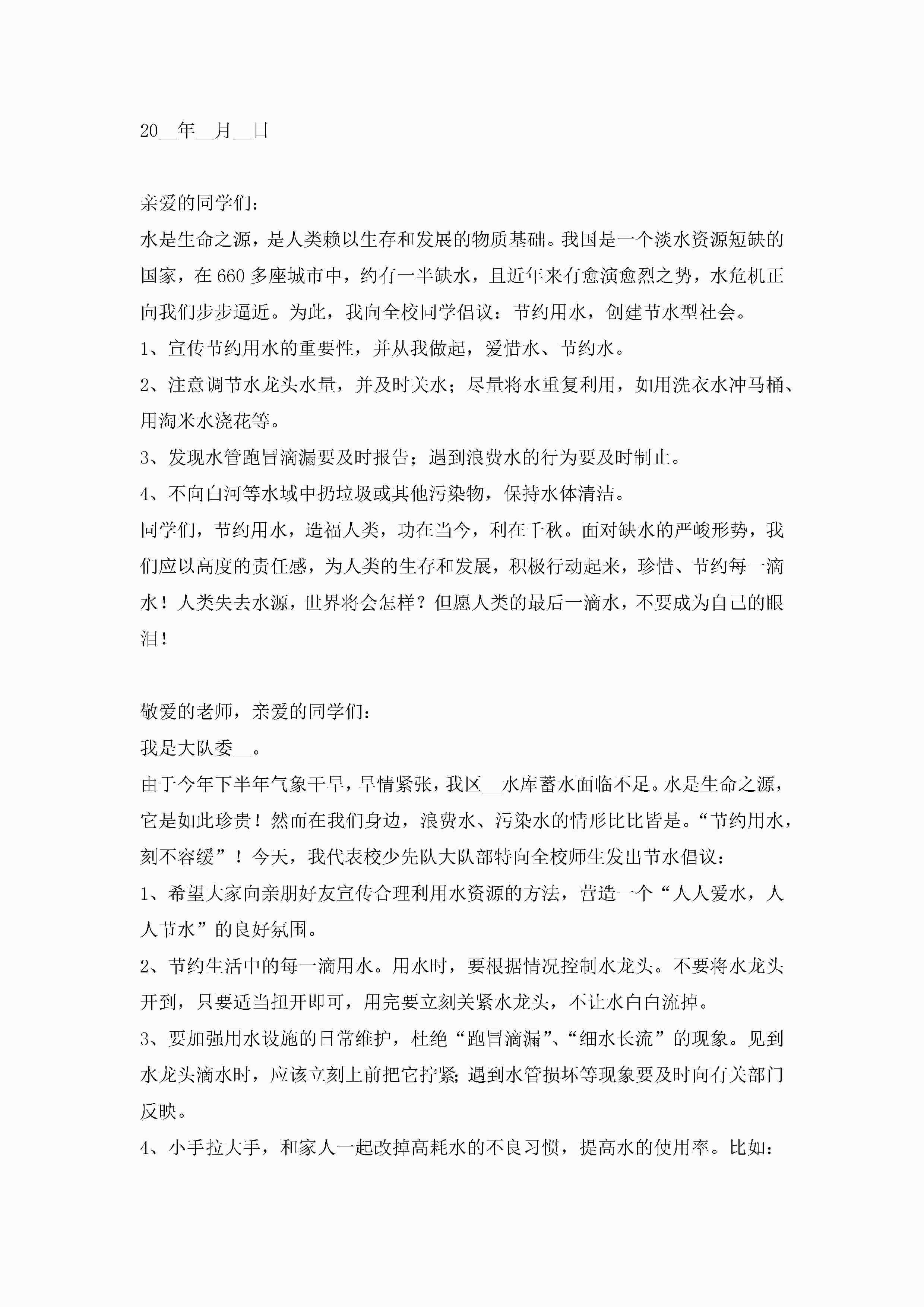 节约用水倡议书范文(最新8篇)jugei3月22日 16:29发布关注306 节约用水倡议书范文(最新8篇)此内容为付费资源,请付费后查看¥10.9 单篇文档限时特惠¥15个人会员开通企业会员开通立即下载无需登陆!可直接快捷下载单个模板付费资源© 版权声明THE ENDWord模板# 实用文档# 实用模板# 信函模板# 倡议书 如有问题,可点击最底部“联系我们”联系客服 分享QQ空间微博QQ好友海报分享复制链接收藏
