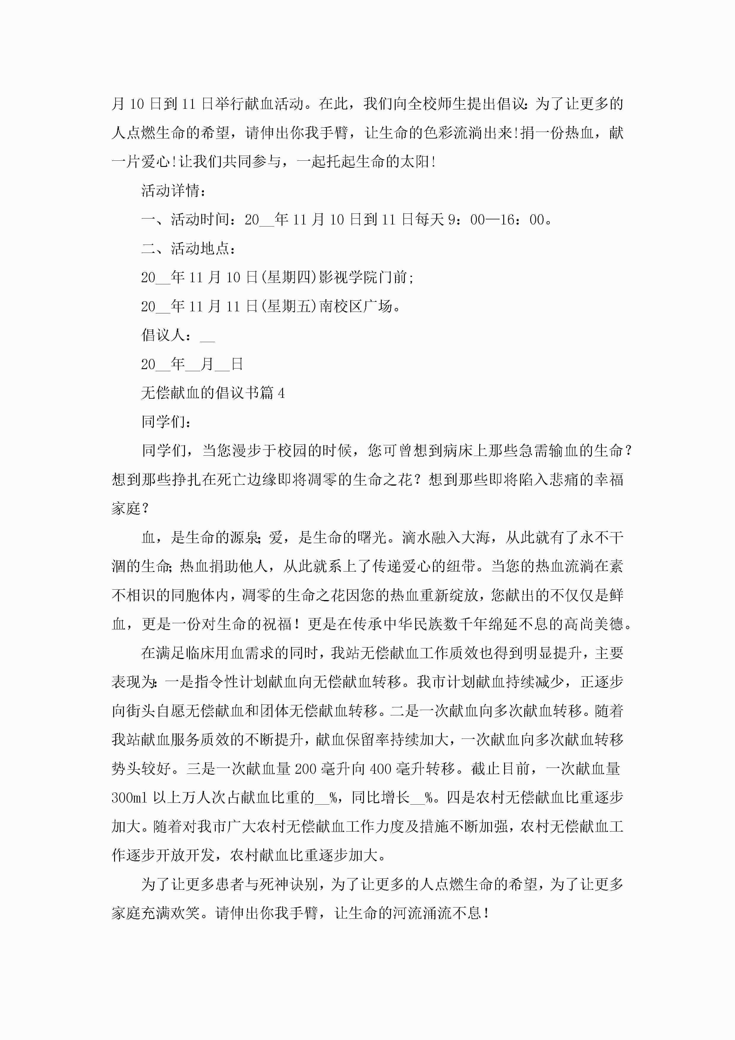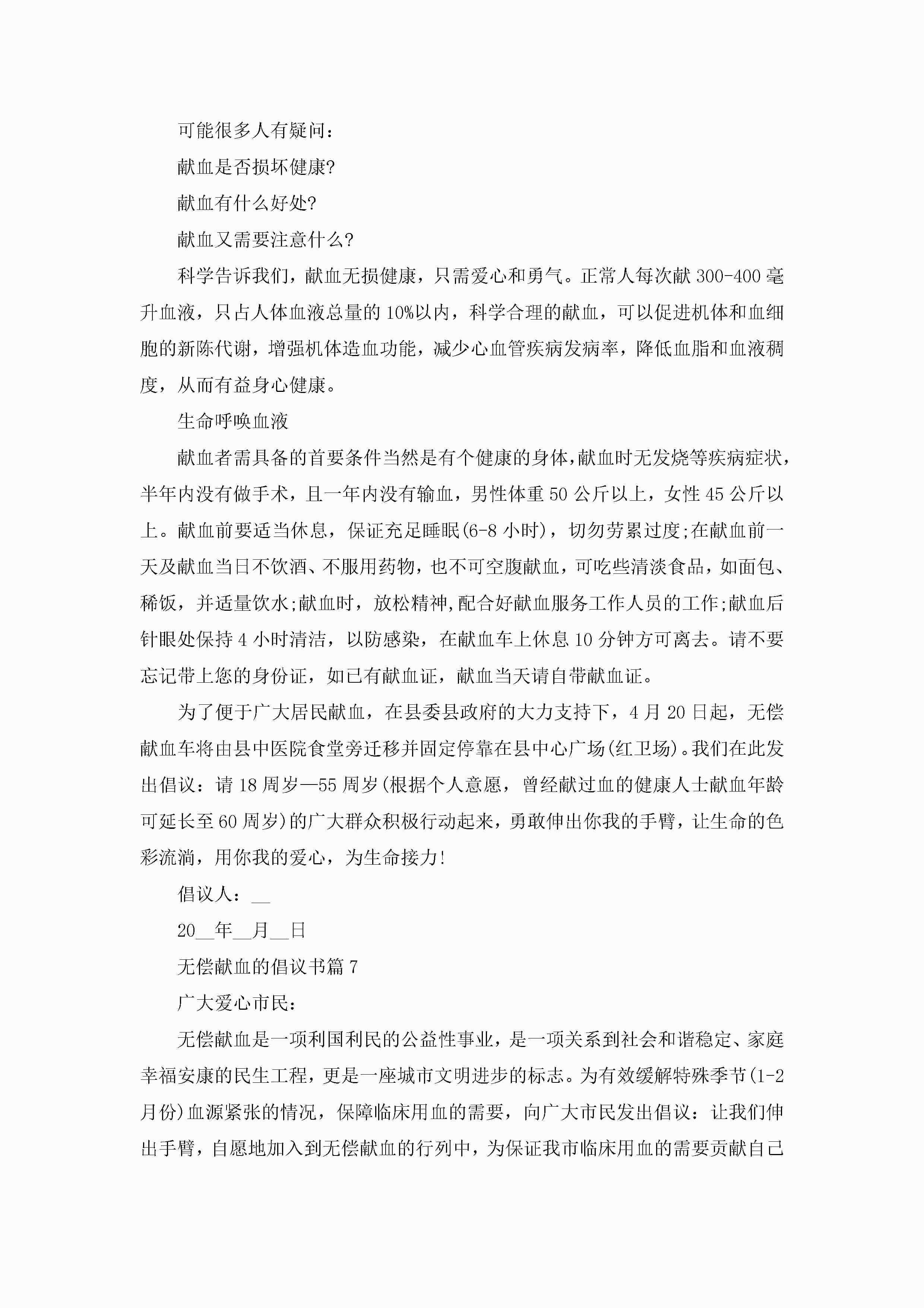 无偿献血的倡议书范文(7篇)jugei3月22日 16:29发布关注322 无偿献血的倡议书范文(7篇)此内容为付费资源,请付费后查看¥10.9 单篇文档限时特惠¥15个人会员开通企业会员开通立即下载无需登陆!可直接快捷下载单个模板付费资源© 版权声明THE ENDWord模板# 实用文档# 实用模板# 信函模板# 倡议书 如有问题,可点击最底部“联系我们”联系客服 分享QQ空间微博QQ好友海报分享复制链接收藏