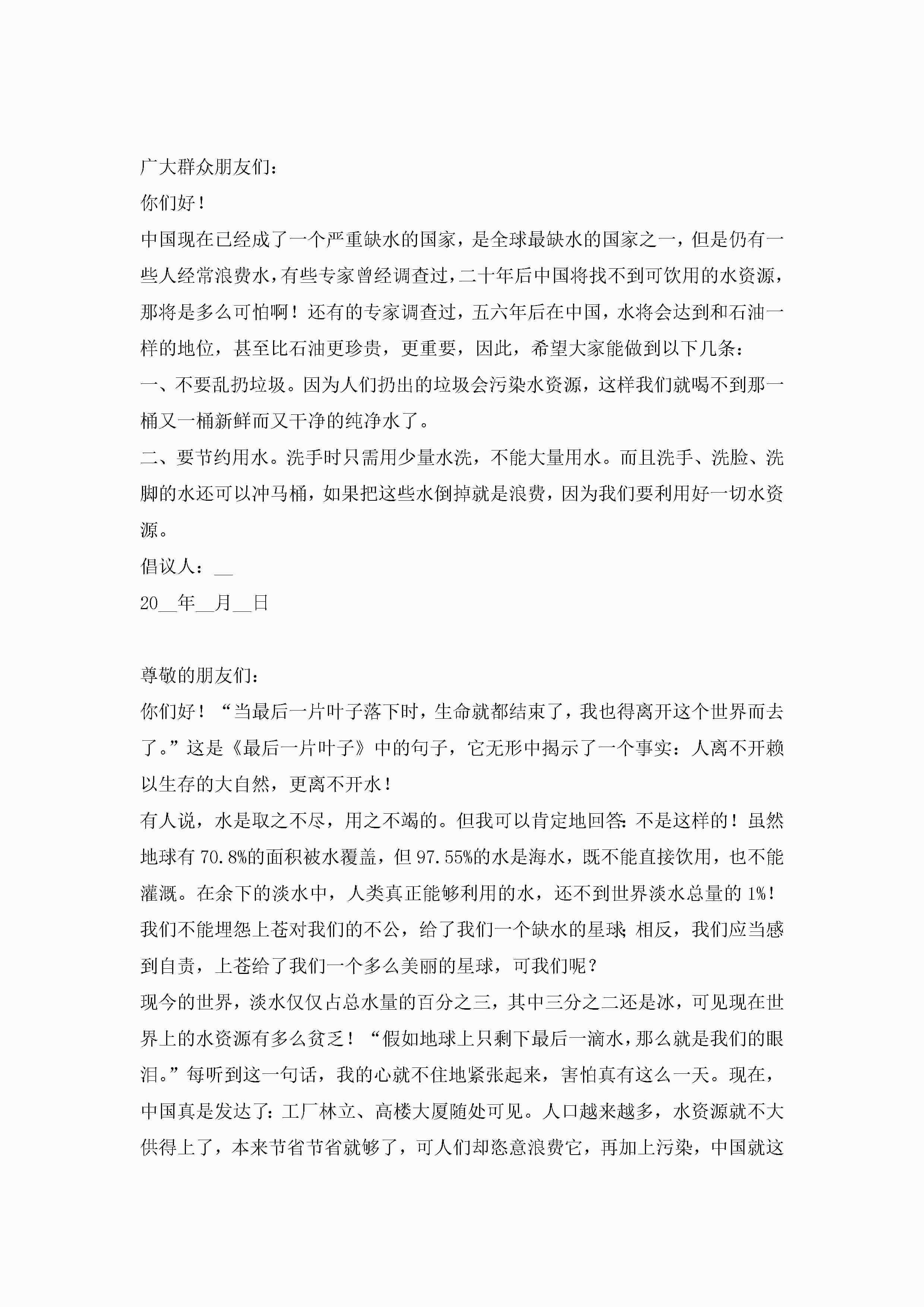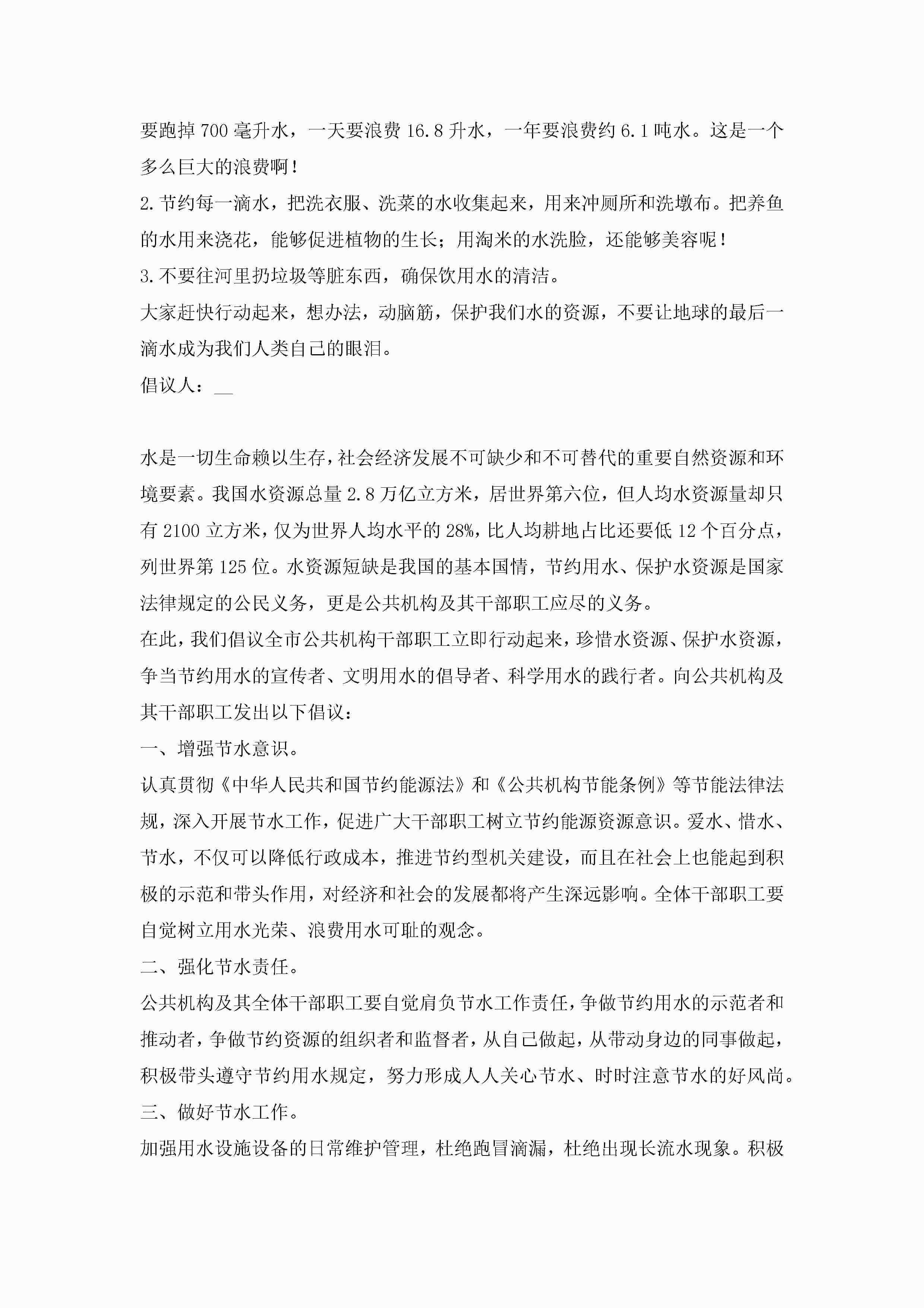 关于节约用水的倡议书范文简短(精选10篇)jugei3月22日 16:29发布关注207 关于节约用水的倡议书范文简短(精选10篇)此内容为付费资源,请付费后查看¥10.9 单篇文档限时特惠¥15个人会员开通企业会员开通立即下载无需登陆!可直接快捷下载单个模板付费资源© 版权声明THE ENDWord模板# 实用文档# 实用模板# 信函模板# 倡议书 如有问题,可点击最底部“联系我们”联系客服 分享QQ空间微博QQ好友海报分享复制链接收藏
