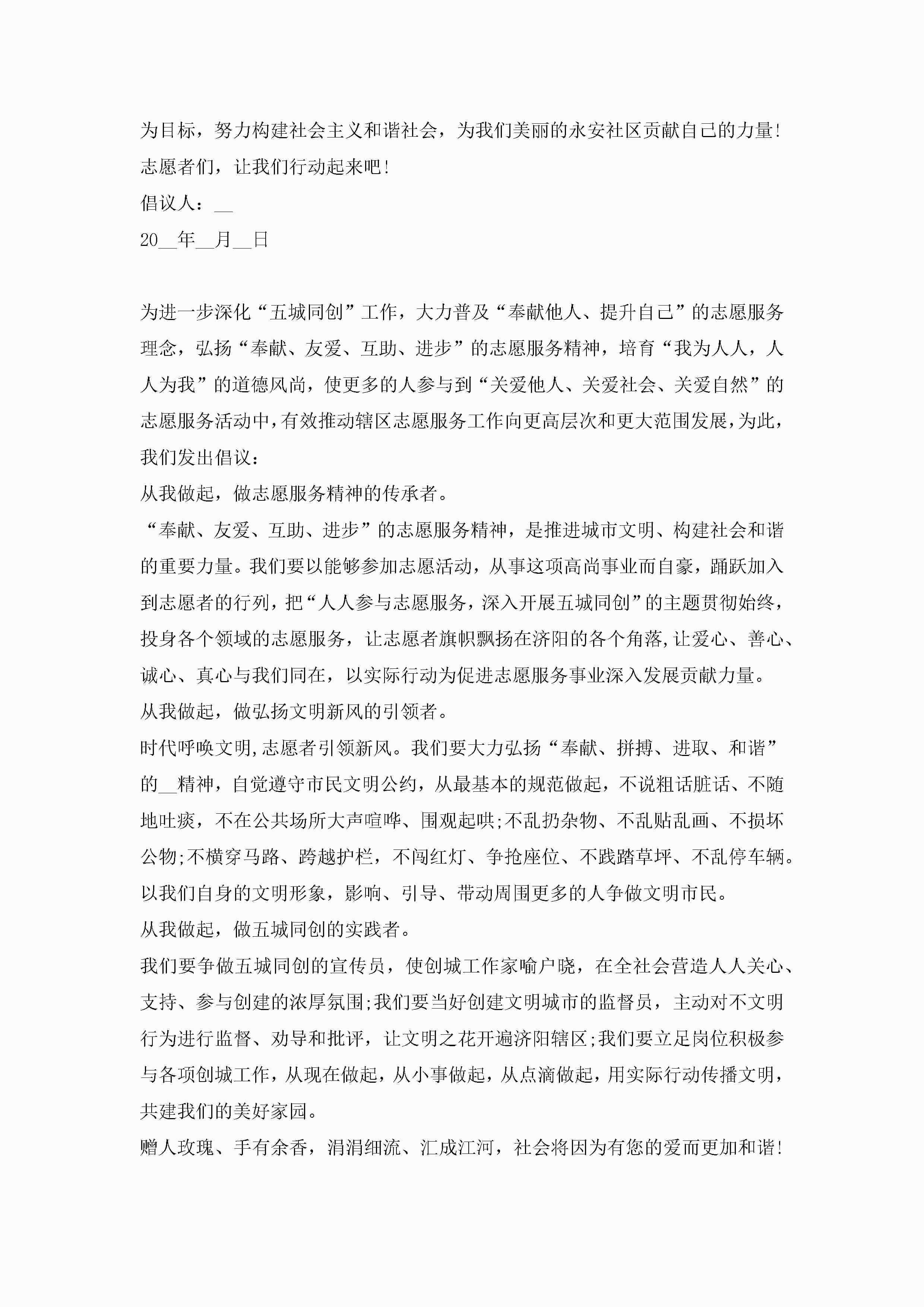 志愿者公益服务倡议书8篇jugei3月22日 16:29发布关注195 志愿者公益服务倡议书8篇此内容为付费资源,请付费后查看¥10.9 单篇文档限时特惠¥15个人会员开通企业会员开通立即下载无需登陆!可直接快捷下载单个模板付费资源© 版权声明THE ENDWord模板# 实用文档# 实用模板# 信函模板# 倡议书 如有问题,可点击最底部“联系我们”联系客服 分享QQ空间微博QQ好友海报分享复制链接收藏