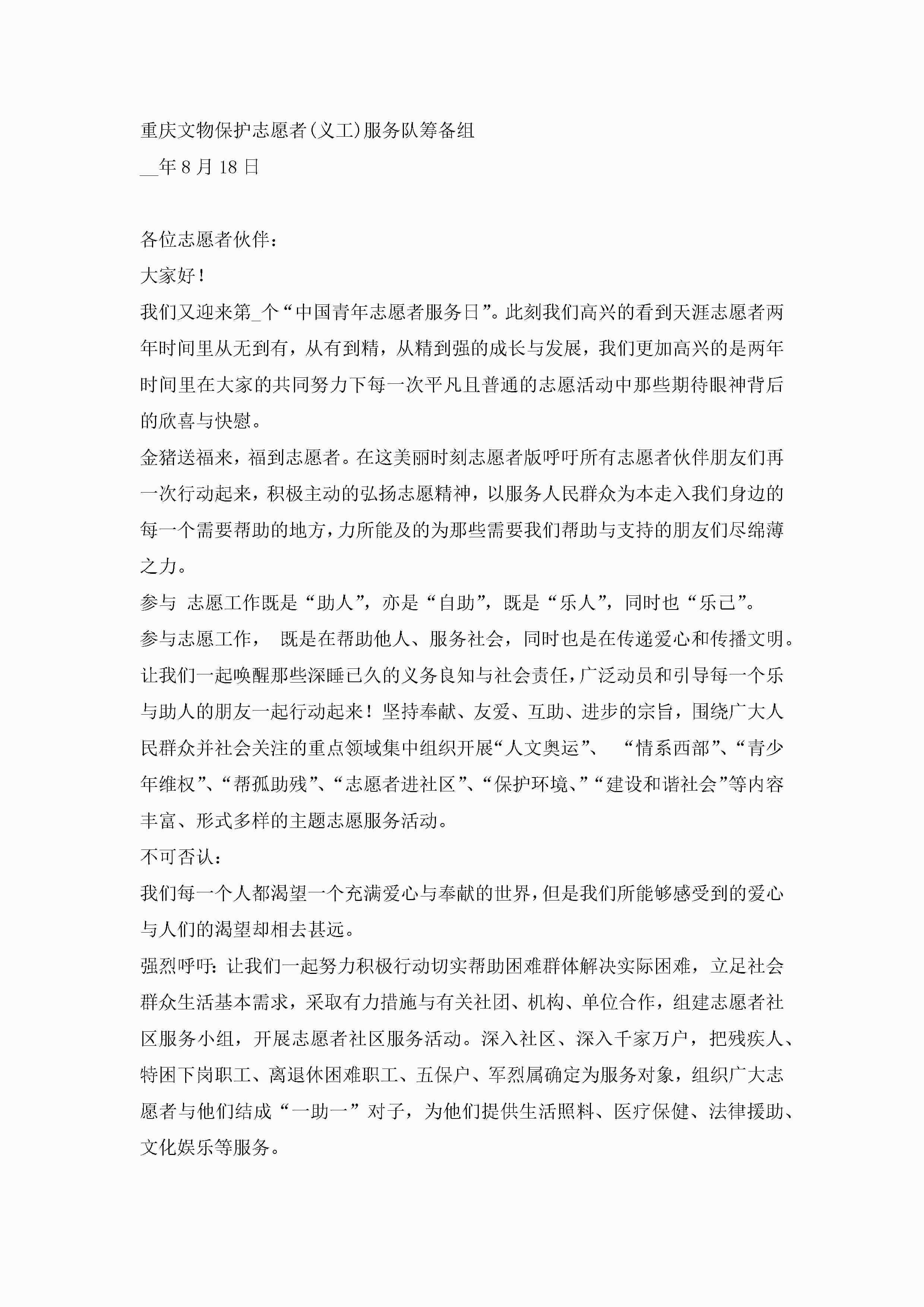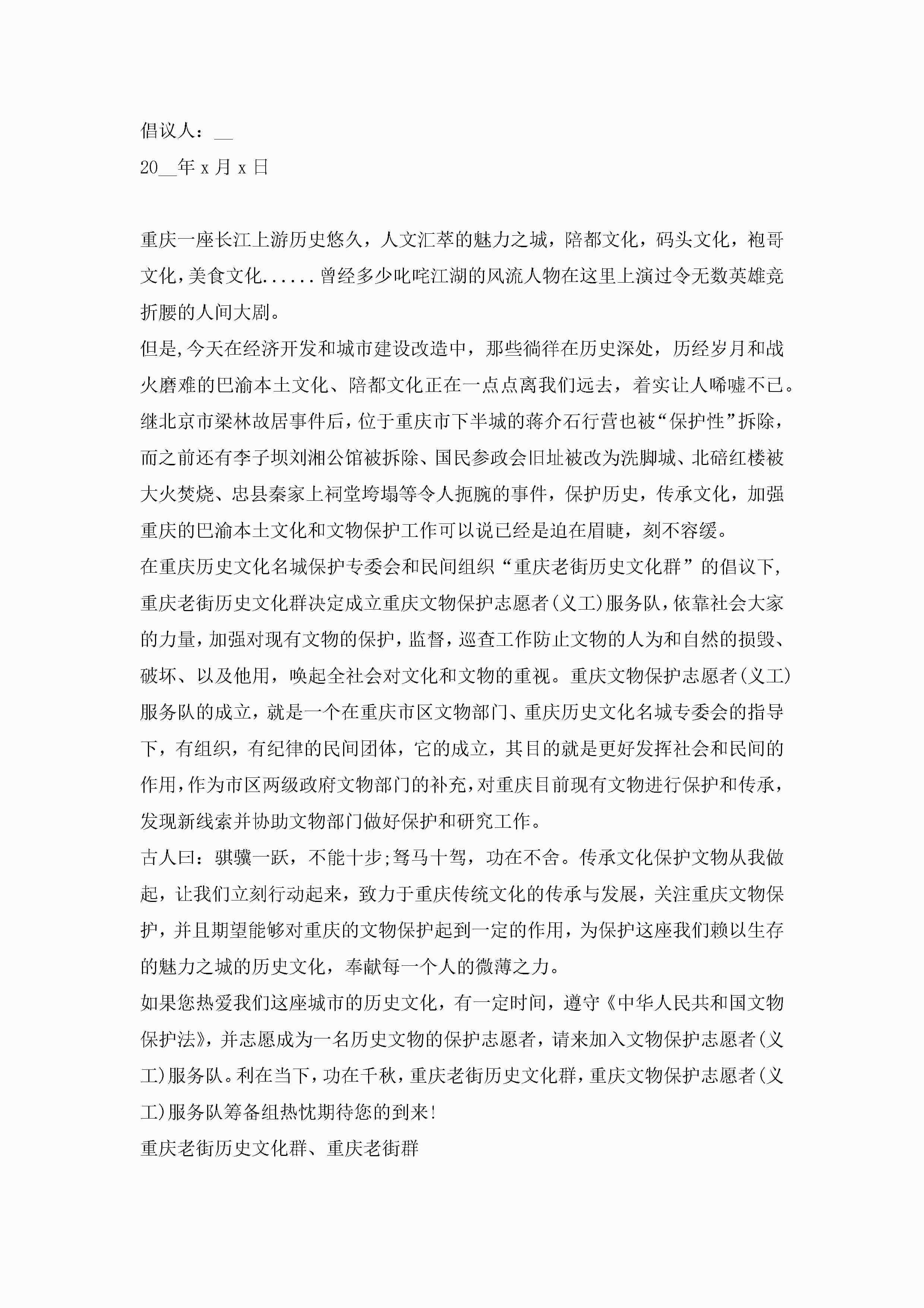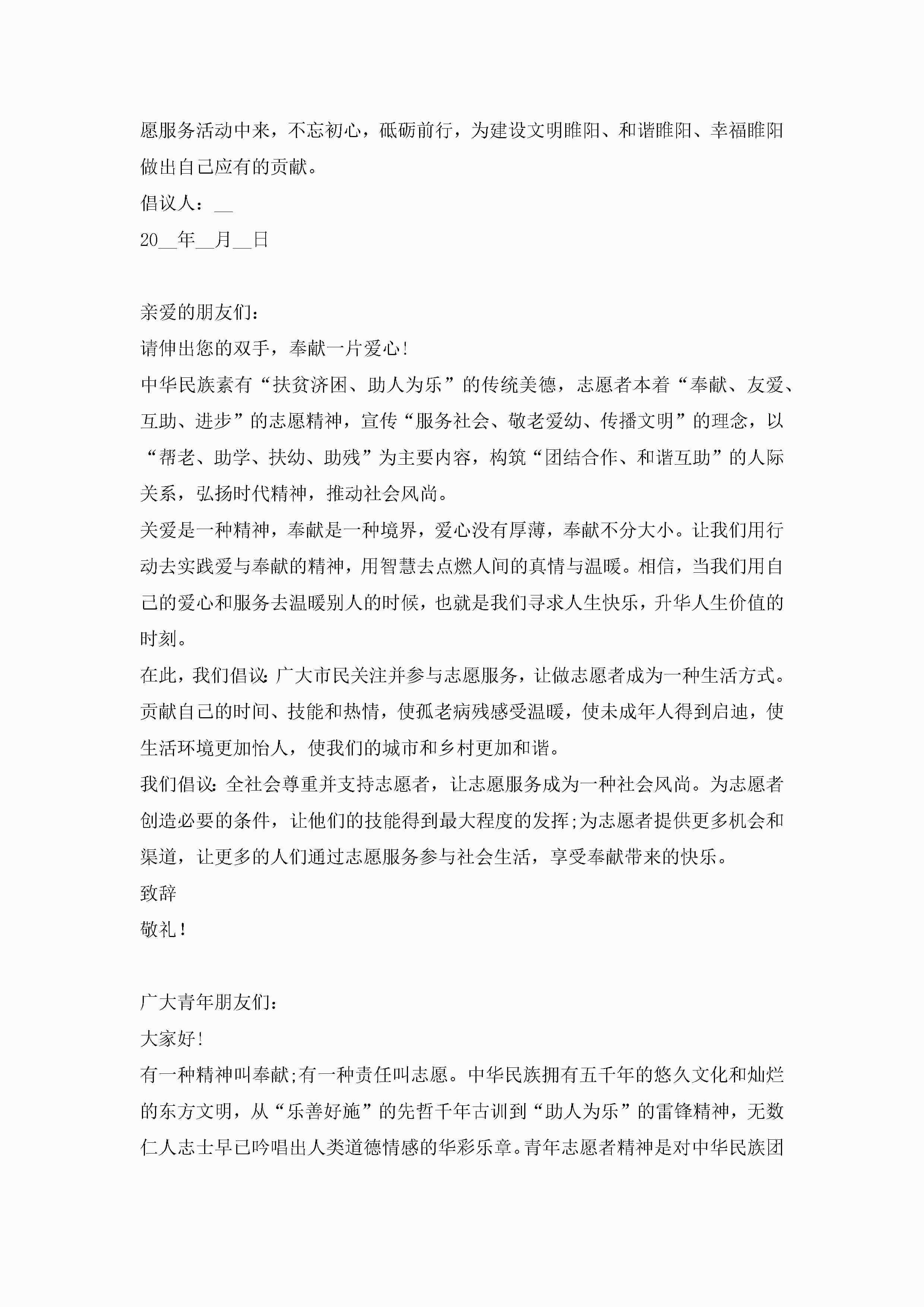 学雷锋志愿者服务倡议书8篇jugei3月22日 16:29发布关注218 学雷锋志愿者服务倡议书8篇此内容为付费资源,请付费后查看¥10.9 单篇文档限时特惠¥15个人会员开通企业会员开通立即下载无需登陆!可直接快捷下载单个模板付费资源© 版权声明THE ENDWord模板# 实用文档# 实用模板# 信函模板# 倡议书 如有问题,可点击最底部“联系我们”联系客服 分享QQ空间微博QQ好友海报分享复制链接收藏