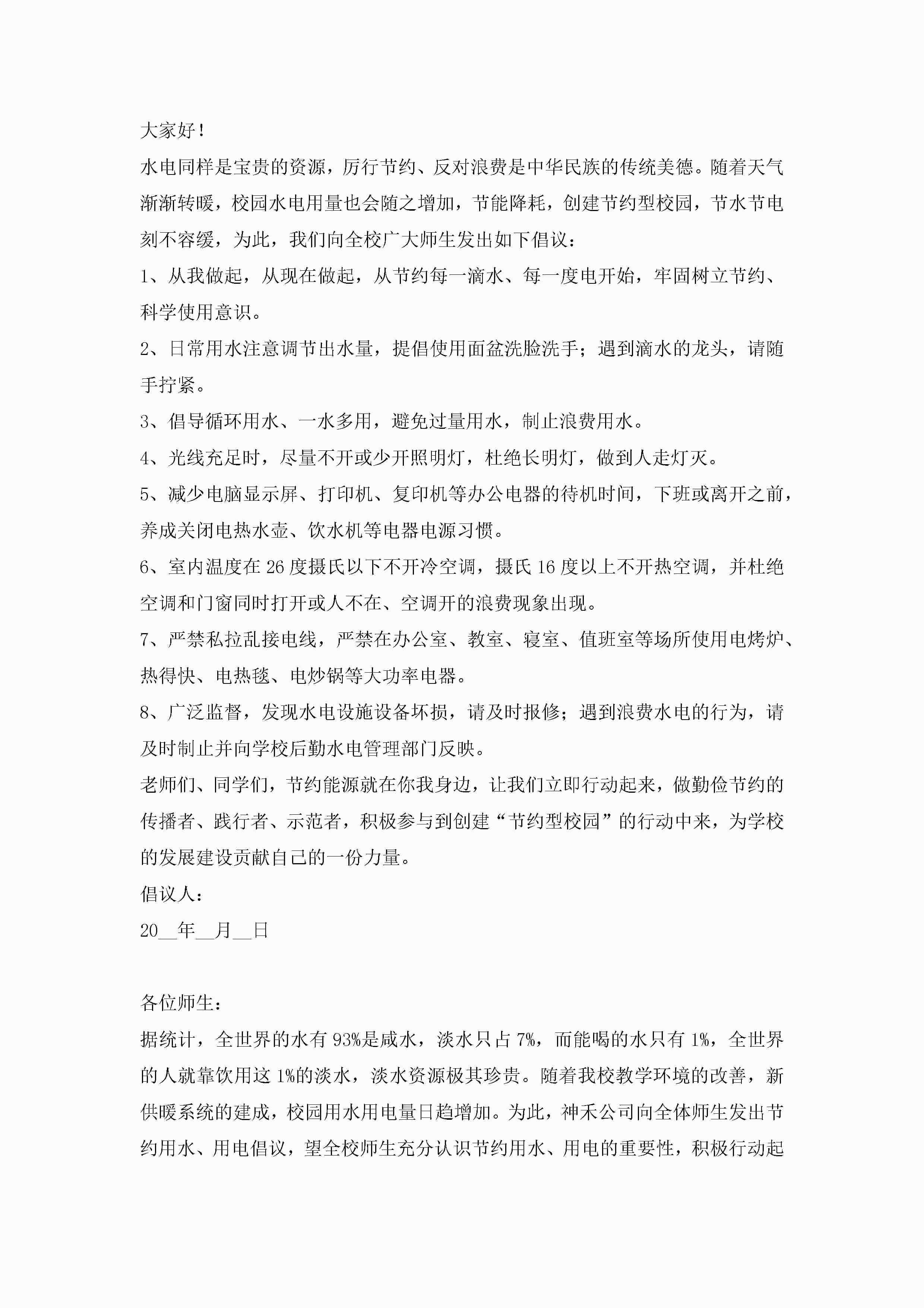节约用电优秀倡议书范文jugei3月22日 16:29发布关注192 节约用电优秀倡议书范文此内容为付费资源,请付费后查看¥10.9 单篇文档限时特惠¥15个人会员开通企业会员开通立即下载无需登陆!可直接快捷下载单个模板付费资源© 版权声明THE ENDWord模板# 实用文档# 实用模板# 信函模板# 倡议书 如有问题,可点击最底部“联系我们”联系客服 分享QQ空间微博QQ好友海报分享复制链接收藏