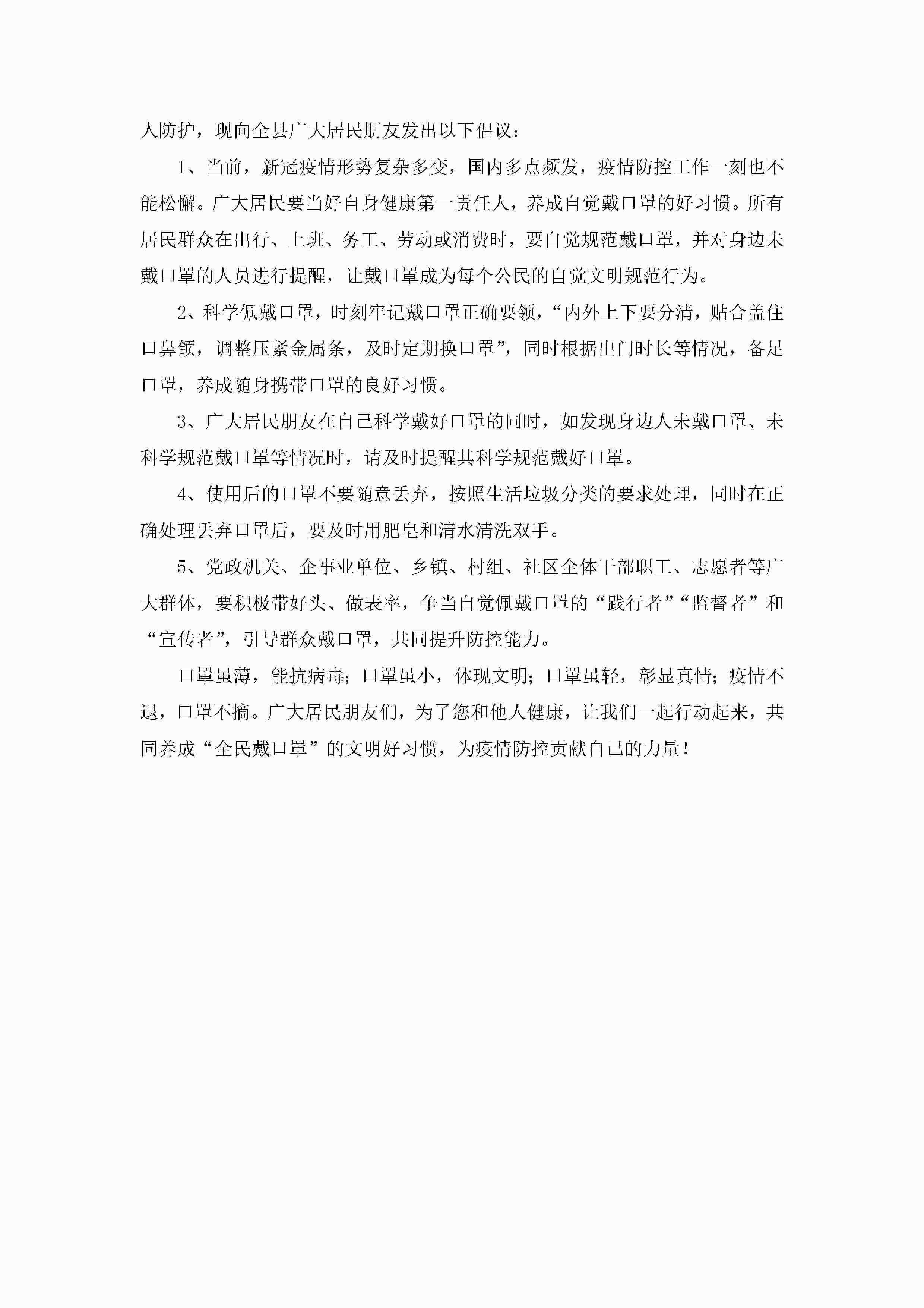 全民戴口罩文明的倡议书(五篇)jugei3月22日 16:29发布关注189 全民戴口罩文明的倡议书(五篇)此内容为付费资源,请付费后查看¥10.9 单篇文档限时特惠¥15个人会员开通企业会员开通立即下载无需登陆!可直接快捷下载单个模板付费资源© 版权声明THE ENDWord模板# 实用文档# 实用模板# 信函模板# 倡议书 如有问题,可点击最底部“联系我们”联系客服 分享QQ空间微博QQ好友海报分享复制链接收藏