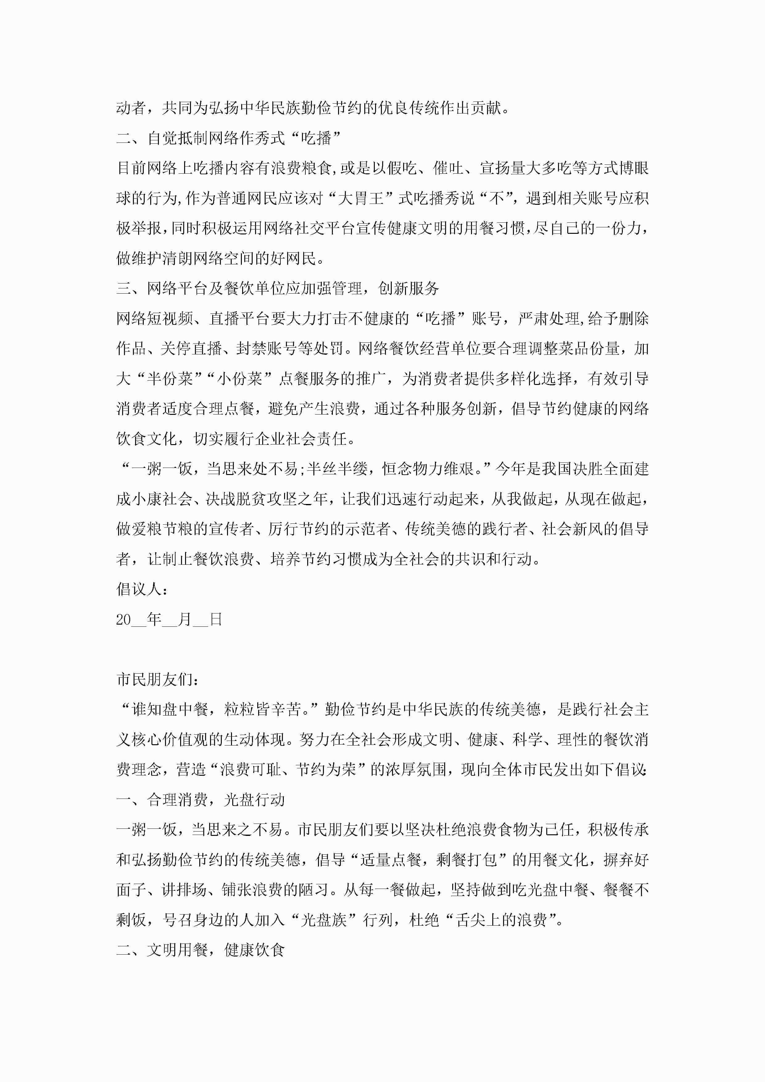 拒绝餐桌上的浪费倡议书【五篇】jugei3月22日 16:29发布关注245 拒绝餐桌上的浪费倡议书【五篇】此内容为付费资源,请付费后查看¥10.9 单篇文档限时特惠¥15个人会员开通企业会员开通立即下载无需登陆!可直接快捷下载单个模板付费资源© 版权声明THE ENDWord模板# 实用文档# 实用模板# 信函模板# 倡议书 如有问题,可点击最底部“联系我们”联系客服 分享QQ空间微博QQ好友海报分享复制链接收藏