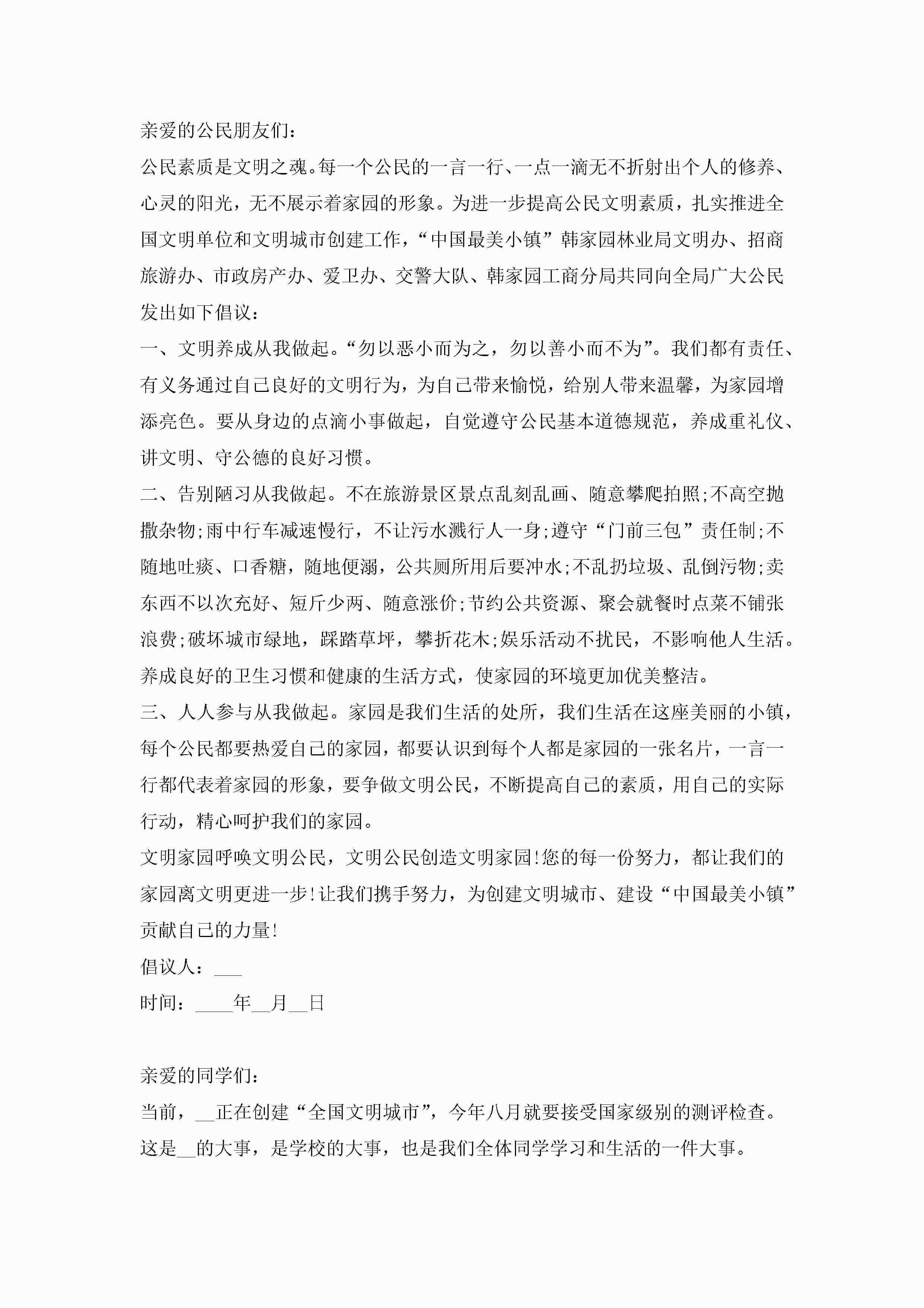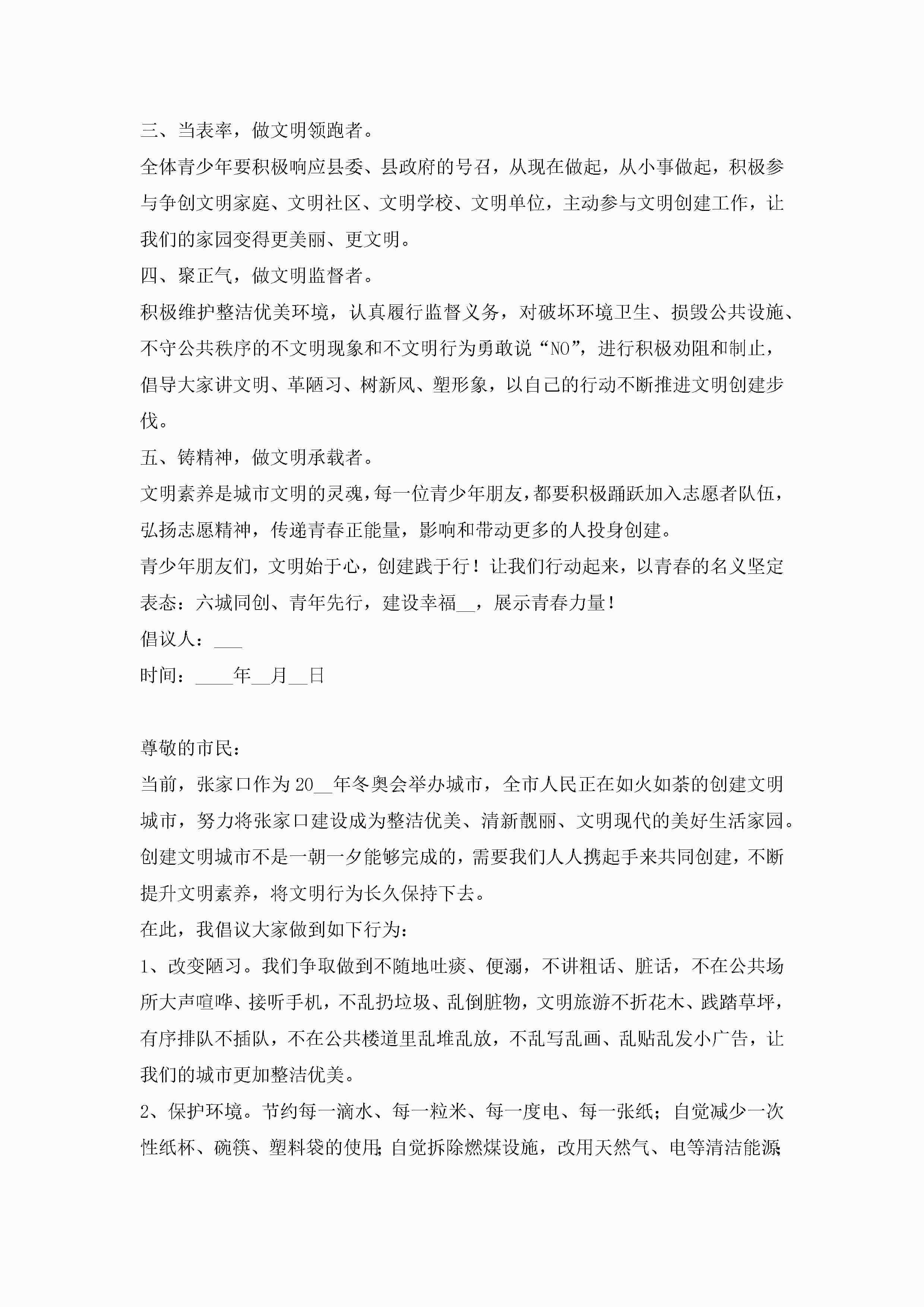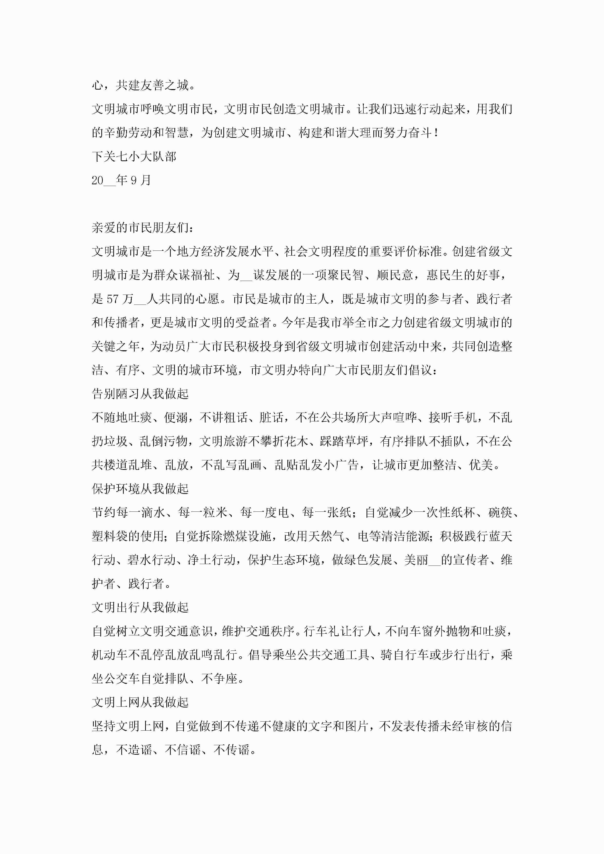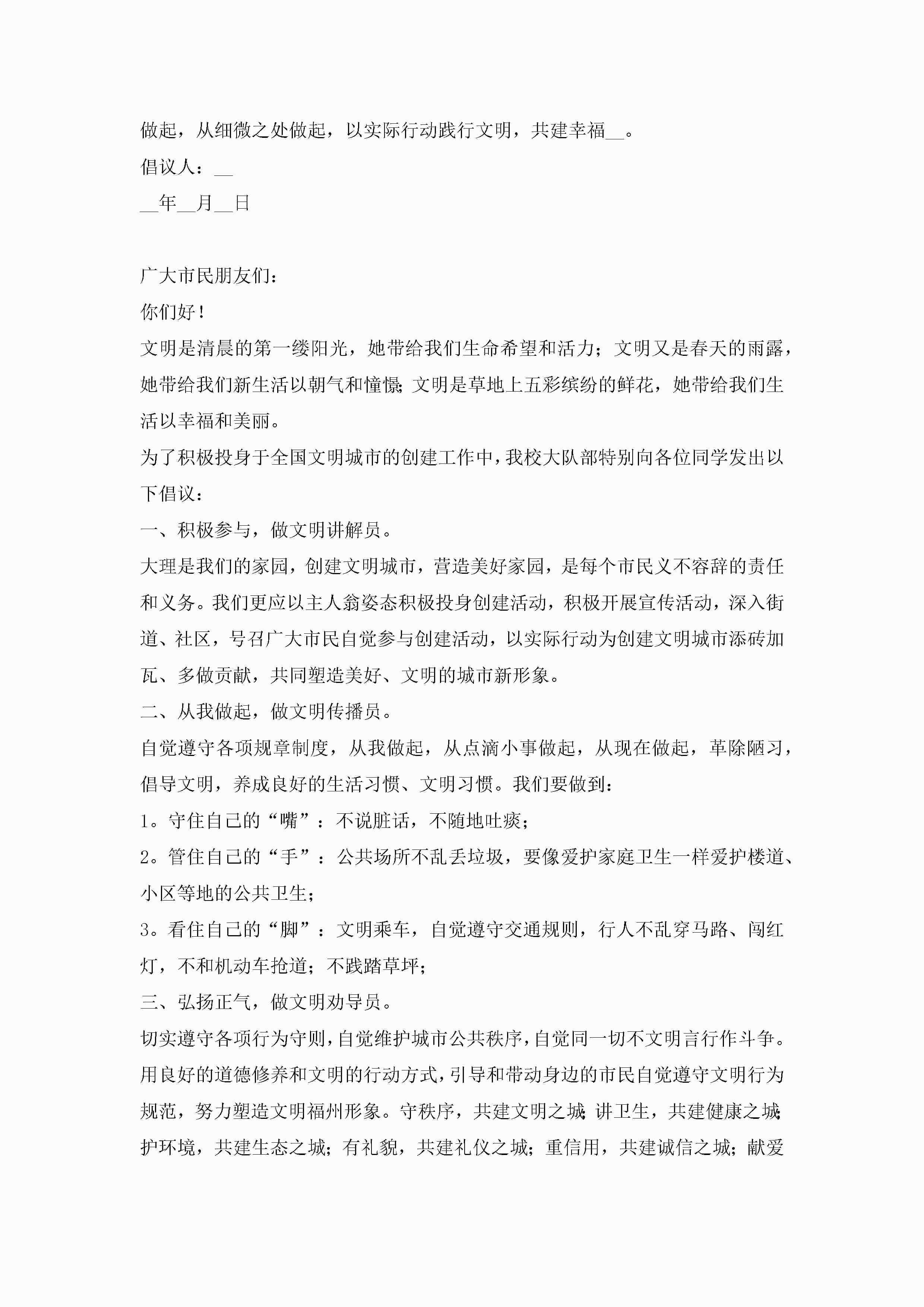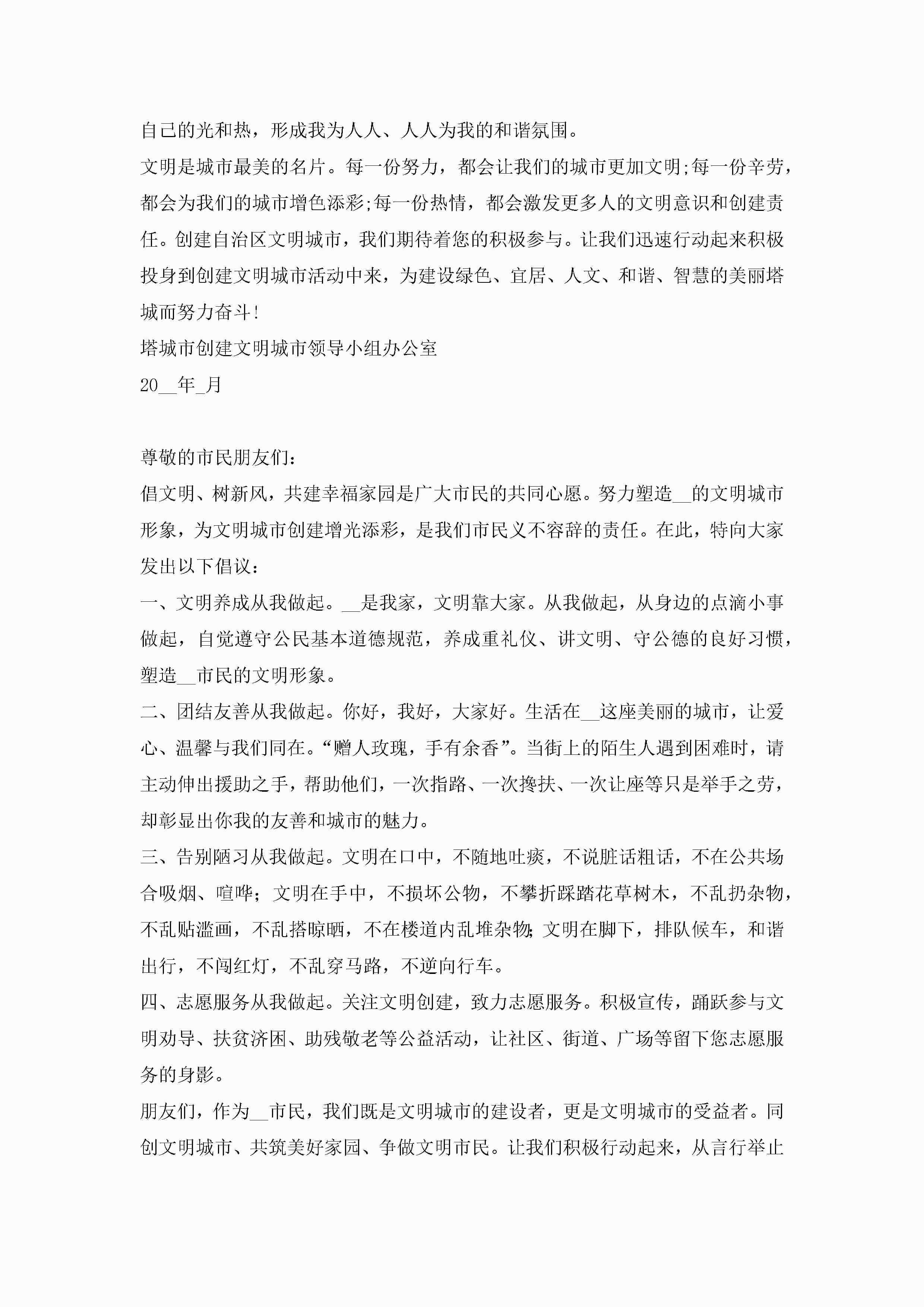 关于创建文明城市倡议书范文(精选10篇)jugei3月22日 16:29发布关注307 关于创建文明城市倡议书范文(精选10篇)此内容为付费资源,请付费后查看¥10.9 单篇文档限时特惠¥15个人会员开通企业会员开通立即下载无需登陆!可直接快捷下载单个模板付费资源© 版权声明THE ENDWord模板# 实用文档# 实用模板# 信函模板# 倡议书 如有问题,可点击最底部“联系我们”联系客服 分享QQ空间微博QQ好友海报分享复制链接收藏