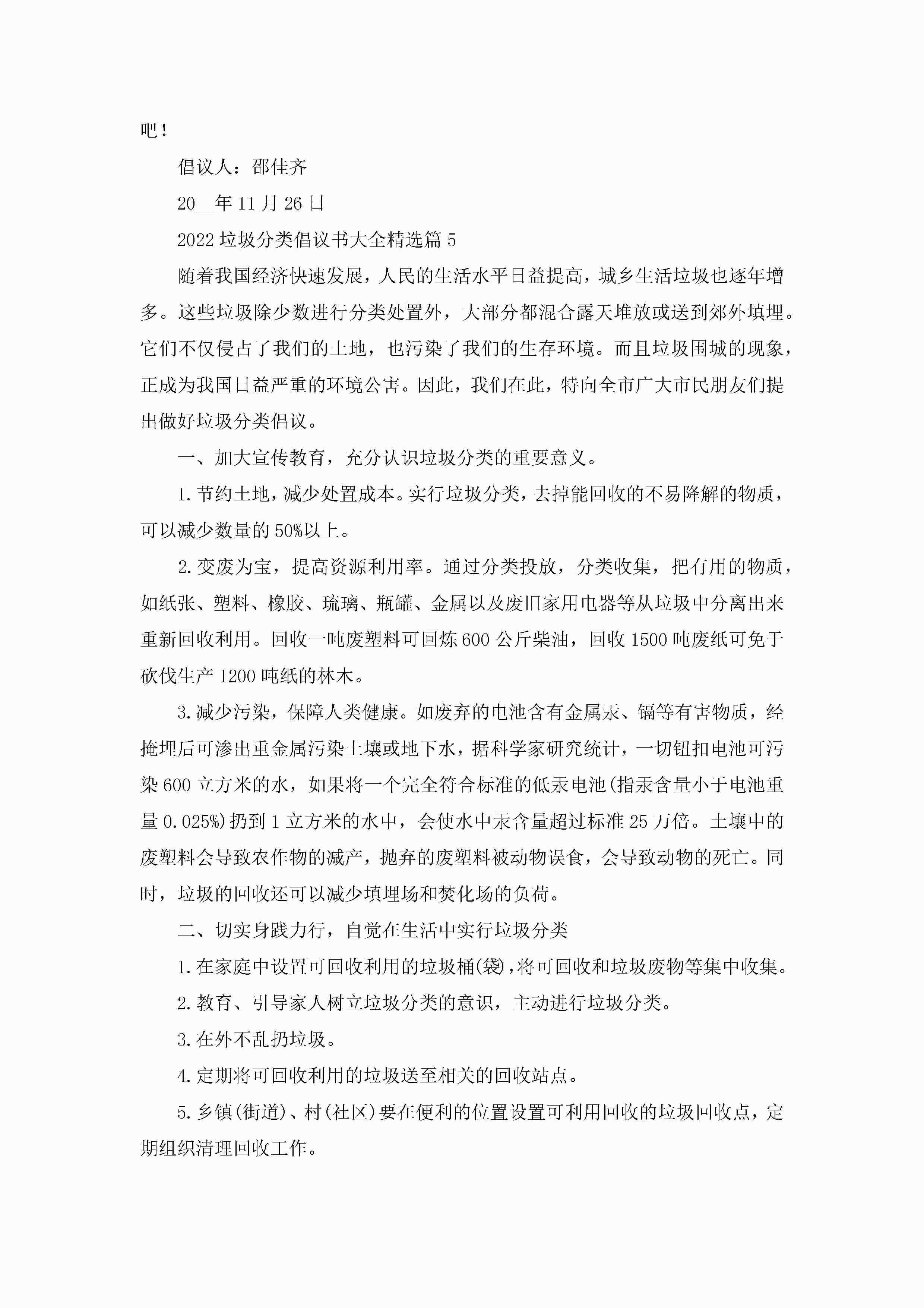 2022垃圾分类倡议书大全(精选10篇)jugei3月22日 16:29发布关注251 2022垃圾分类倡议书大全(精选10篇)此内容为付费资源,请付费后查看¥10.9 单篇文档限时特惠¥15个人会员开通企业会员开通立即下载无需登陆!可直接快捷下载单个模板付费资源© 版权声明THE ENDWord模板# 实用文档# 实用模板# 信函模板# 倡议书 如有问题,可点击最底部“联系我们”联系客服 分享QQ空间微博QQ好友海报分享复制链接收藏