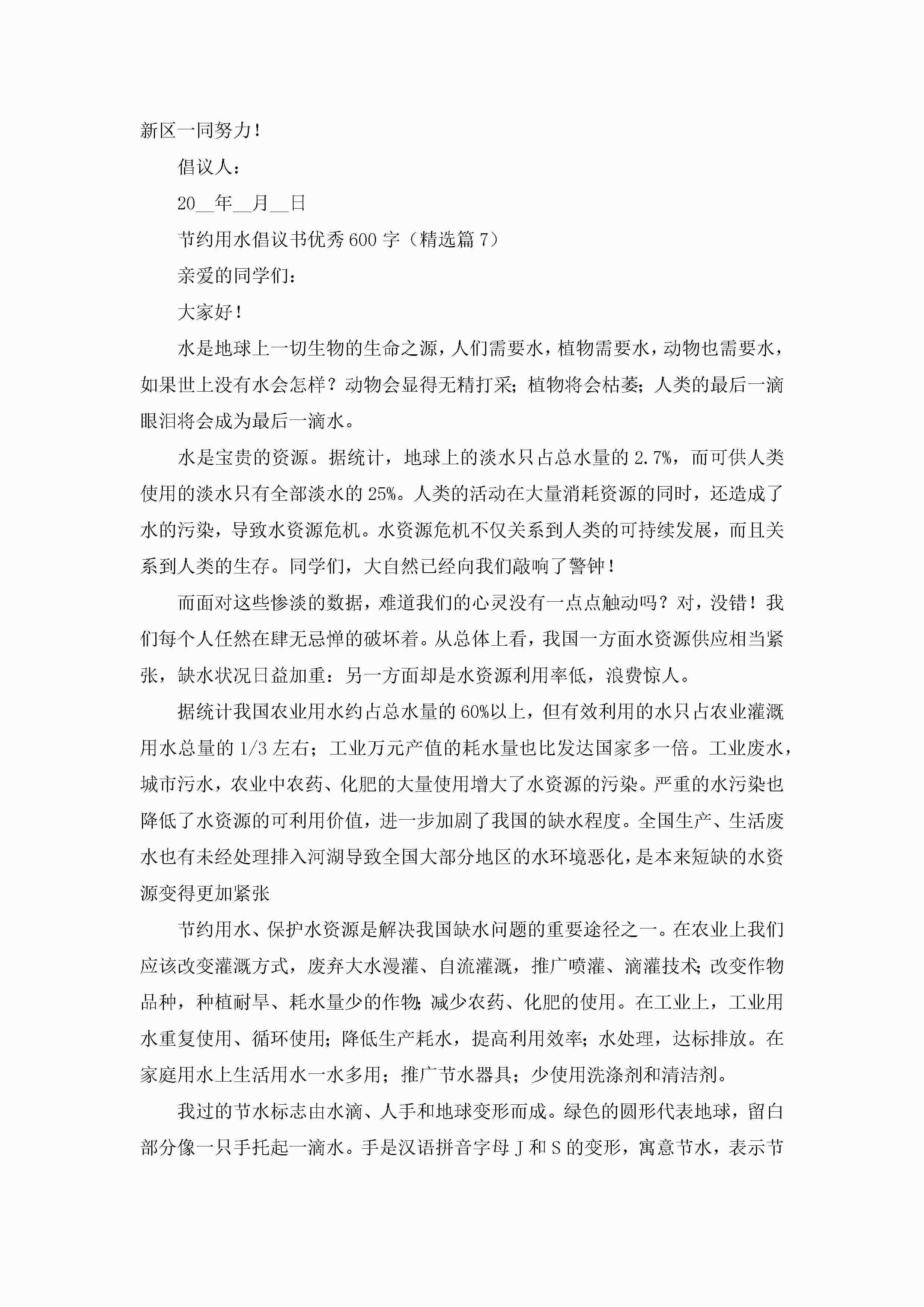 节约用水倡议书优秀600字7篇jugei3月22日 16:29发布关注251 节约用水倡议书优秀600字7篇此内容为付费资源,请付费后查看¥10.9 单篇文档限时特惠¥15个人会员开通企业会员开通立即下载无需登陆!可直接快捷下载单个模板付费资源© 版权声明THE ENDWord模板# 实用文档# 实用模板# 信函模板# 倡议书 如有问题,可点击最底部“联系我们”联系客服 分享QQ空间微博QQ好友海报分享复制链接收藏