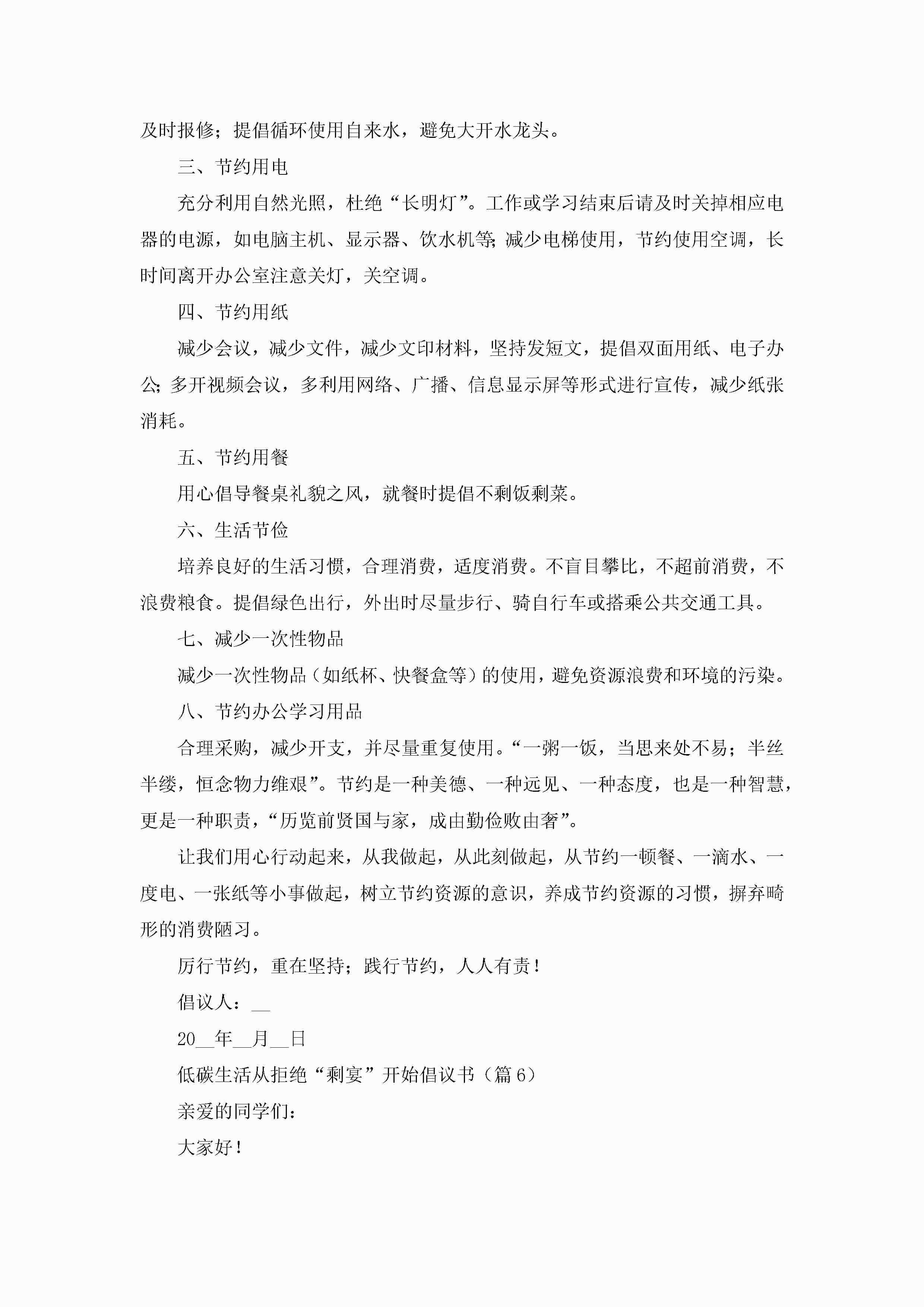 低碳生活从拒绝“剩宴”开始倡议书模板(精选7篇)jugei3月22日 16:29发布关注342 低碳生活从拒绝“剩宴”开始倡议书模板(精选7篇)此内容为付费资源,请付费后查看¥10.9 单篇文档限时特惠¥15个人会员开通企业会员开通立即下载无需登陆!可直接快捷下载单个模板付费资源© 版权声明THE ENDWord模板# 实用文档# 实用模板# 信函模板# 倡议书 如有问题,可点击最底部“联系我们”联系客服 分享QQ空间微博QQ好友海报分享复制链接收藏