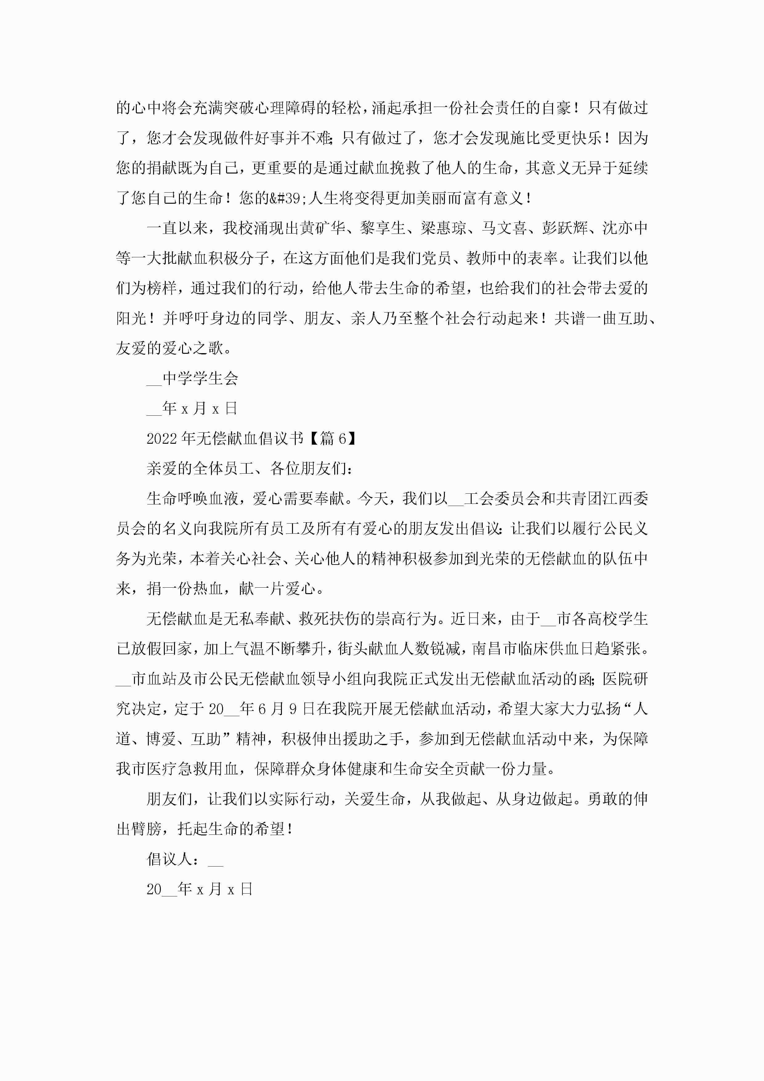 2022年无偿献血倡议书【6篇】jugei3月22日 16:29发布关注228 2022年无偿献血倡议书【6篇】此内容为付费资源,请付费后查看¥10.9 单篇文档限时特惠¥15个人会员开通企业会员开通立即下载无需登陆!可直接快捷下载单个模板付费资源© 版权声明THE ENDWord模板# 实用文档# 实用模板# 信函模板# 倡议书 如有问题,可点击最底部“联系我们”联系客服 分享QQ空间微博QQ好友海报分享复制链接收藏