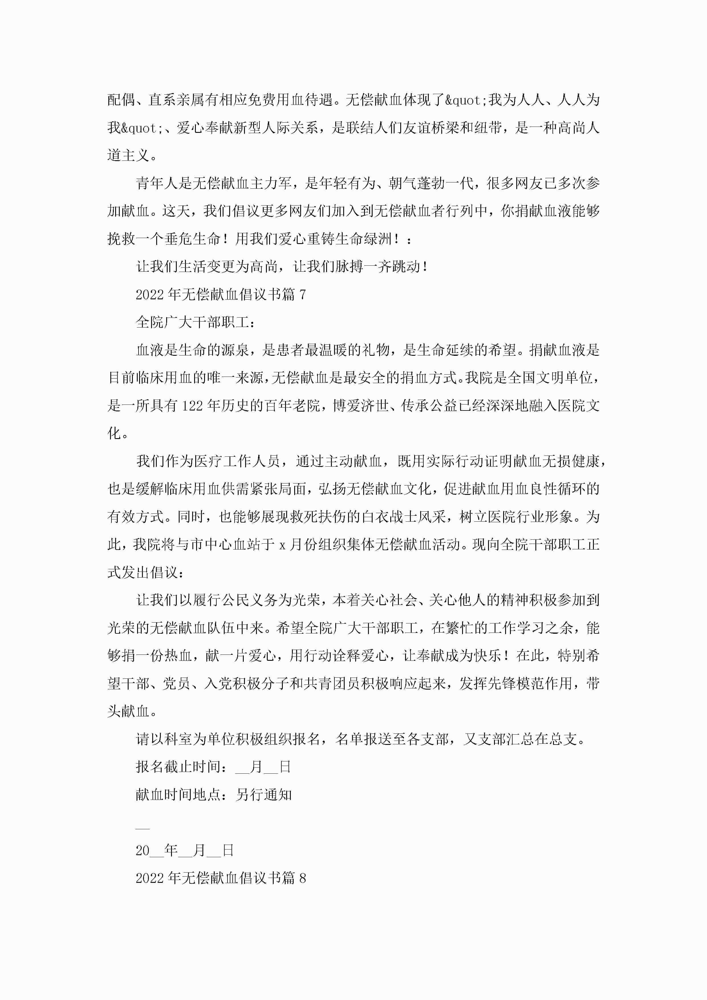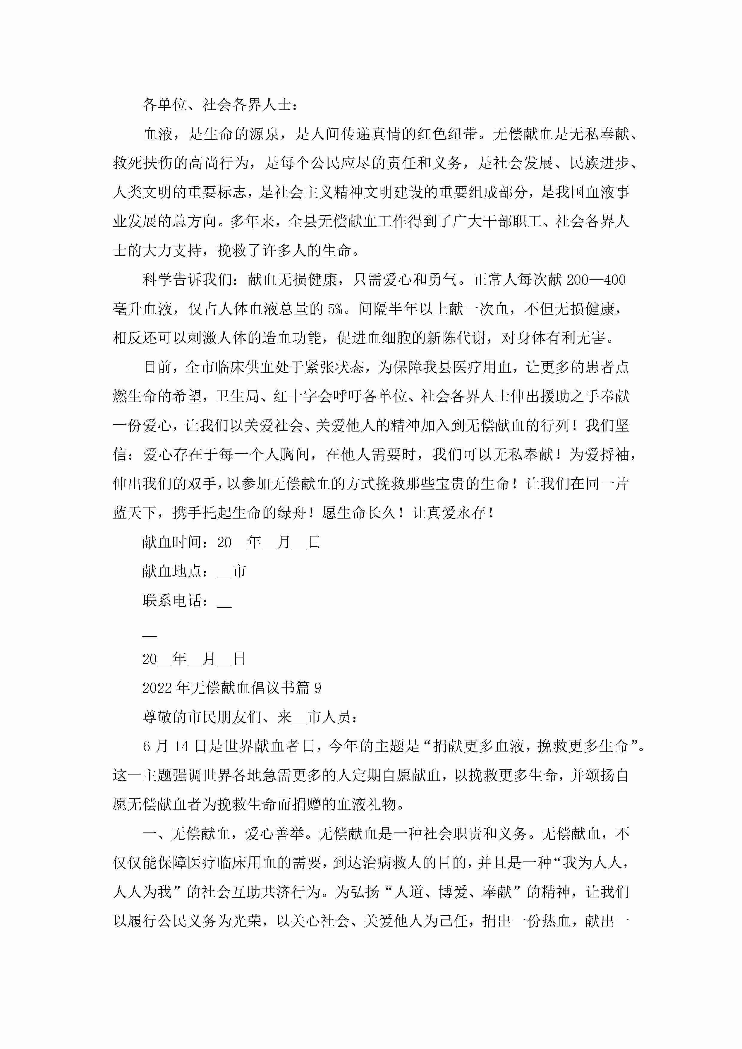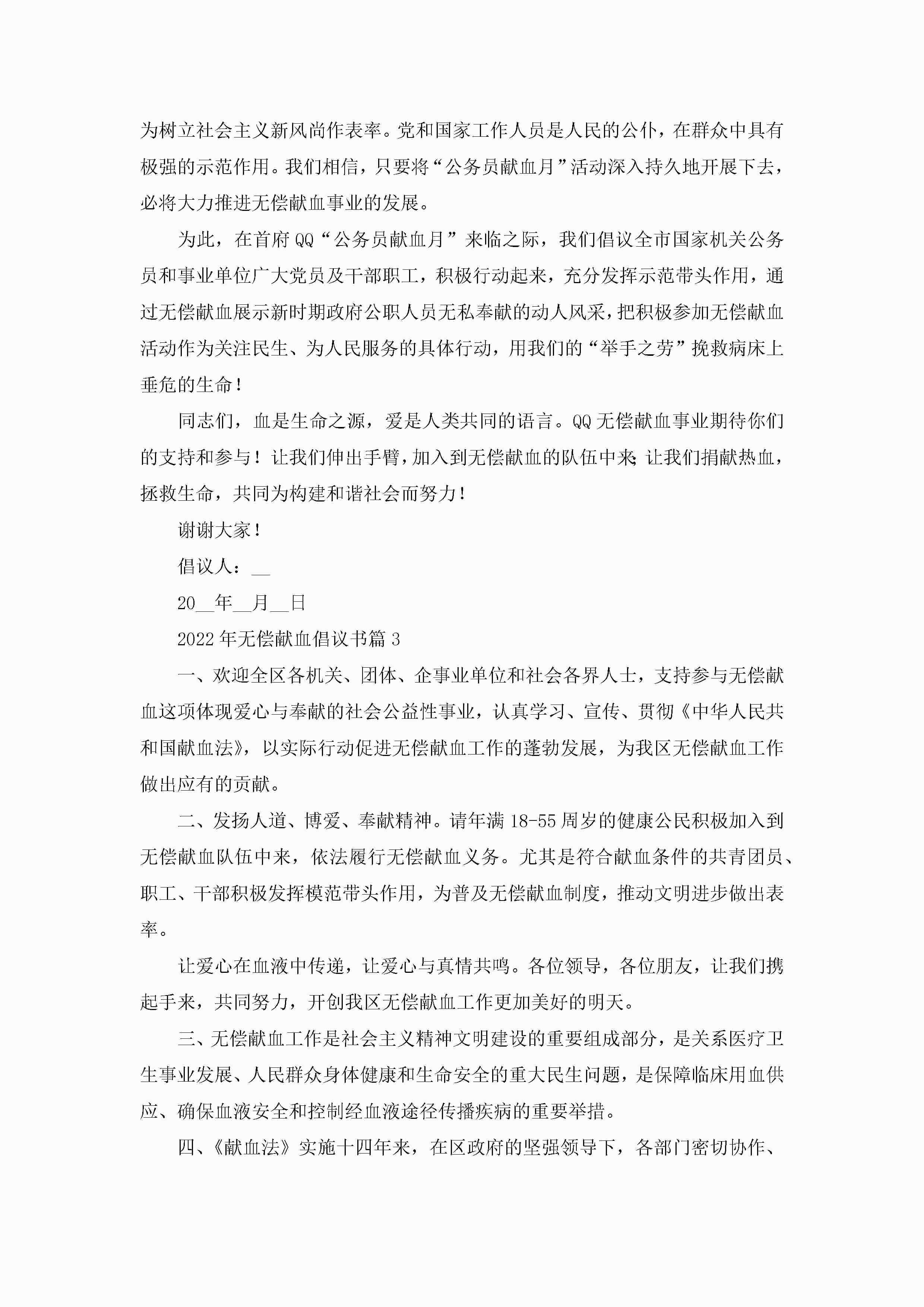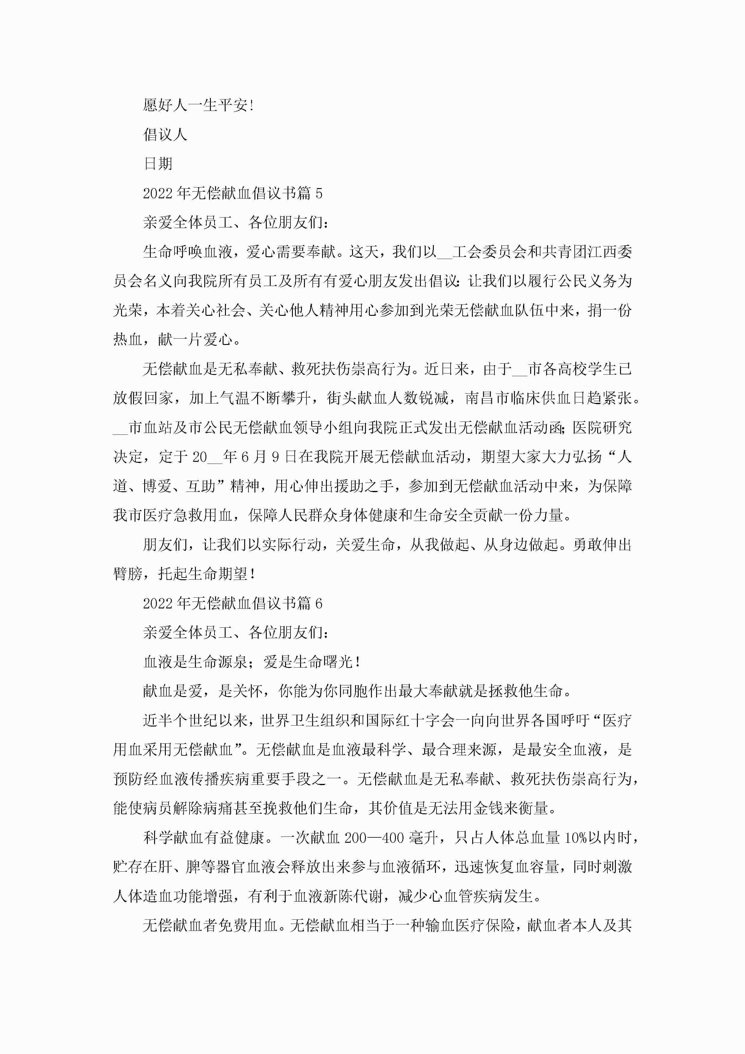 2022年无偿献血倡议书【9篇】jugei3月22日 16:29发布关注394 2022年无偿献血倡议书【9篇】此内容为付费资源,请付费后查看¥10.9 单篇文档限时特惠¥15个人会员开通企业会员开通立即下载无需登陆!可直接快捷下载单个模板付费资源© 版权声明THE ENDWord模板# 实用文档# 实用模板# 信函模板# 倡议书 如有问题,可点击最底部“联系我们”联系客服 分享QQ空间微博QQ好友海报分享复制链接收藏