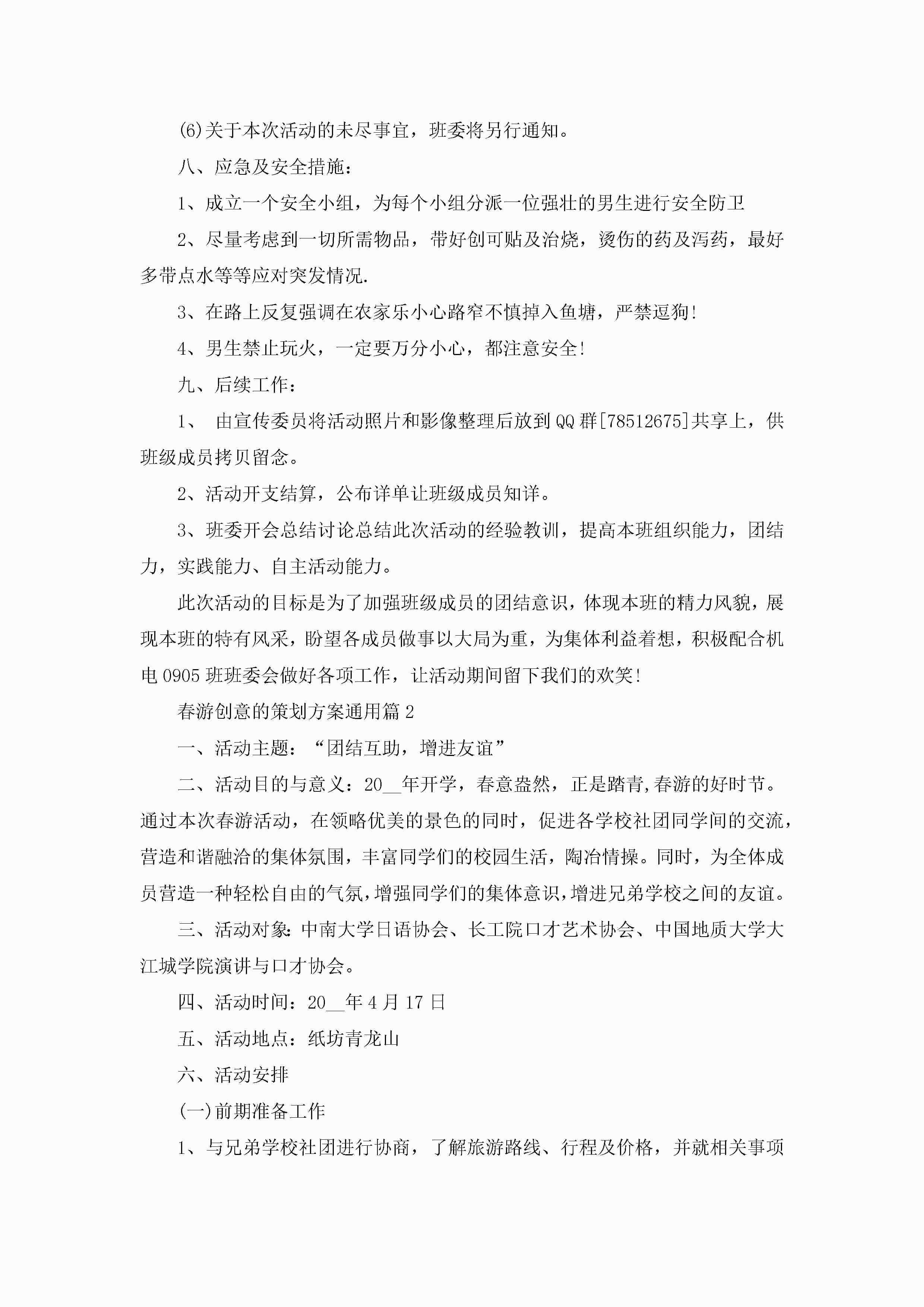 春游创意的策划方案(通用5篇)jugei3月23日 01:34发布关注196 春游创意的策划方案(通用5篇)此内容为付费资源,请付费后查看¥10.9 单篇文档限时特惠¥15个人会员开通企业会员开通立即下载无需登陆!可直接快捷下载单个模板付费资源© 版权声明THE ENDWord模板# 实用文档# 策划书# 策划方案# 春游创意的策划方案通用 如有问题,可点击最底部“联系我们”联系客服 分享QQ空间微博QQ好友海报分享复制链接收藏
