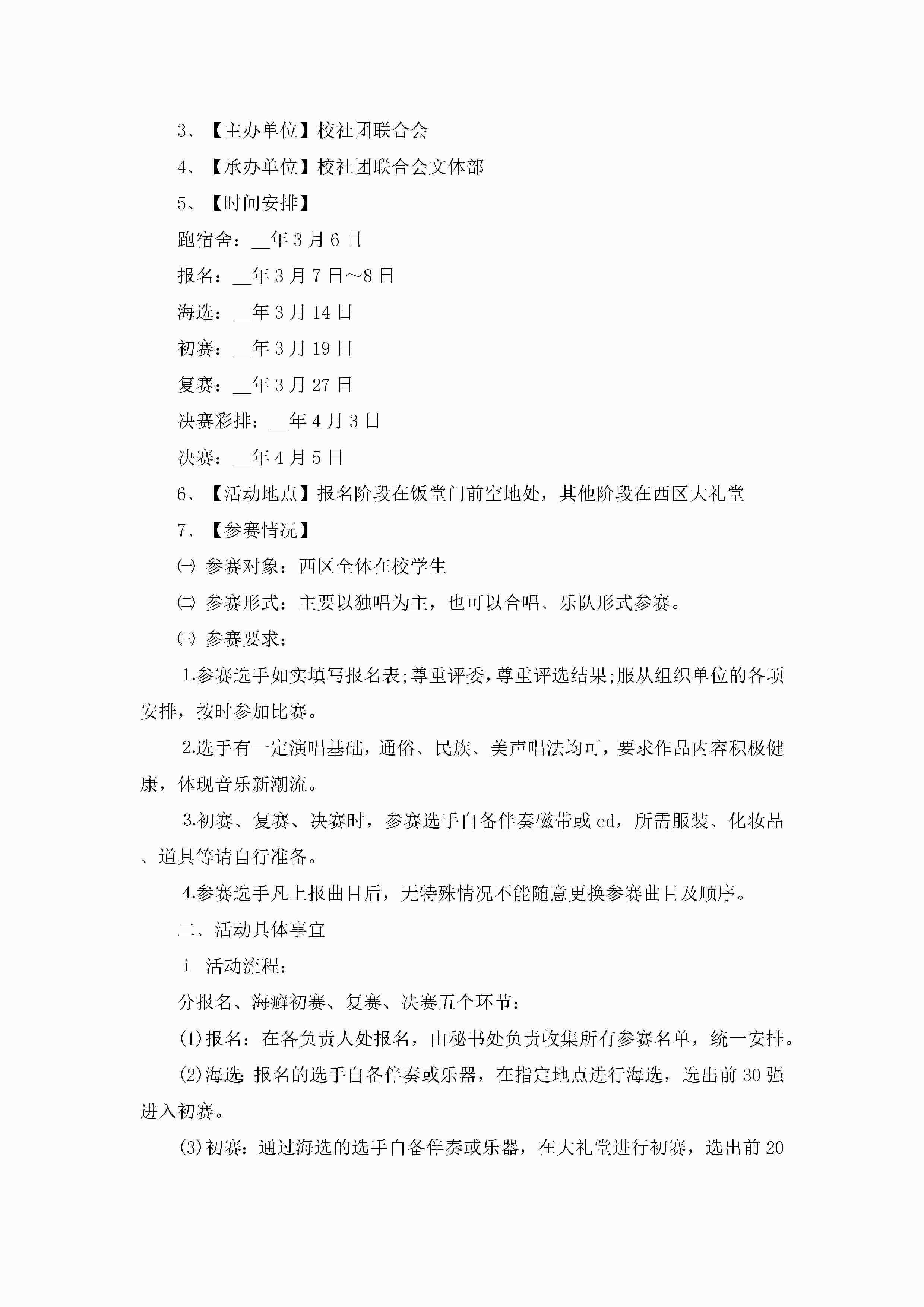 校园十大歌手大赛策划方案范文5篇jugei3月23日 01:34发布关注266 校园十大歌手大赛策划方案范文5篇此内容为付费资源,请付费后查看¥10.9 单篇文档限时特惠¥15个人会员开通企业会员开通立即下载无需登陆!可直接快捷下载单个模板付费资源© 版权声明THE ENDWord模板# 实用文档# 策划书# 工作文档# 策划方案 如有问题,可点击最底部“联系我们”联系客服 分享QQ空间微博QQ好友海报分享复制链接收藏