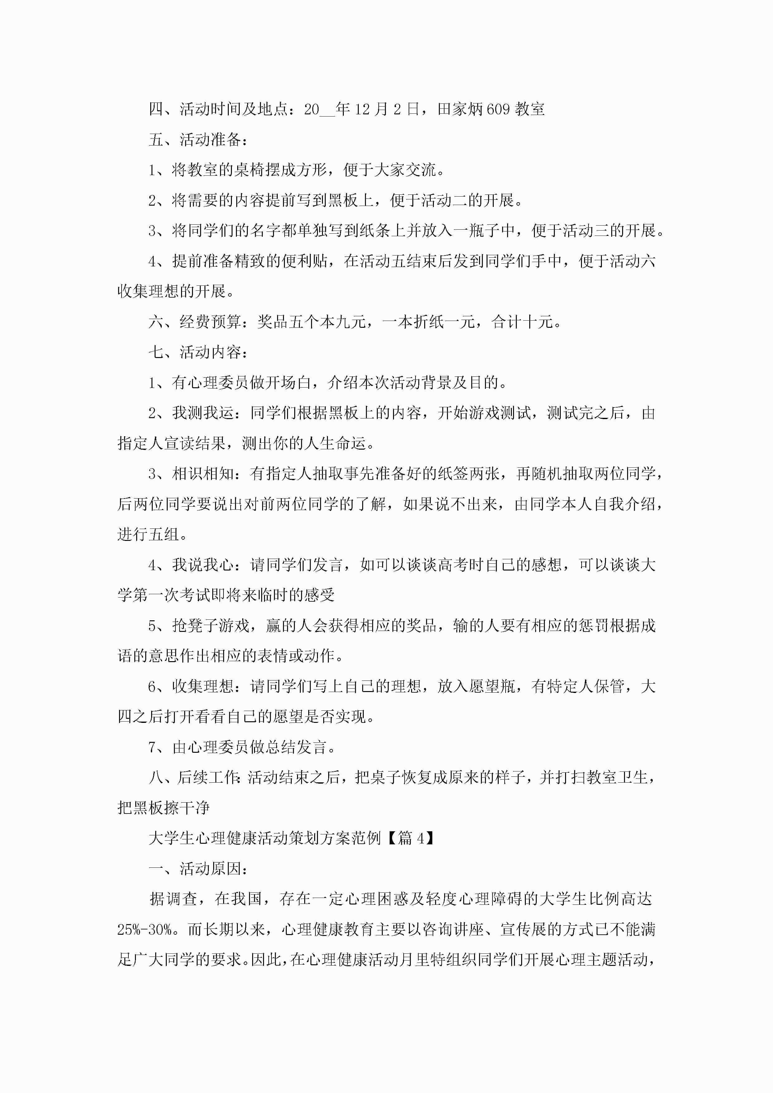 大学生心理健康活动策划方案范例5篇jugei3月23日 01:34发布关注322 大学生心理健康活动策划方案范例5篇此内容为付费资源,请付费后查看¥10.9 单篇文档限时特惠¥15个人会员开通企业会员开通立即下载无需登陆!可直接快捷下载单个模板付费资源© 版权声明THE ENDWord模板# 实用文档# 策划书# 工作文档# 策划方案 如有问题,可点击最底部“联系我们”联系客服 分享QQ空间微博QQ好友海报分享复制链接收藏