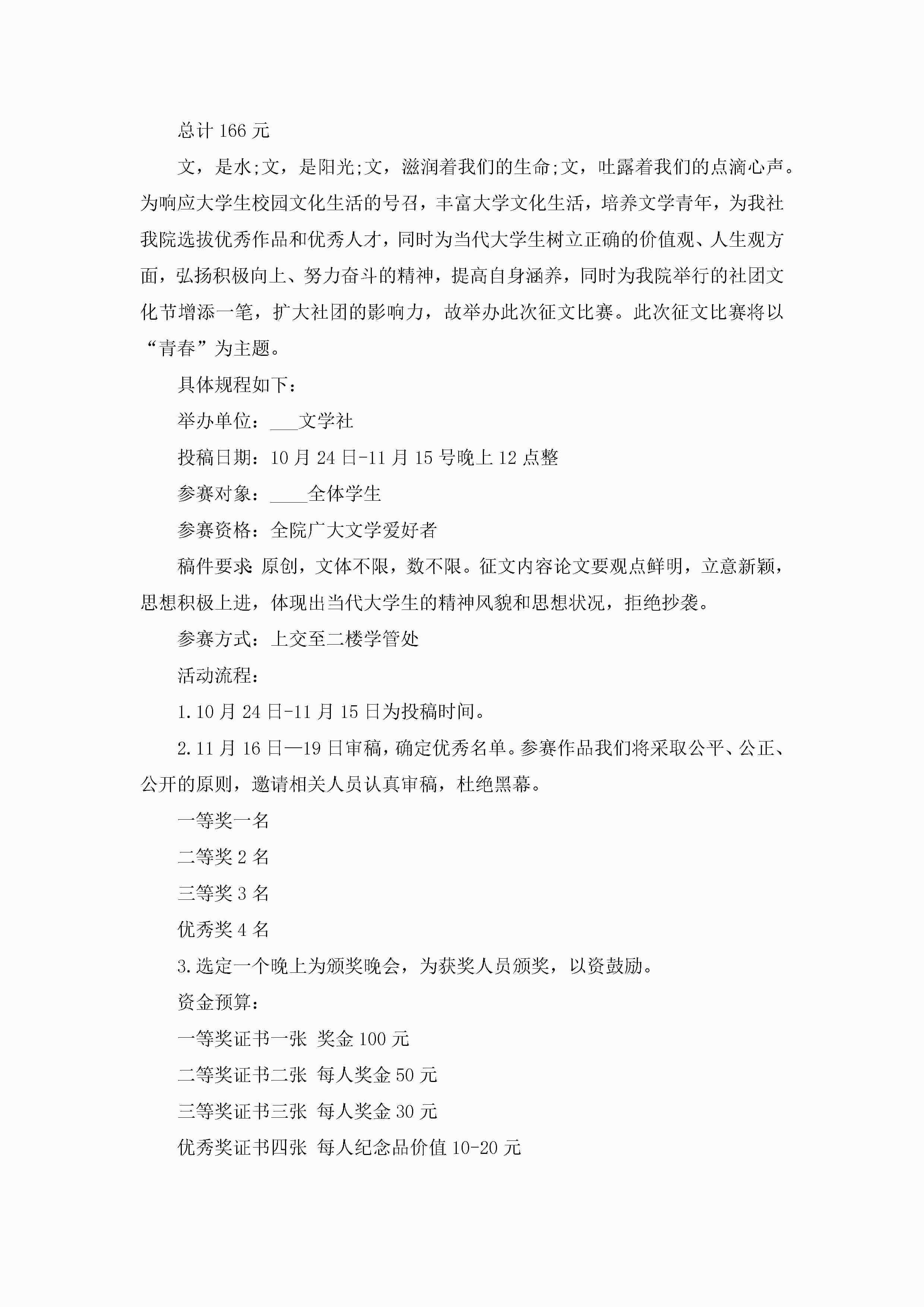 特色征文比赛策划方案范文5篇jugei3月23日 01:34发布关注199 特色征文比赛策划方案范文5篇此内容为付费资源,请付费后查看¥10.9 单篇文档限时特惠¥15个人会员开通企业会员开通立即下载无需登陆!可直接快捷下载单个模板付费资源© 版权声明THE ENDWord模板# 实用文档# 策划书# 工作文档# 策划方案 如有问题,可点击最底部“联系我们”联系客服 分享QQ空间微博QQ好友海报分享复制链接收藏