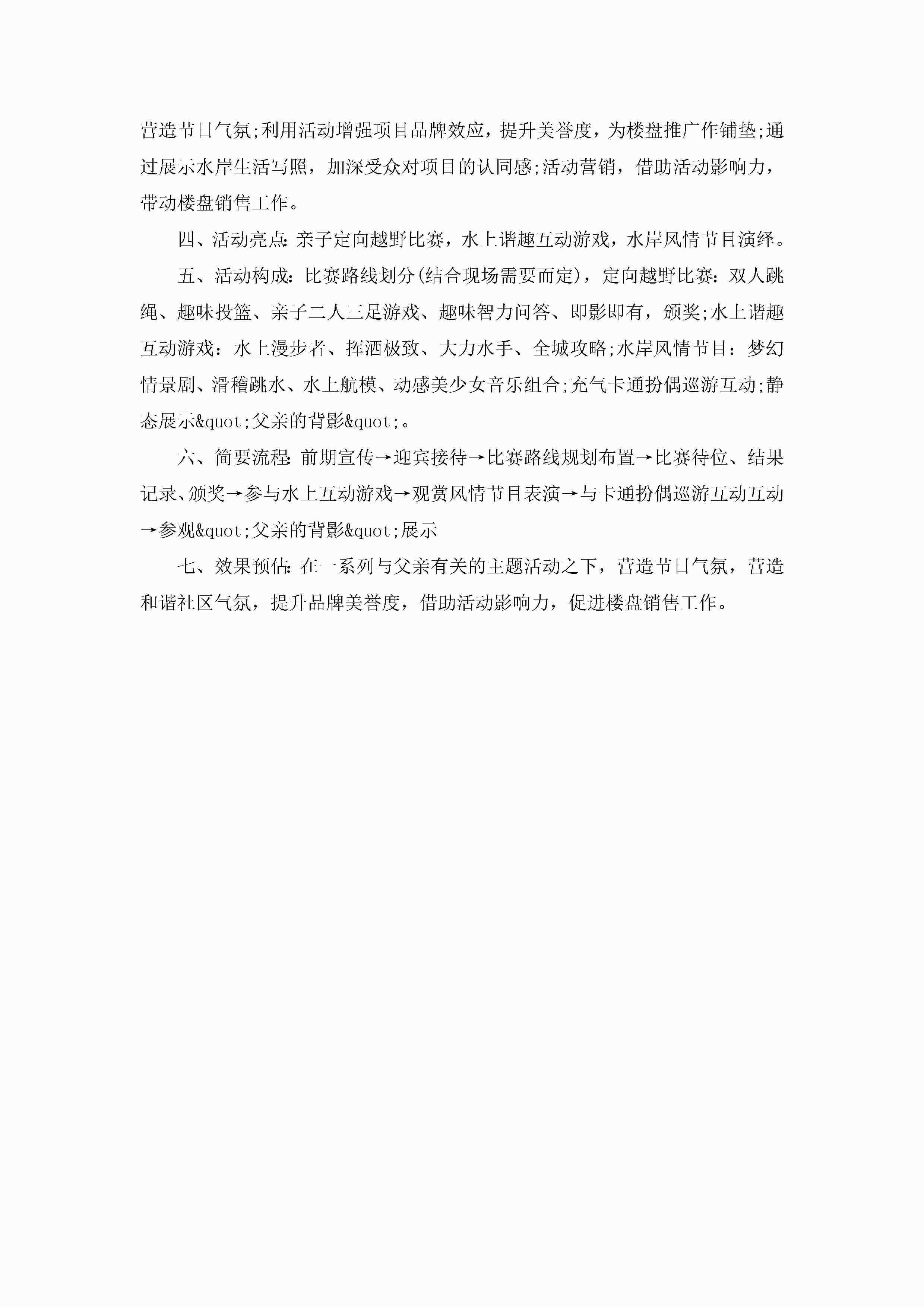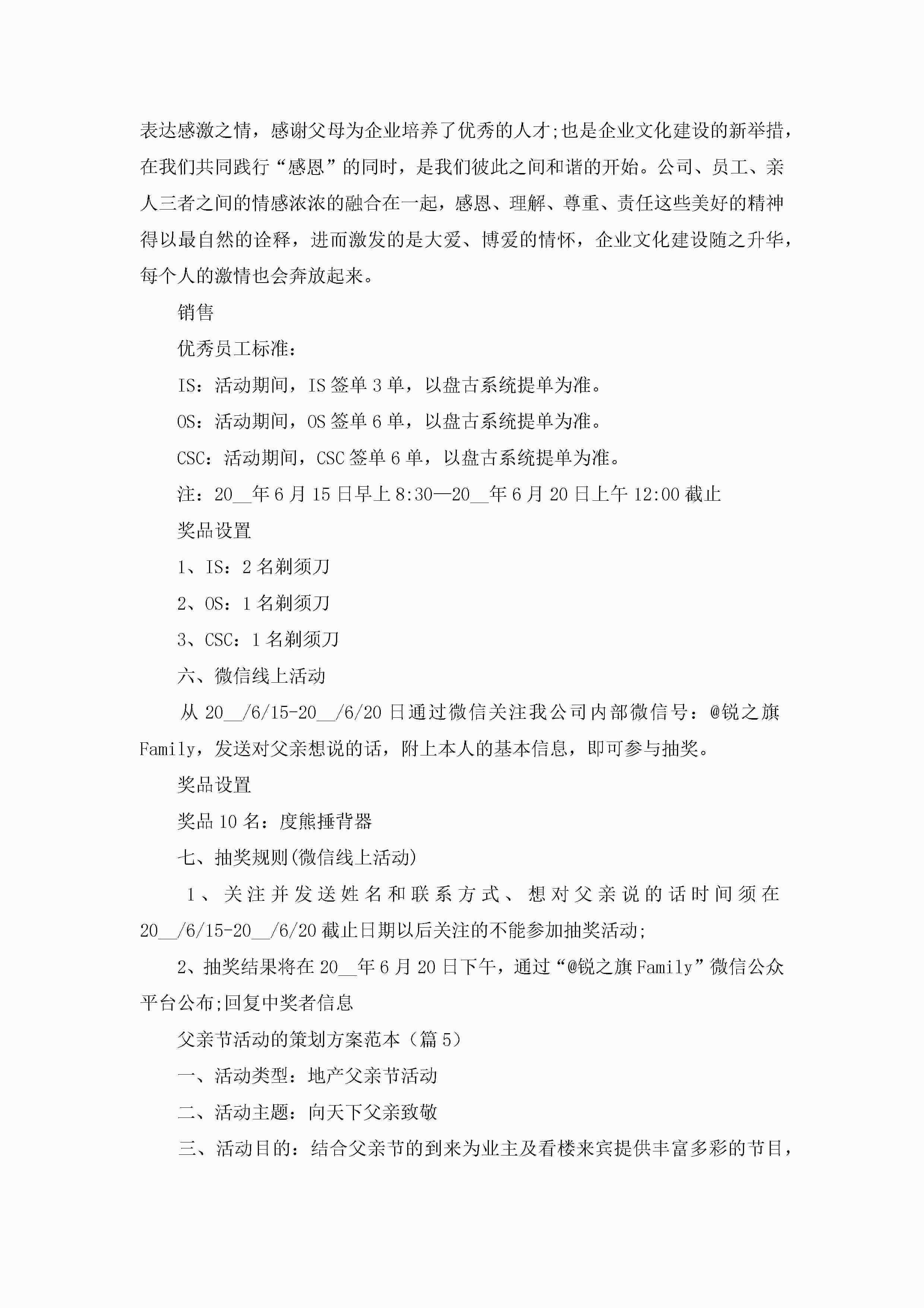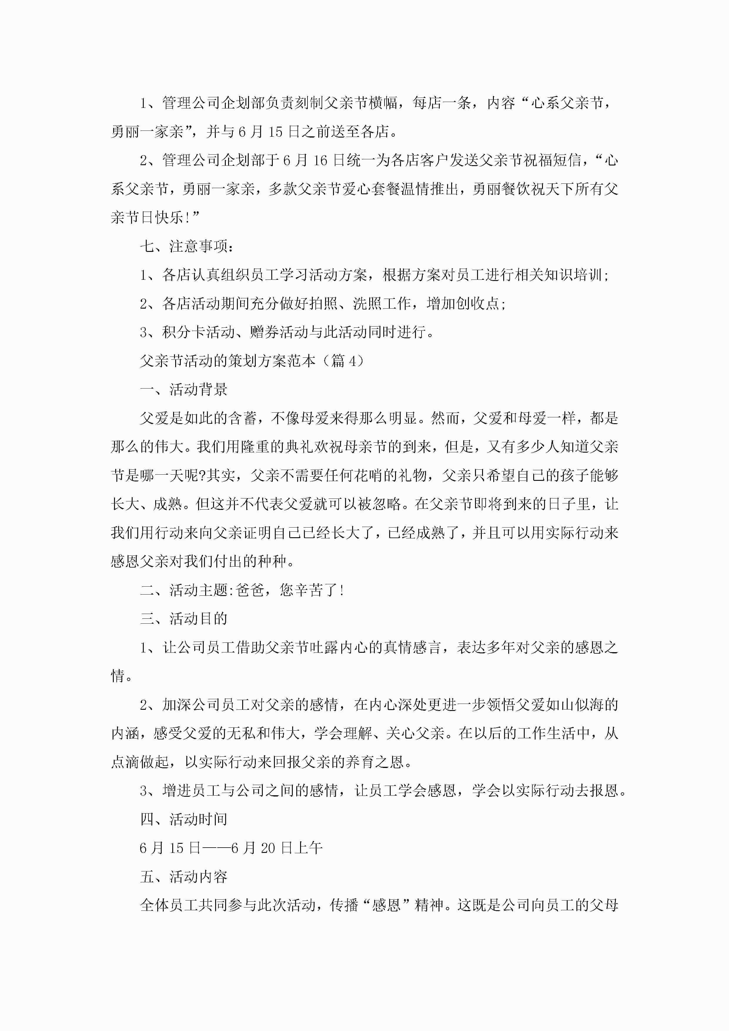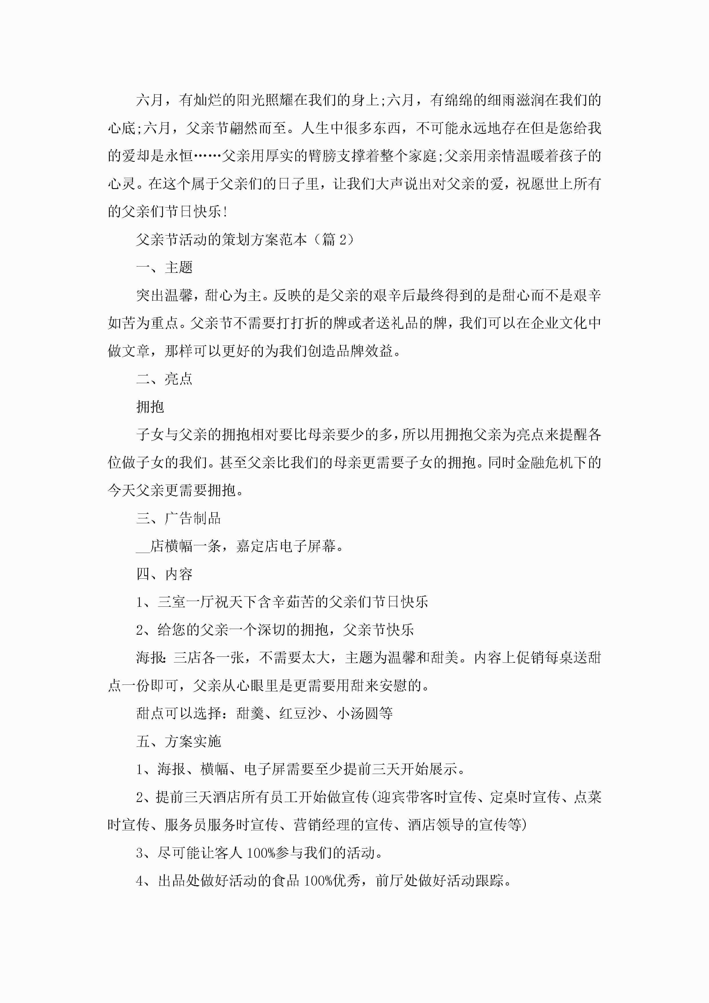 父亲节活动的策划方案范本5篇jugei3月23日 01:34发布关注196 父亲节活动的策划方案范本5篇此内容为付费资源,请付费后查看¥10.9 单篇文档限时特惠¥15个人会员开通企业会员开通立即下载无需登陆!可直接快捷下载单个模板付费资源© 版权声明THE ENDWord模板# 实用文档# 策划书# 策划方案# 父亲节活动的策划方案 如有问题,可点击最底部“联系我们”联系客服 分享QQ空间微博QQ好友海报分享复制链接收藏
