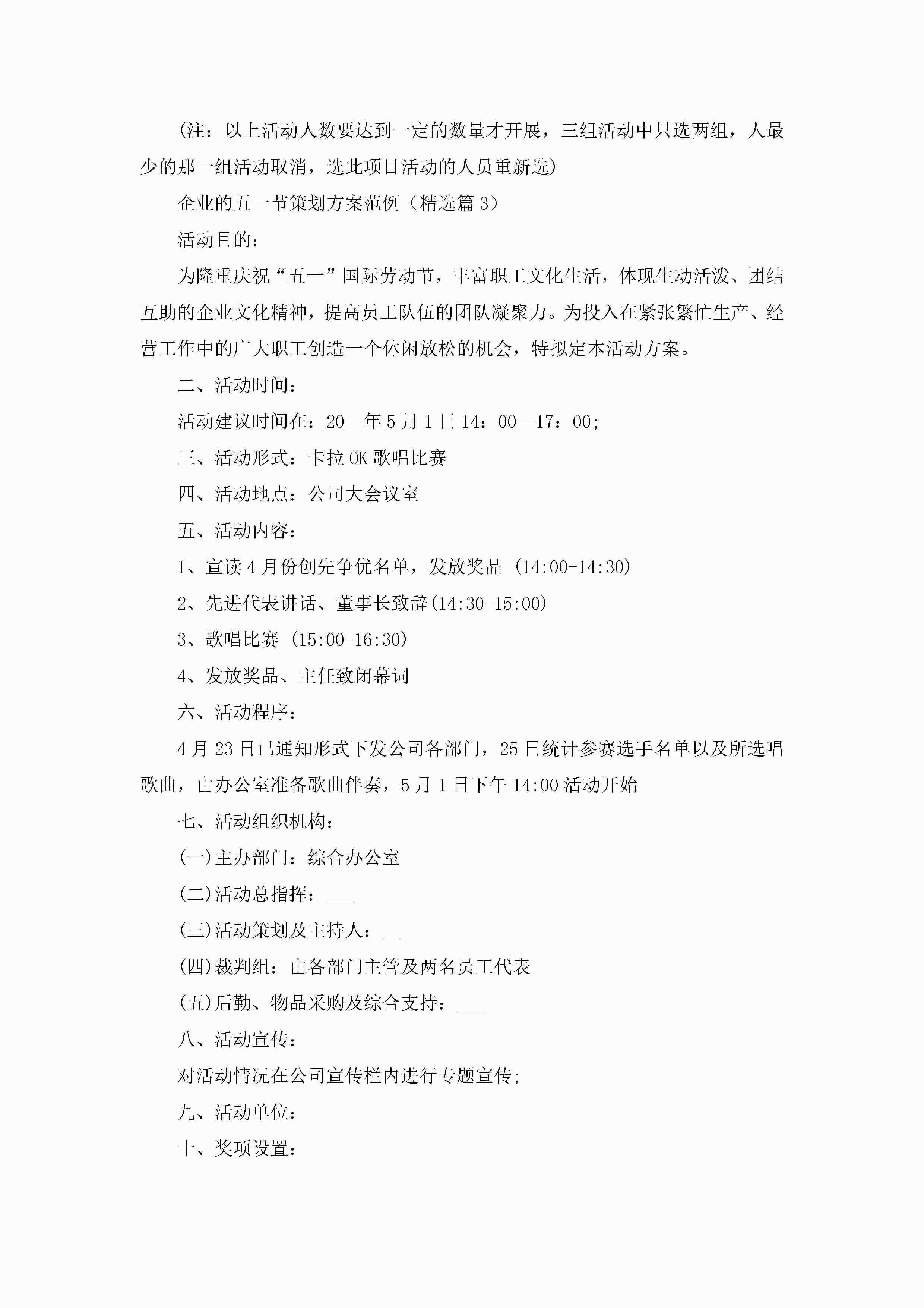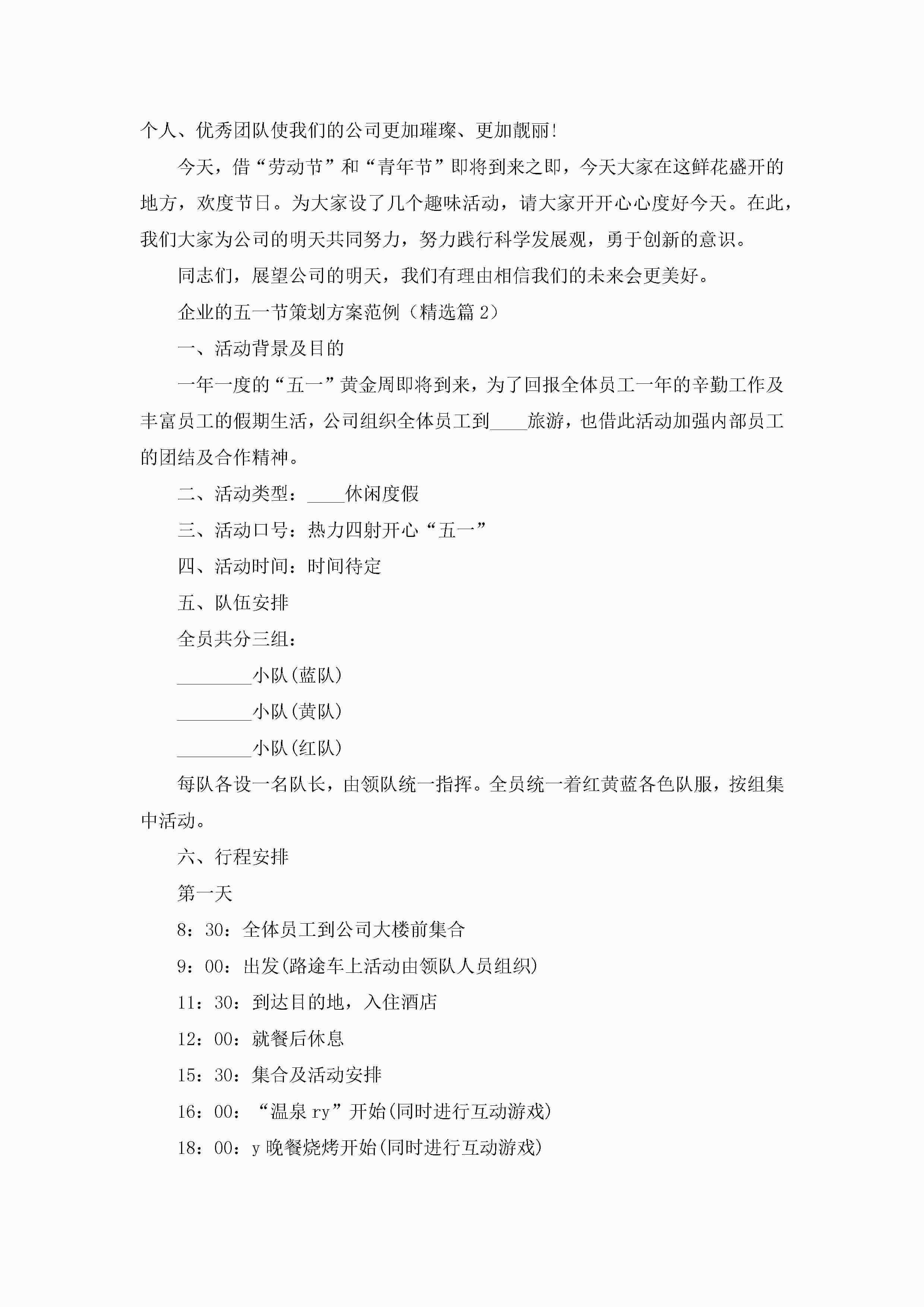 企业的五一节策划方案范例5篇jugei3月23日 01:34发布关注199 企业的五一节策划方案范例5篇此内容为付费资源,请付费后查看¥10.9 单篇文档限时特惠¥15个人会员开通企业会员开通立即下载无需登陆!可直接快捷下载单个模板付费资源© 版权声明THE ENDWord模板# 实用文档# 策划书# 工作文档# 策划方案 如有问题,可点击最底部“联系我们”联系客服 分享QQ空间微博QQ好友海报分享复制链接收藏