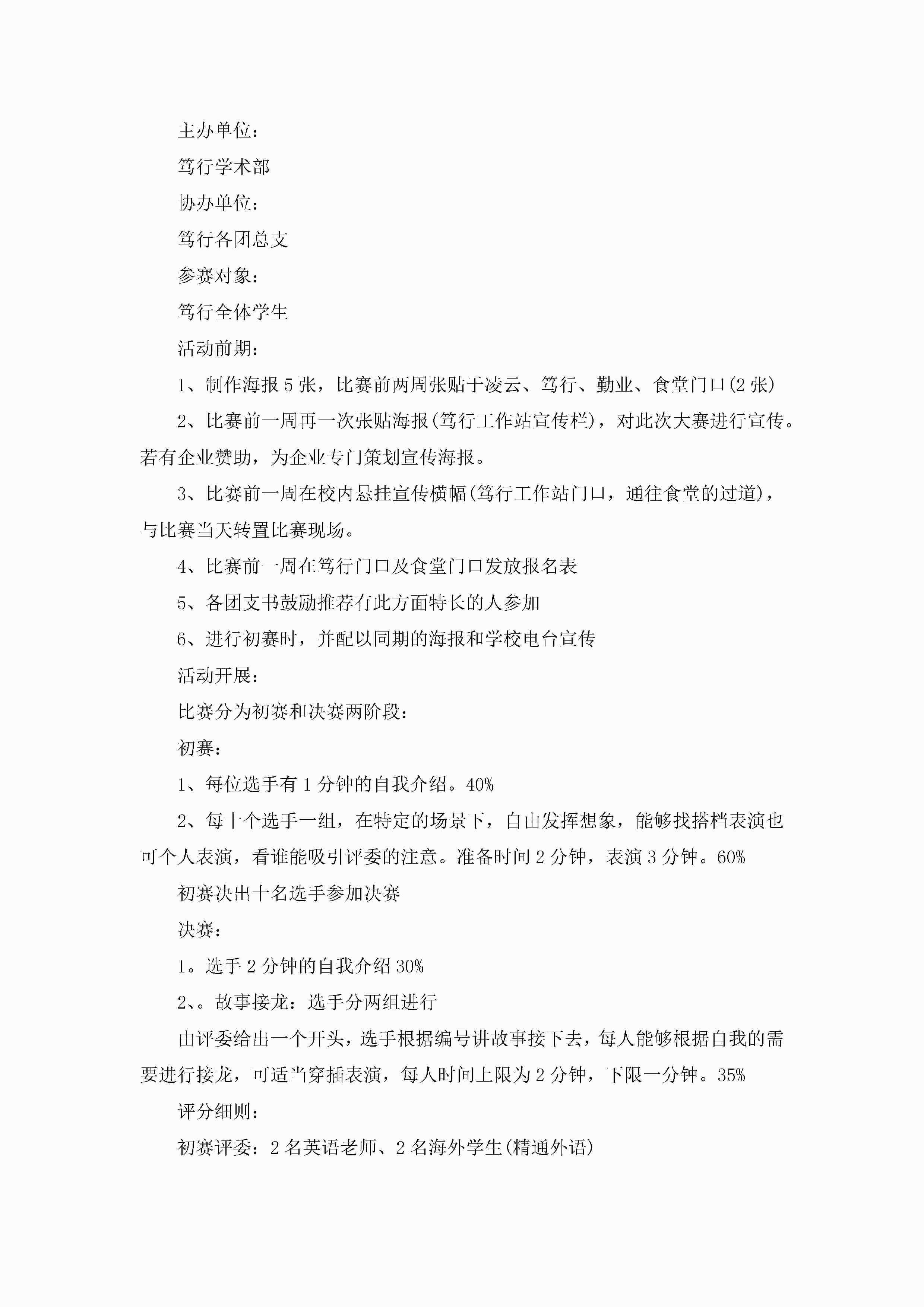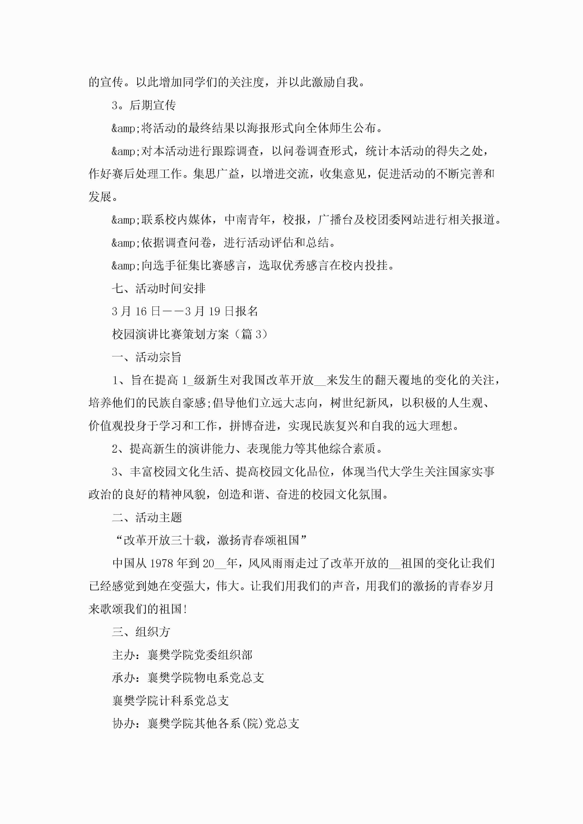 校园演讲比赛策划方案(通用5篇)jugei3月23日 01:34发布关注206 校园演讲比赛策划方案(通用5篇)此内容为付费资源,请付费后查看¥10.9 单篇文档限时特惠¥15个人会员开通企业会员开通立即下载无需登陆!可直接快捷下载单个模板付费资源© 版权声明THE ENDWord模板# 实用文档# 策划书# 工作文档# 策划方案 如有问题,可点击最底部“联系我们”联系客服 分享QQ空间微博QQ好友海报分享复制链接收藏
