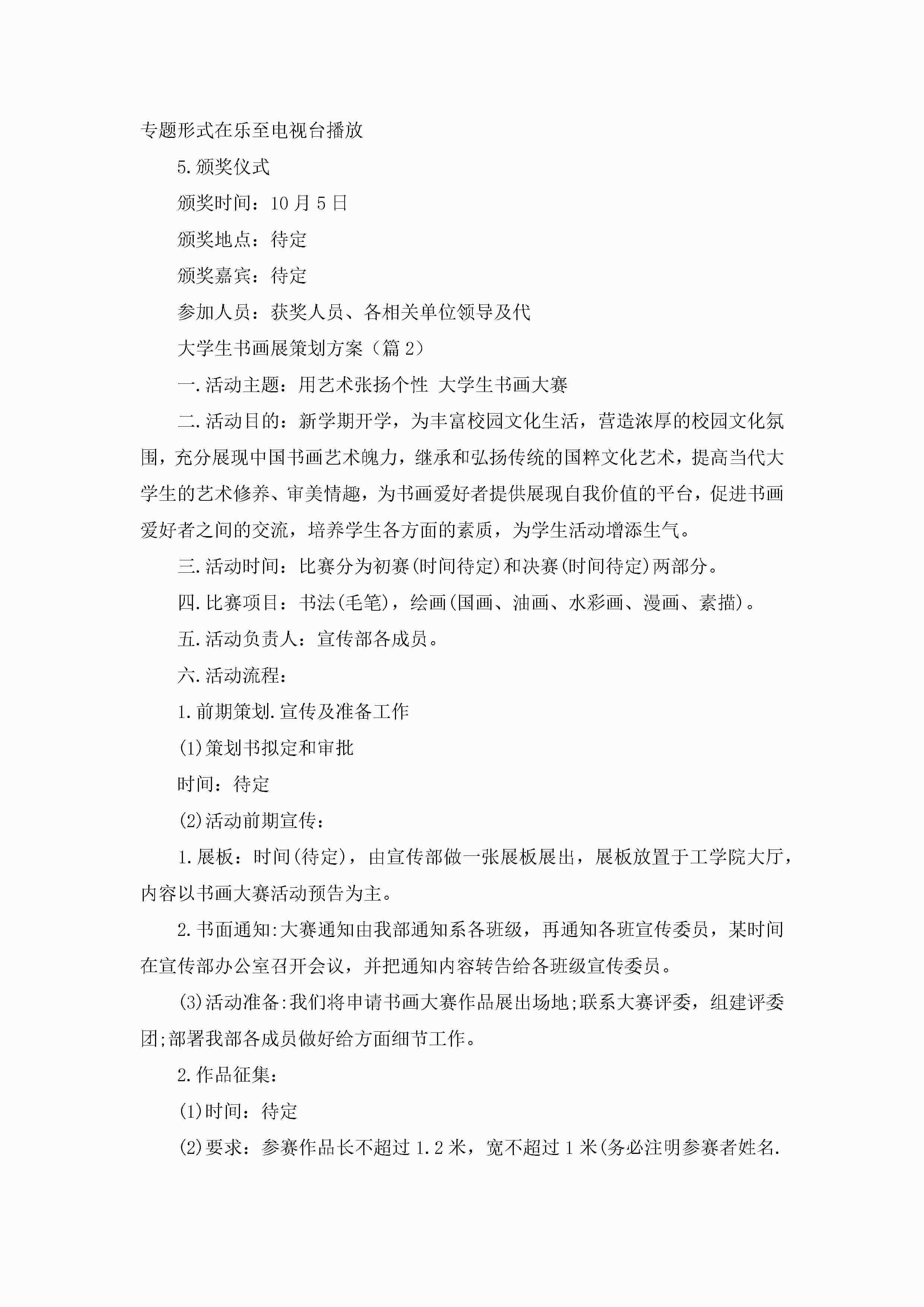 大学生书画展策划方案(通用5篇)jugei3月23日 01:34发布关注223 大学生书画展策划方案(通用5篇)此内容为付费资源,请付费后查看¥10.9 单篇文档限时特惠¥15个人会员开通企业会员开通立即下载无需登陆!可直接快捷下载单个模板付费资源© 版权声明THE ENDWord模板# 实用文档# 策划书# 工作文档# 策划方案 如有问题,可点击最底部“联系我们”联系客服 分享QQ空间微博QQ好友海报分享复制链接收藏