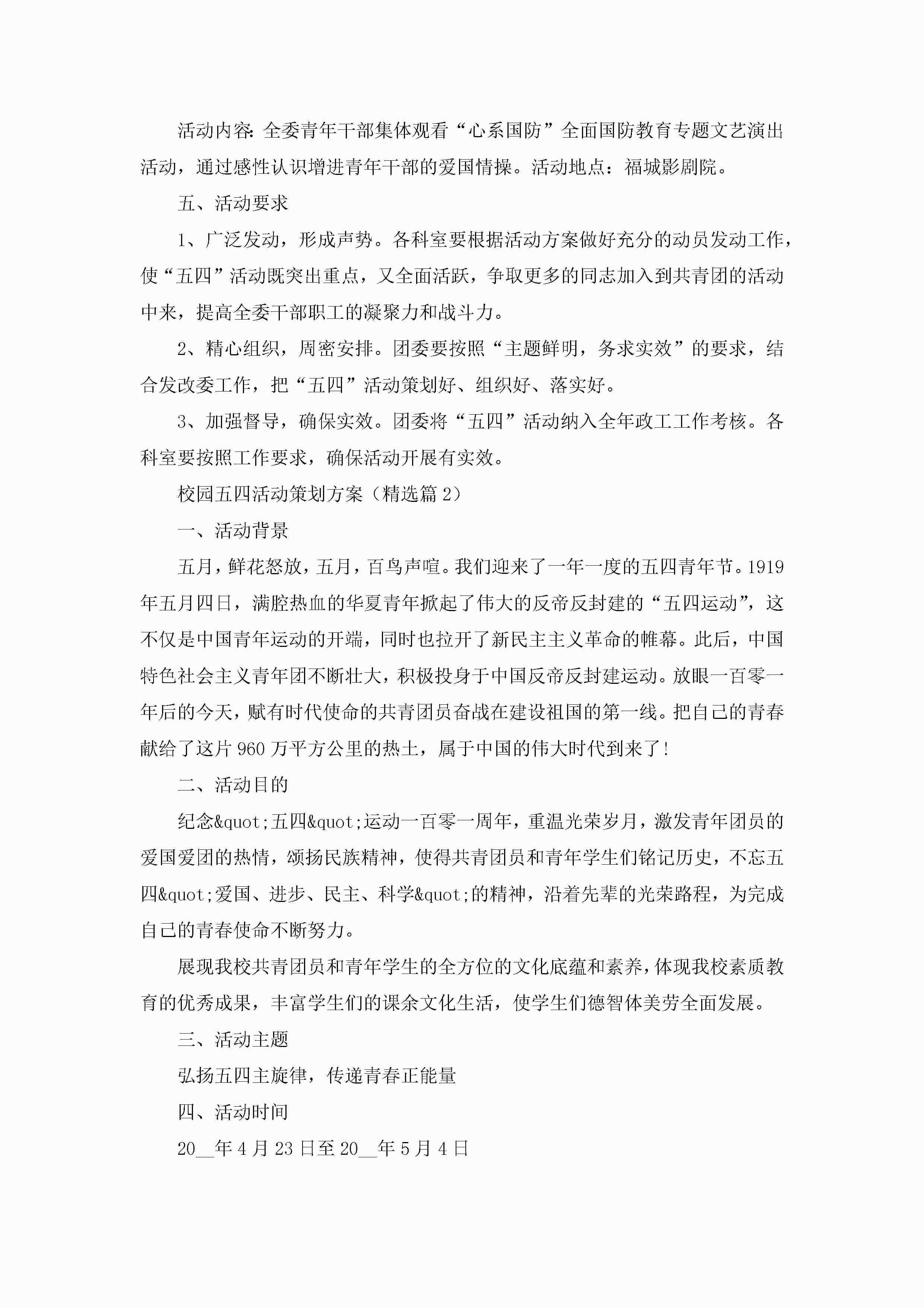校园五四活动策划方案范文5篇jugei3月23日 01:34发布关注199 校园五四活动策划方案范文5篇此内容为付费资源,请付费后查看¥10.9 单篇文档限时特惠¥15个人会员开通企业会员开通立即下载无需登陆!可直接快捷下载单个模板付费资源© 版权声明THE ENDWord模板# 实用文档# 策划书# 工作文档# 策划方案 如有问题,可点击最底部“联系我们”联系客服 分享QQ空间微博QQ好友海报分享复制链接收藏