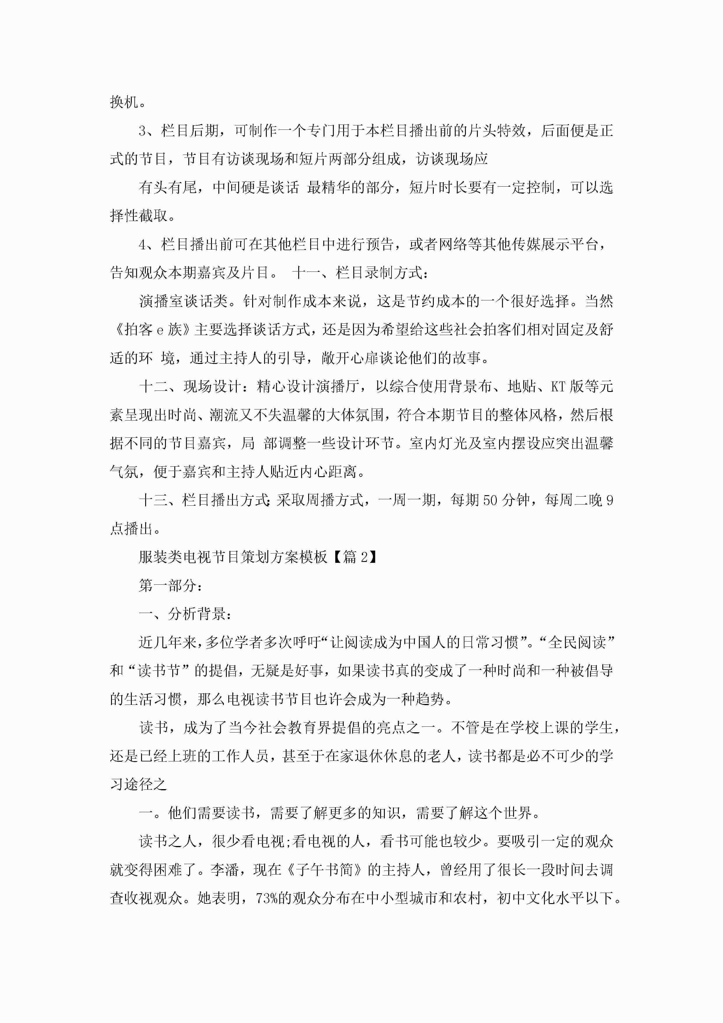 服装类电视节目策划方案模板5篇jugei3月23日 01:34发布关注211 服装类电视节目策划方案模板5篇此内容为付费资源,请付费后查看¥10.9 单篇文档限时特惠¥15个人会员开通企业会员开通立即下载无需登陆!可直接快捷下载单个模板付费资源© 版权声明THE ENDWord模板# 实用文档# 策划书# 工作文档# 策划方案 如有问题,可点击最底部“联系我们”联系客服 分享QQ空间微博QQ好友海报分享复制链接收藏