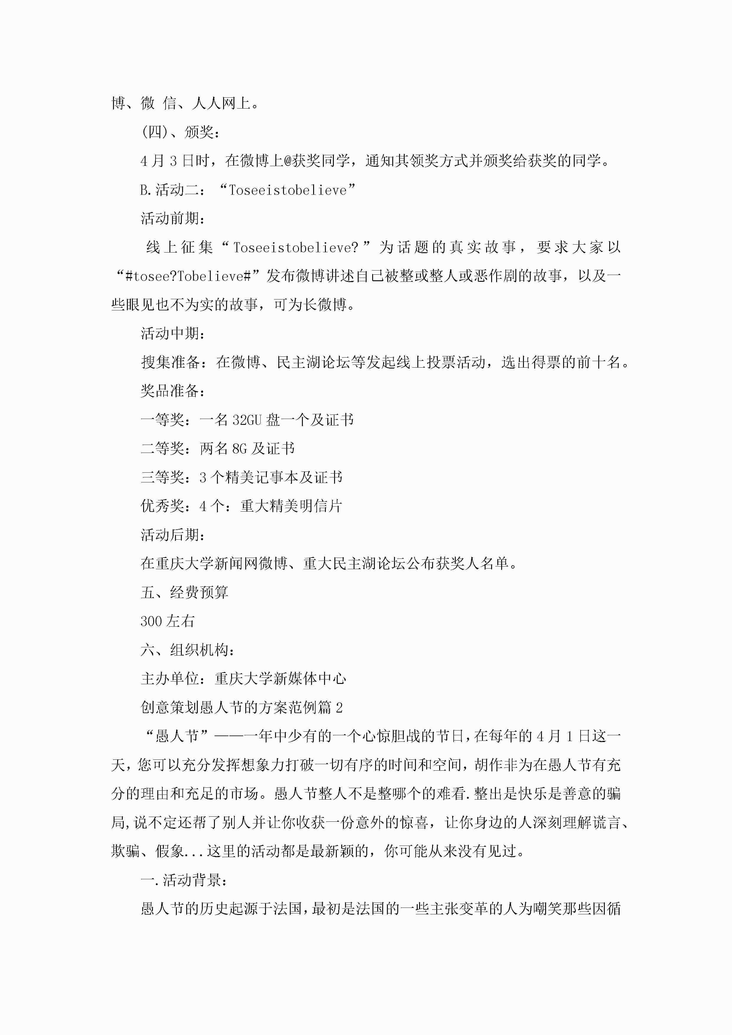 创意策划愚人节的方案范例5篇jugei3月23日 01:34发布关注271 创意策划愚人节的方案范例5篇此内容为付费资源,请付费后查看¥10.9 单篇文档限时特惠¥15个人会员开通企业会员开通立即下载无需登陆!可直接快捷下载单个模板付费资源© 版权声明THE ENDWord模板# 实用文档# 策划书# 工作文档# 策划方案 如有问题,可点击最底部“联系我们”联系客服 分享QQ空间微博QQ好友海报分享复制链接收藏