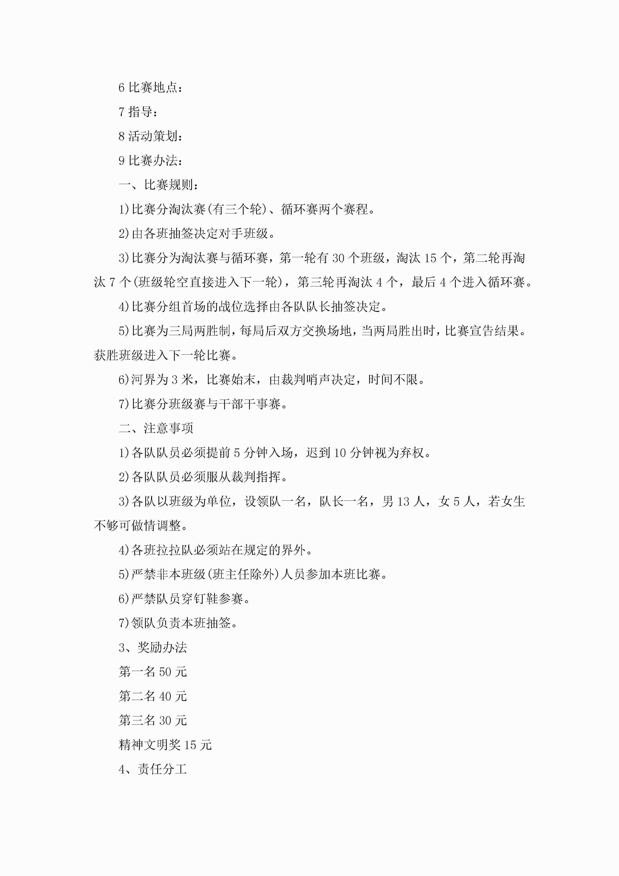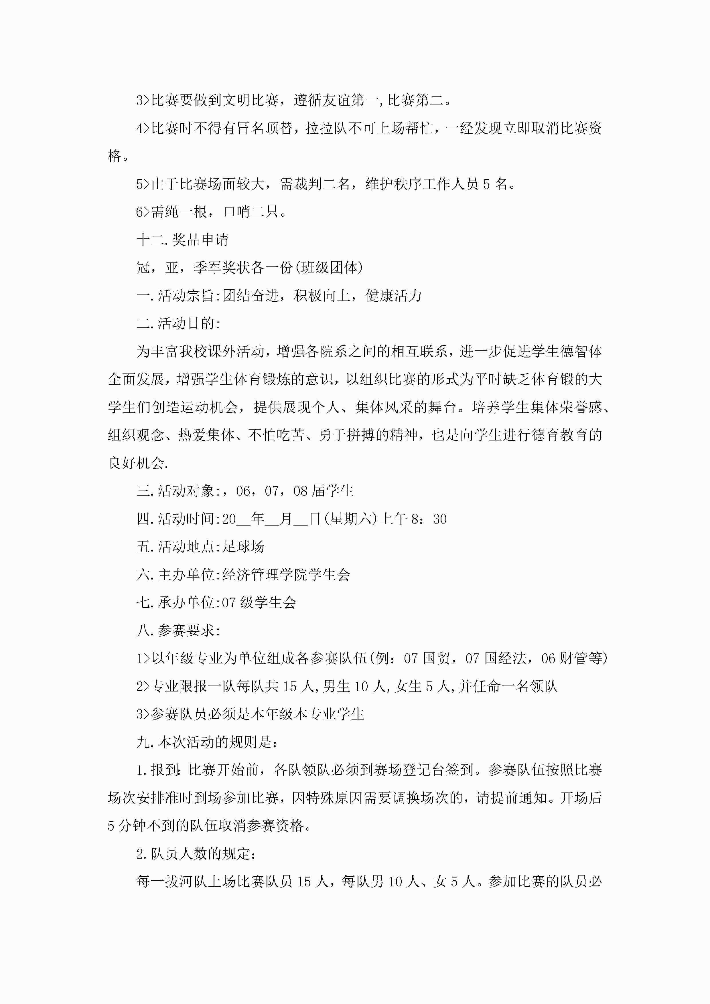 最新学生拔河比赛策划方案5篇jugei3月23日 01:34发布关注188 最新学生拔河比赛策划方案5篇此内容为付费资源,请付费后查看¥10.9 单篇文档限时特惠¥15个人会员开通企业会员开通立即下载无需登陆!可直接快捷下载单个模板付费资源© 版权声明THE ENDWord模板# 实用文档# 策划书# 策划方案# 学生拔河比赛策划方案 如有问题,可点击最底部“联系我们”联系客服 分享QQ空间微博QQ好友海报分享复制链接收藏